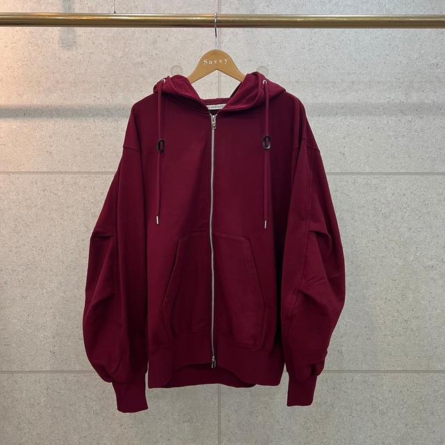 【品番】5B014-0425-18 【カラー】BORDEAUX 【素材】COTTON : 100% 【サイズ】M 【Size srec】 (M)着丈:約69.5cm・肩幅:約57.0cm・袖丈:約65.0cm・身幅:約71.0cm 米軍 M-51モッズパーカーデザインをベースにしたジップアップフーディー。 M-51を象徴する立体的なパネル構成のフードやひじのタックデザインが特徴的。 ゆったりとしたオーバーサイズシルエット。 きれいな表面感で高級感のある、しなやかなタッチとしっかりしたコシのある裏毛素材を使用。