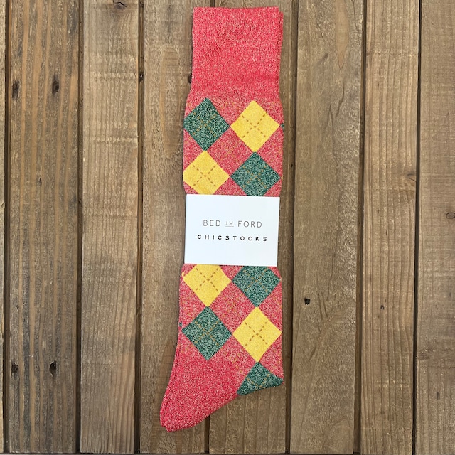 【品番】BED-WB-AC04 【カラー】Red 【素材】 (body) NYLON : 59%・POLYESTER : 38%・POLYURETHANE : 2% 【サイズ】22.0cm~24.0cm・26.0cm~28.0cm BEDj.w.FORDの定番のGlitter socksのアーガイル柄です。