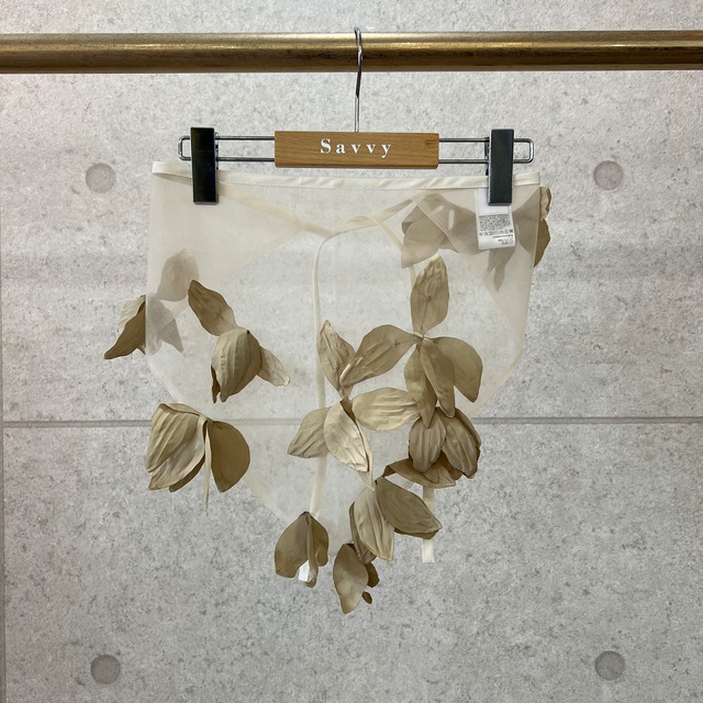 【品番】1011-0108-6347 【カラー】beige 【素材】(Fabric) polyester : 100% 【サイズ】F 【Size srec】 (F)Lenght:約34.5cm・Wide:約137.5cm 花びらのモチーフをあしらったシアースカーフ。 透け感のあるチュール素材。 繊細なフローラルディテールが、スタイリングにさりげない華やかさをプラスします。
