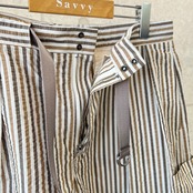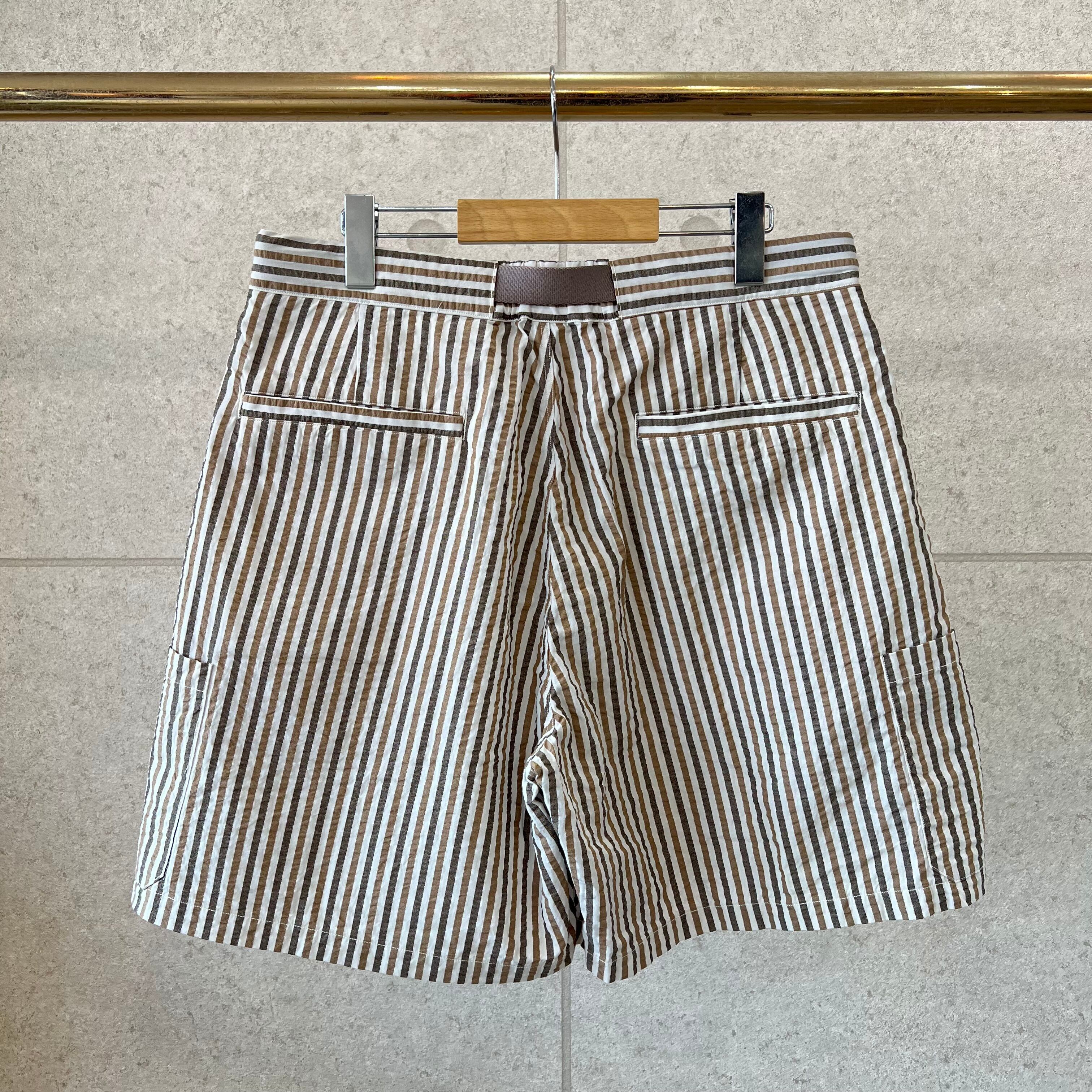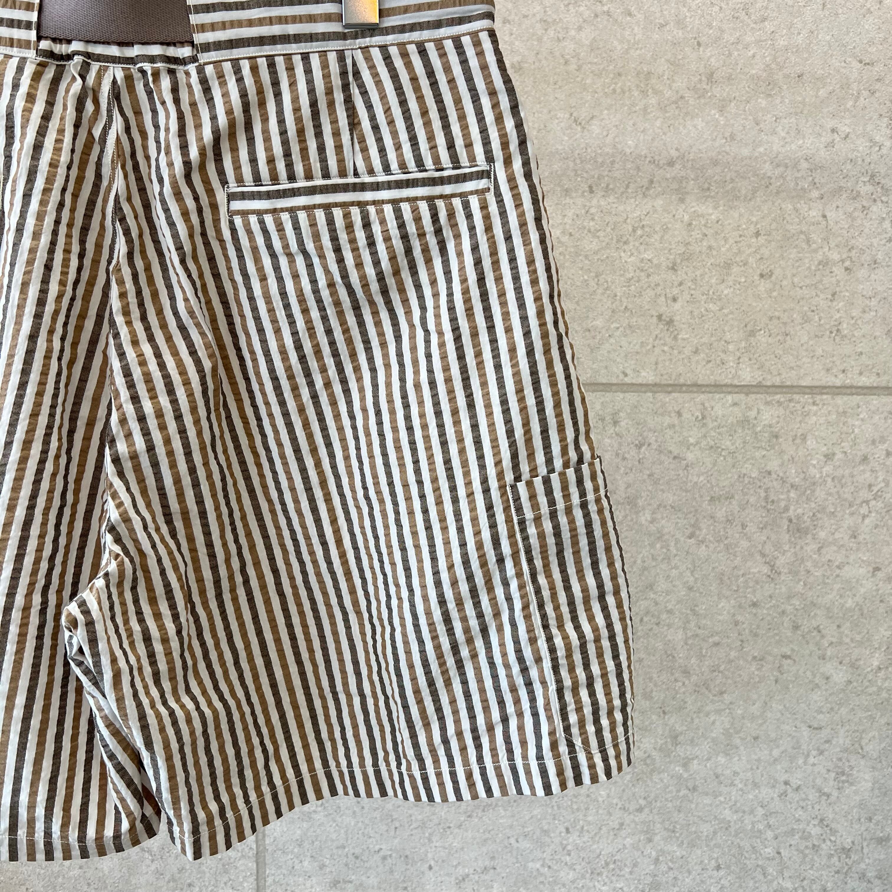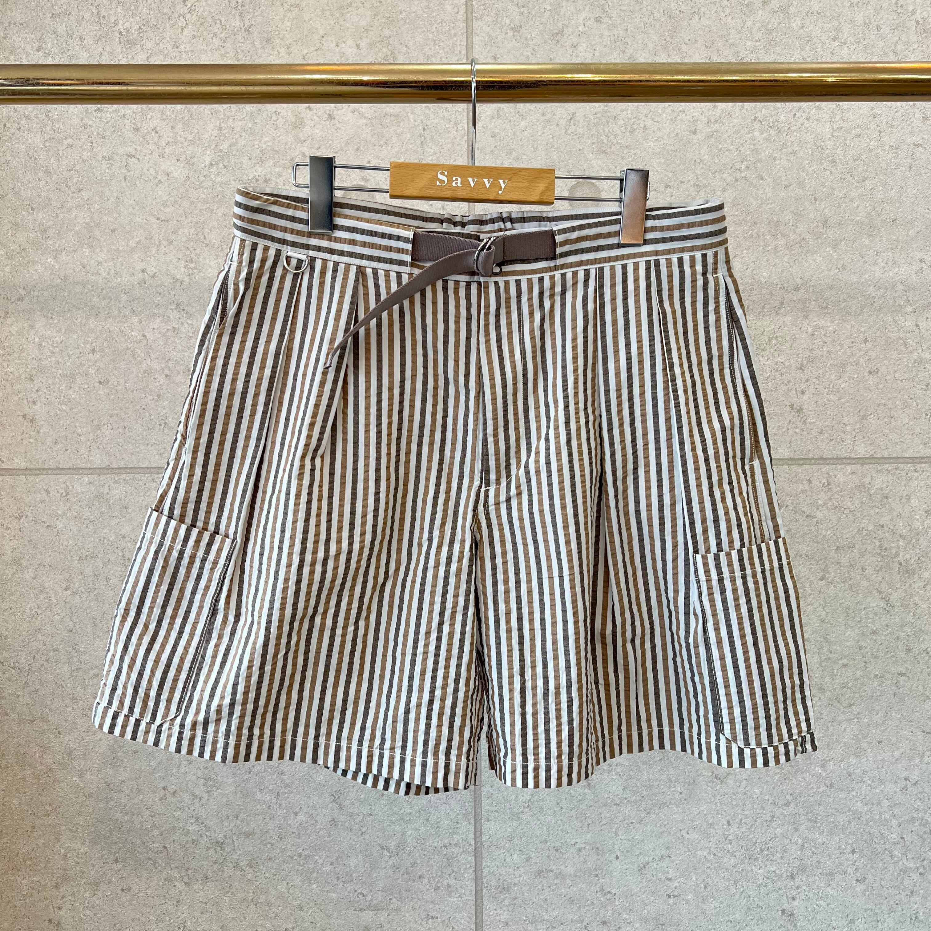 オリジナル素材のストライプシアサッカーを仕様したベルテッドショーツ。