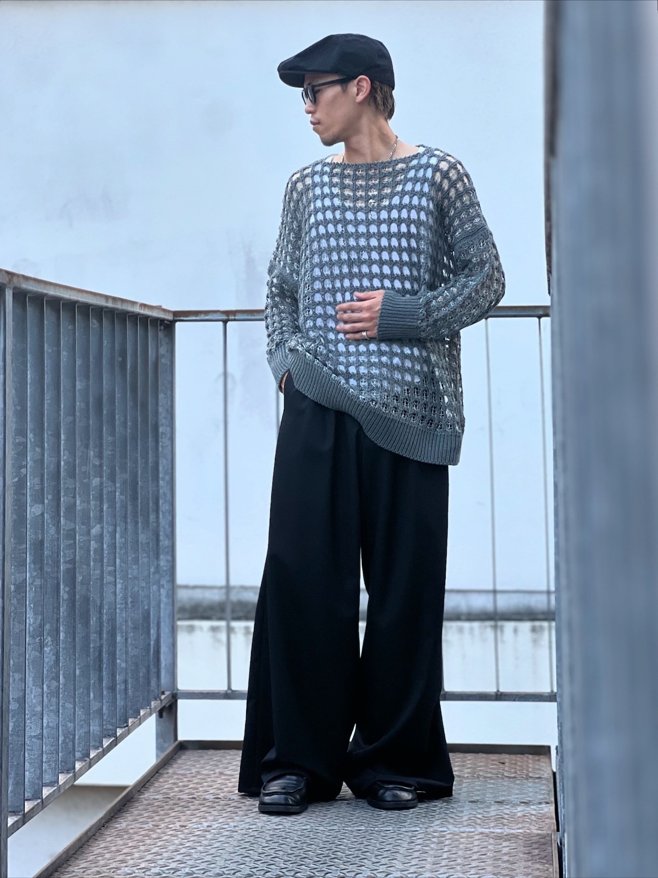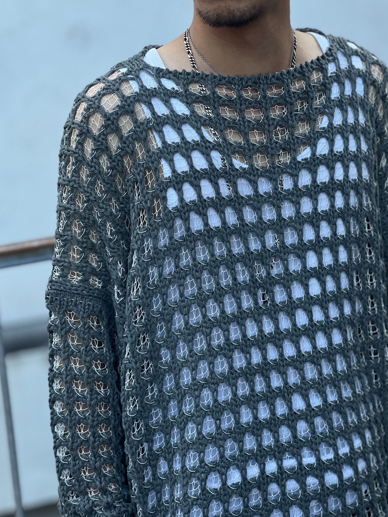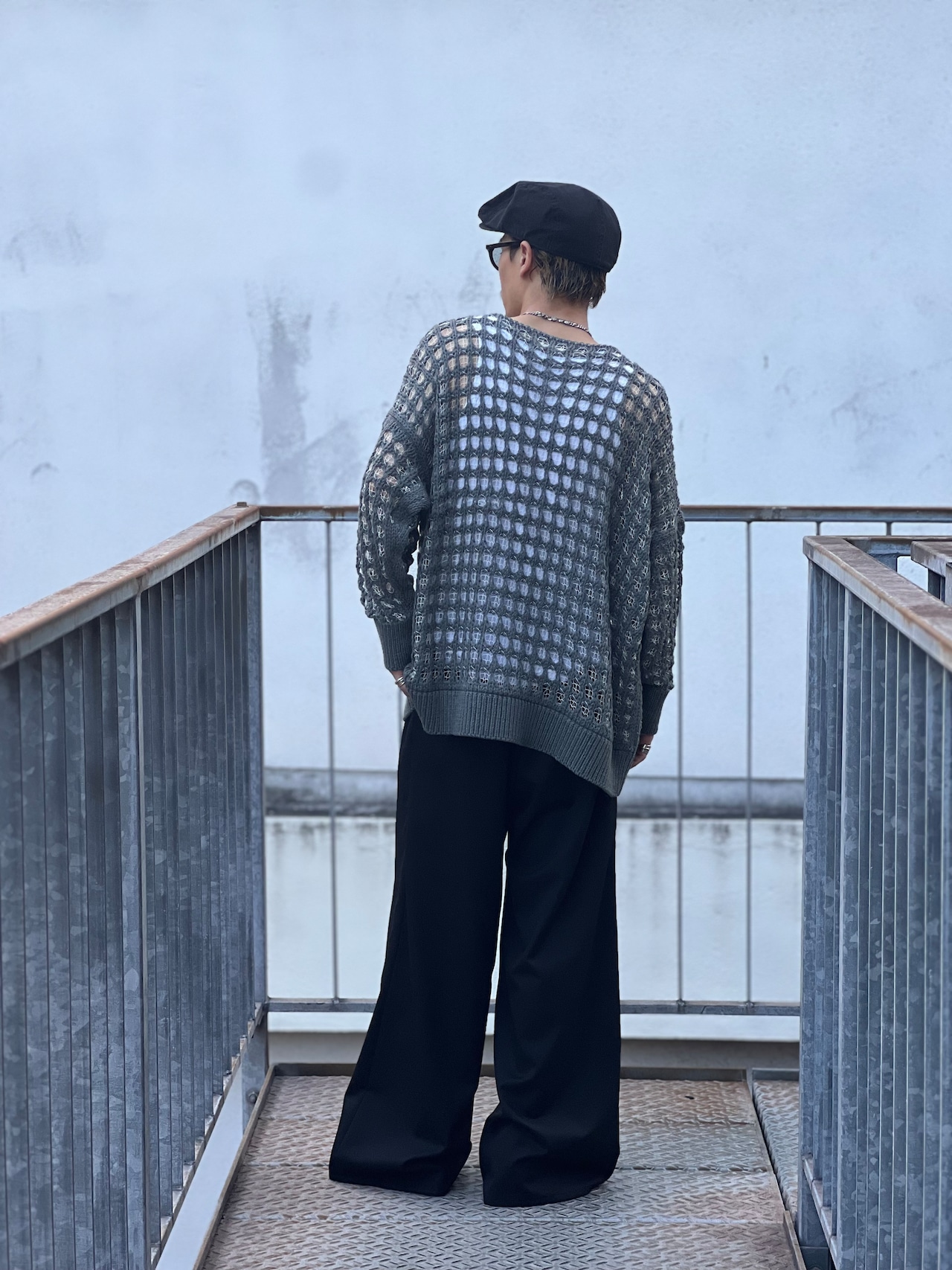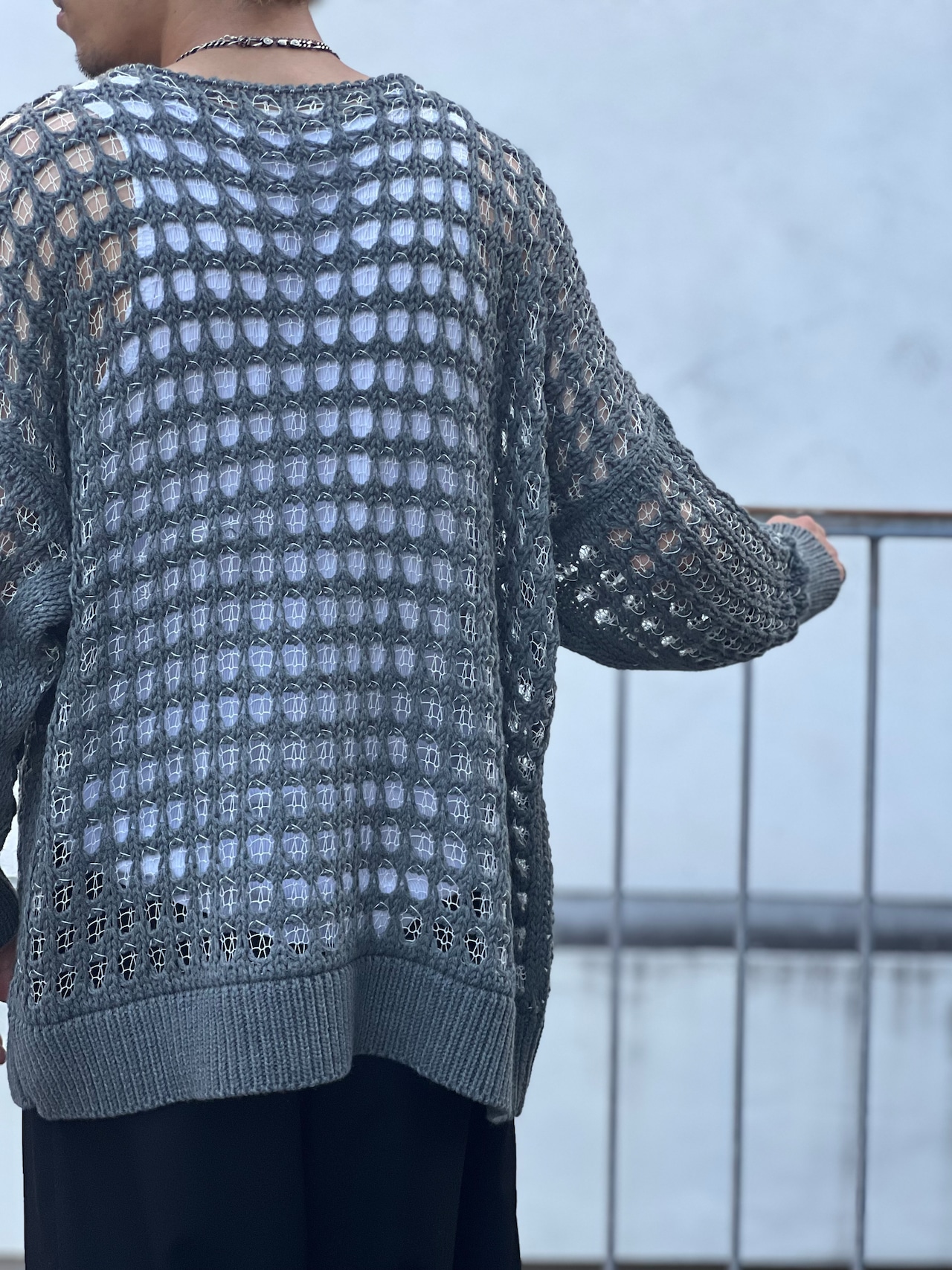 sulvam – メッシュアシンメトリーニット (GRAY)