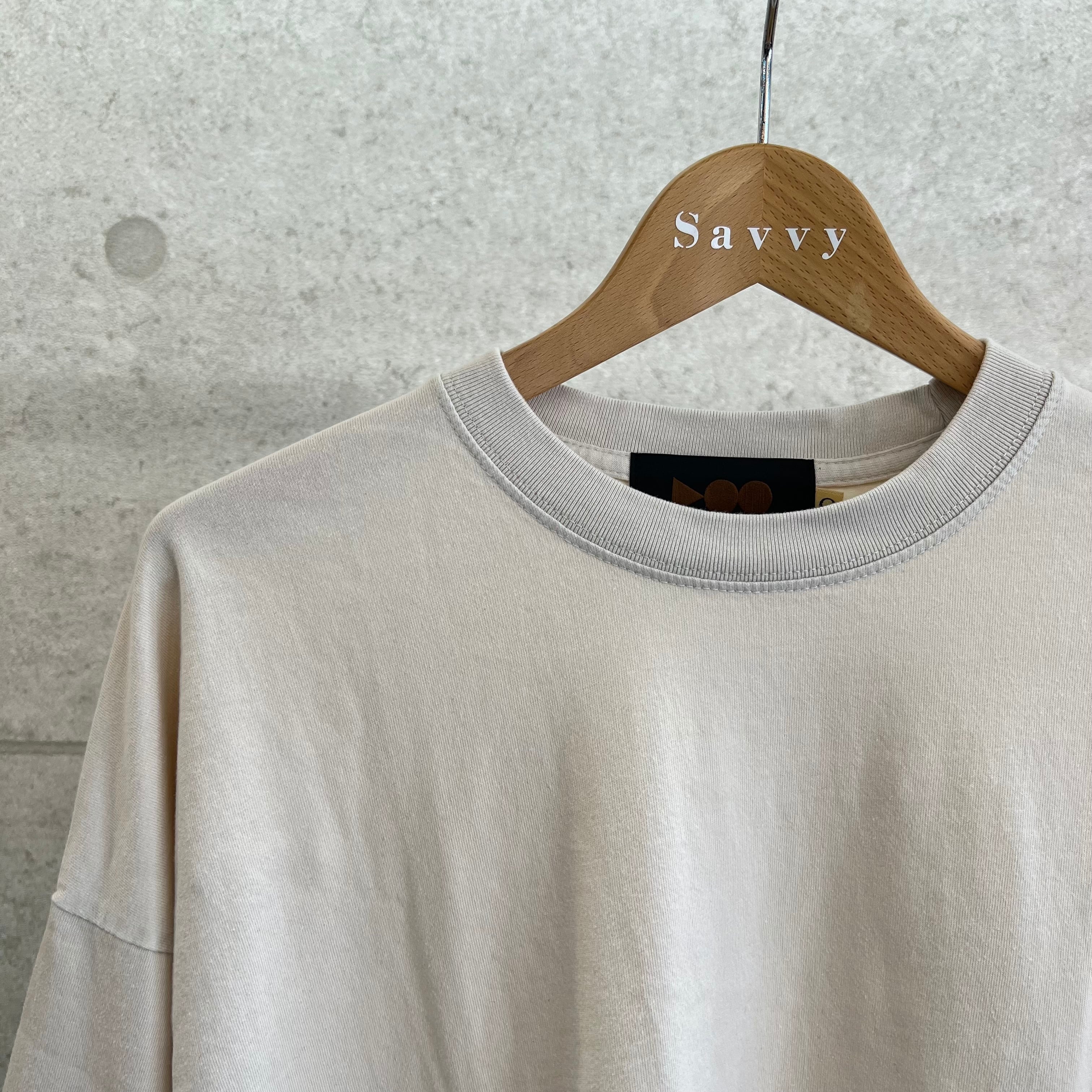 ワイドシルエットの長袖teeをベースに硫化染めとMIST(ミスト)加工を施し、凸凹感を表現しています。意図的に曖昧な色感に仕上げたアイテムです。