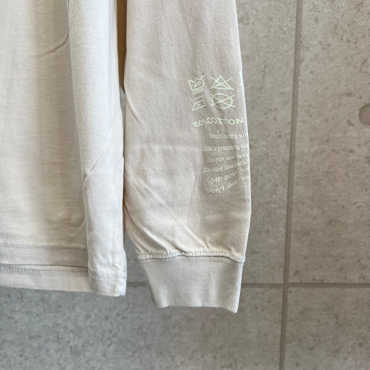左袖口にデザイン且つ、品質表示の機能を果たすワンポイントプリント。