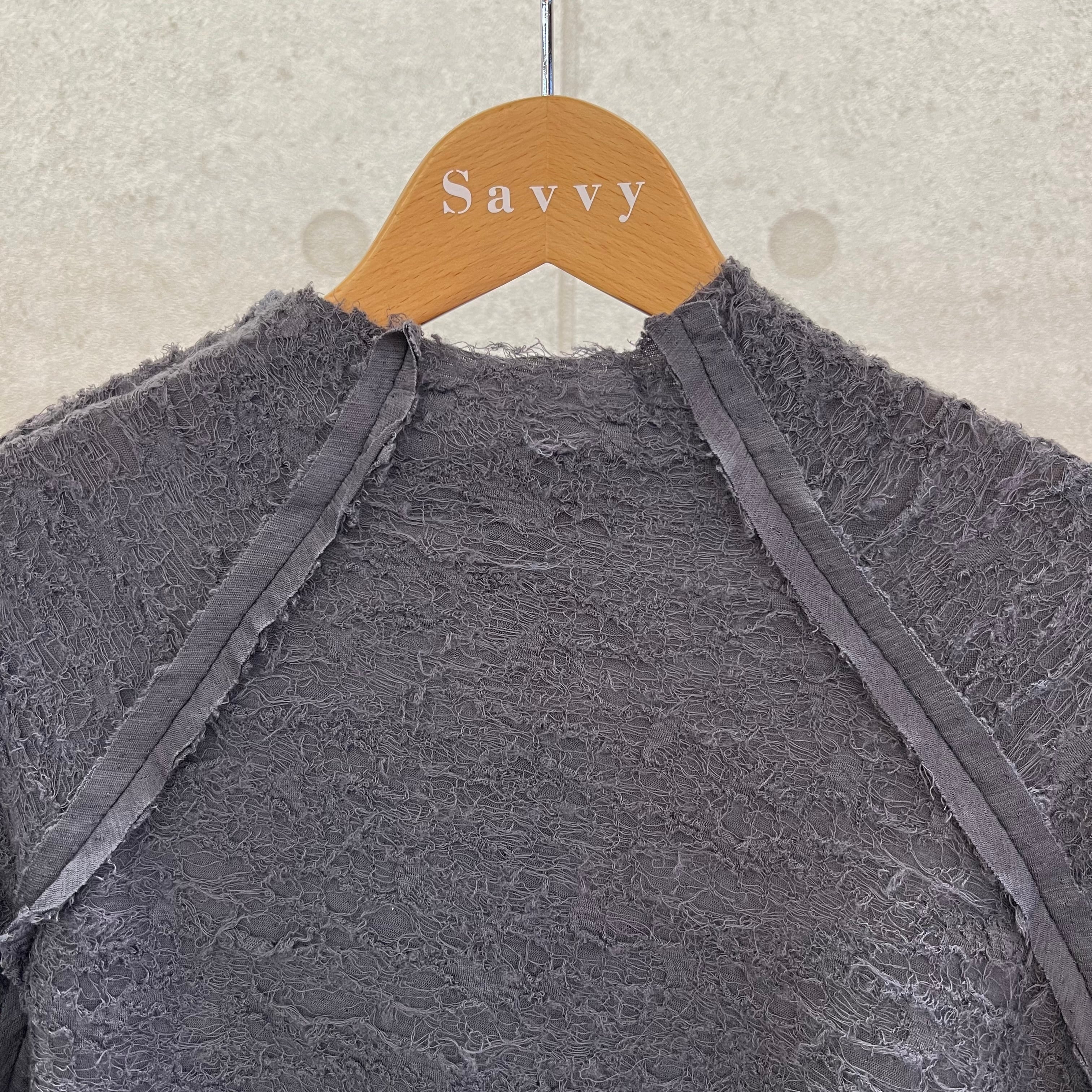 戦後ドイツを代表する芸術家アンゼルム ・キーファーの作品の特徴的な地層のように塗り固めたような多層を、独特なダメージ感のあるウールクラッシュジャガード生地で表現。