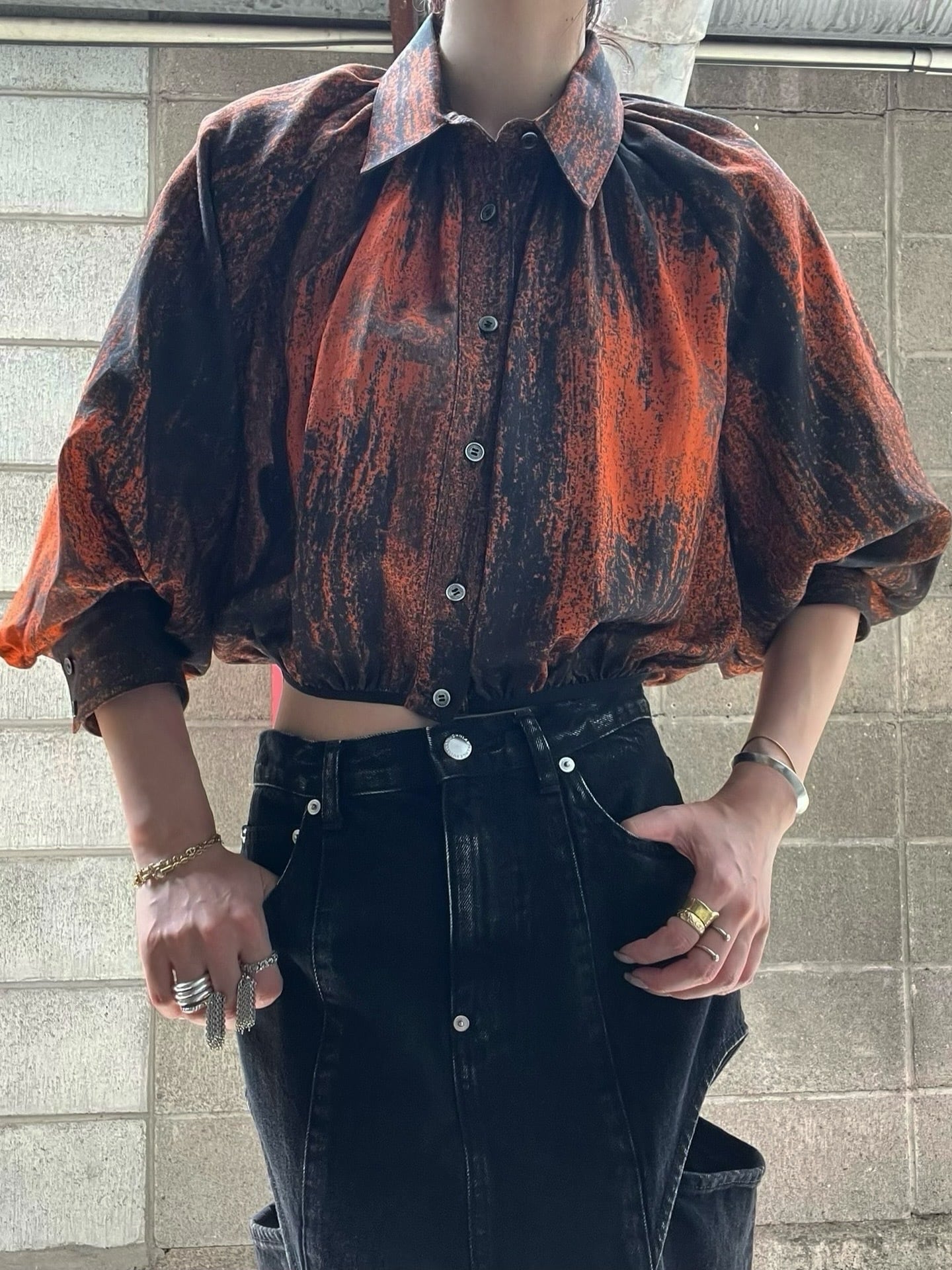 JOHNLAWRENCESULLIVAN – ALL OVER PRINT BALLOON SLEEVE BLOUSE (ORANGE)