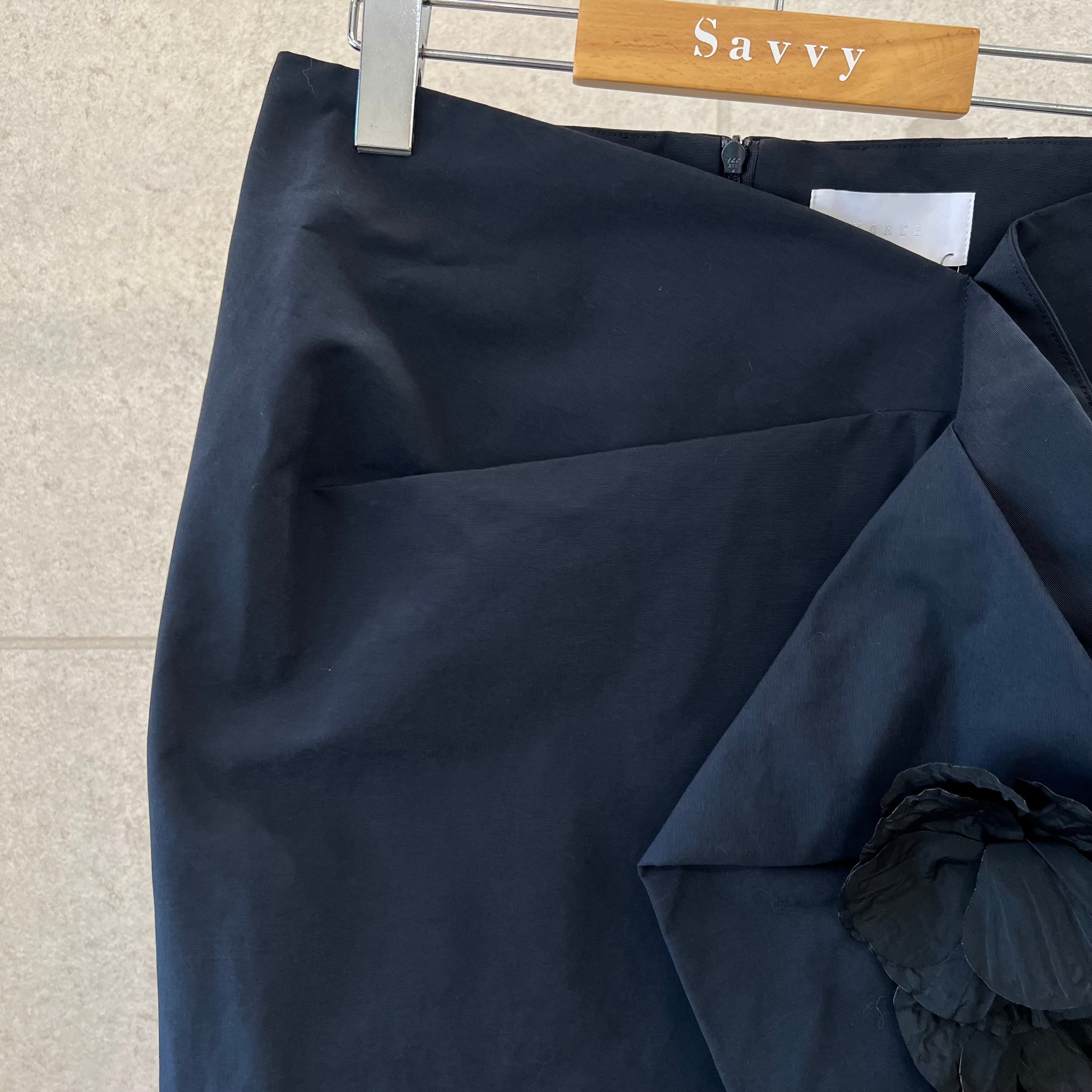 MARGE – 60/40 asymmetry try tuck maxi skirt (Navy)