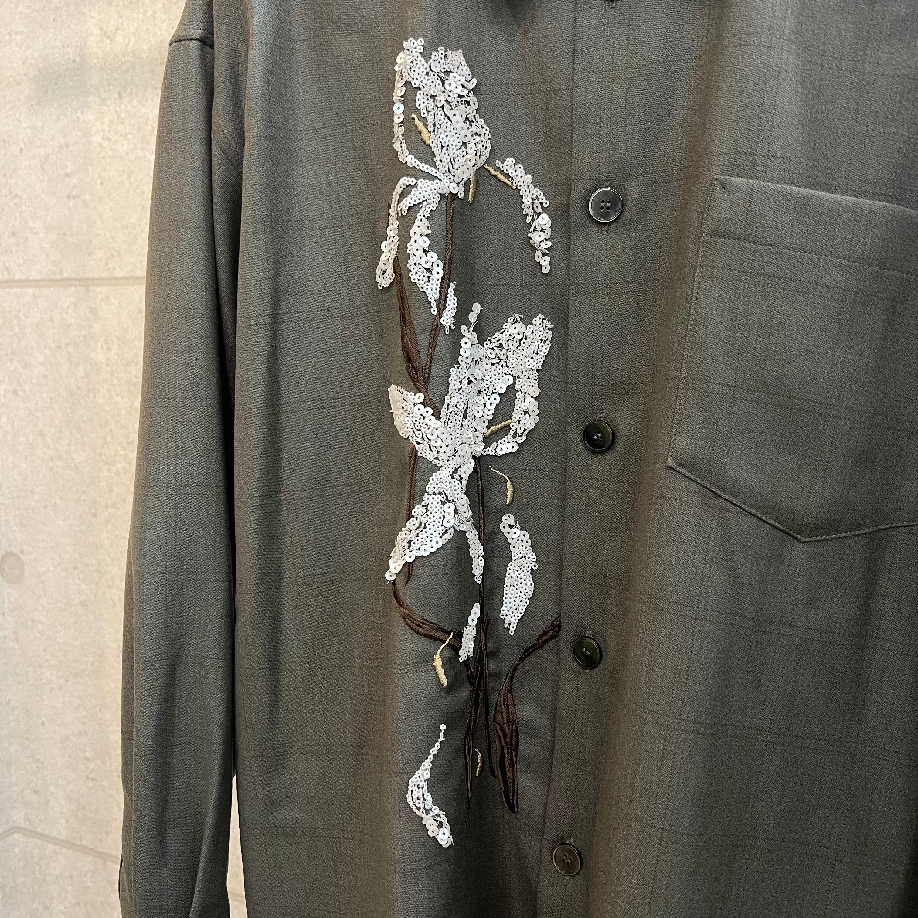 MARGE – Wool equin-embellished shirt (Khaki×White flower)