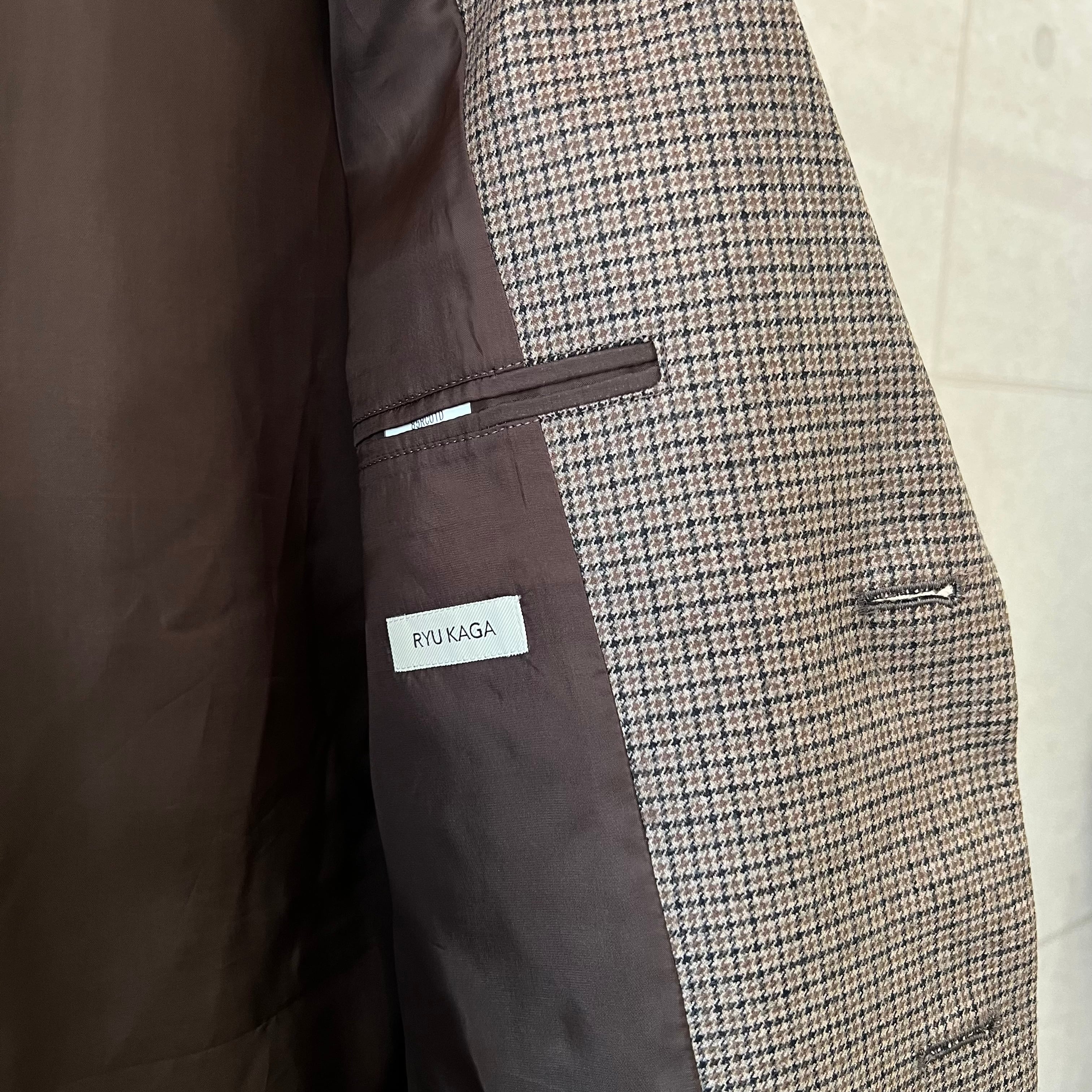 RYU KAGA - Wool flannel cropped chesterfield vest (CAMEL CHECK)
