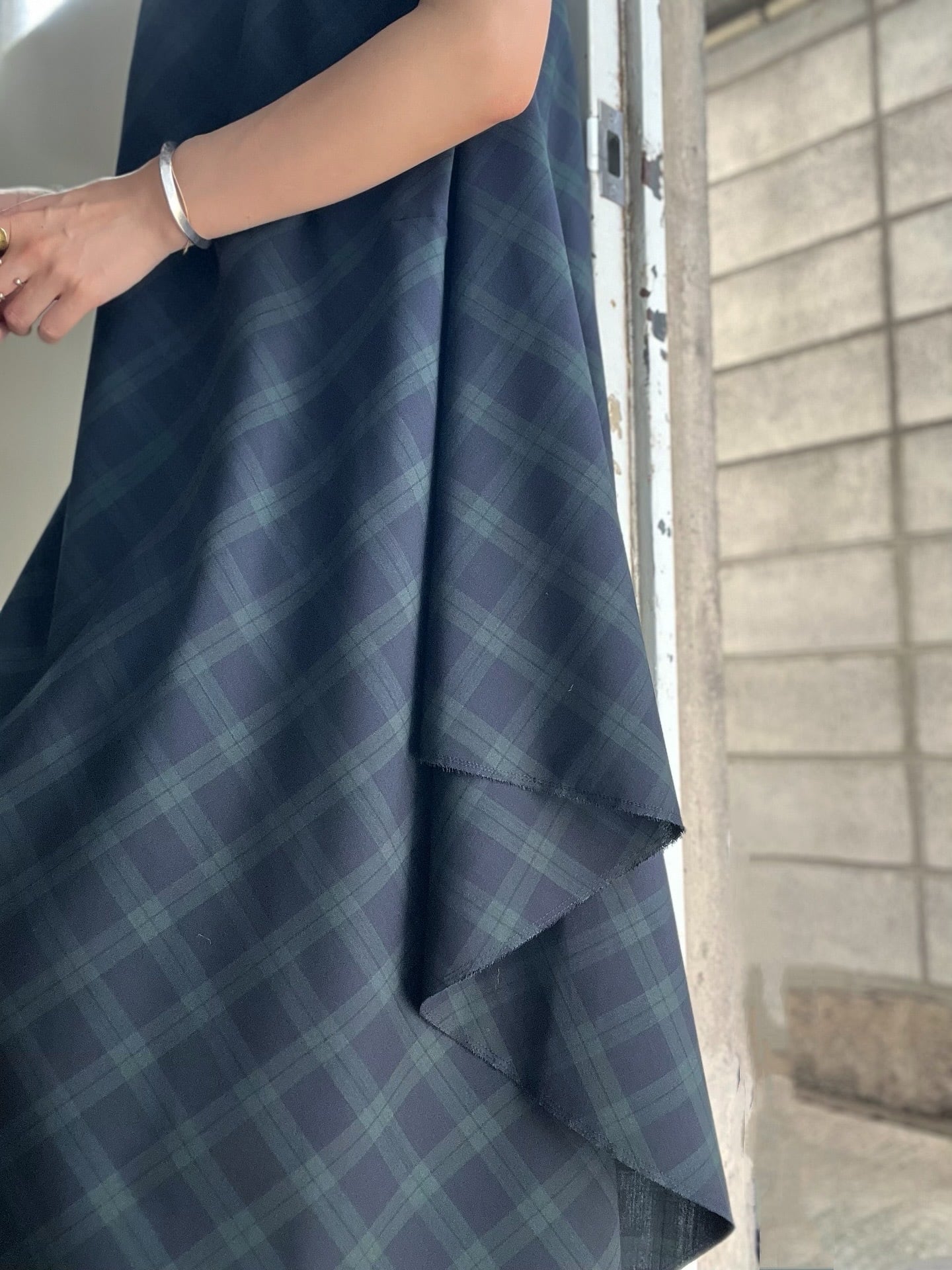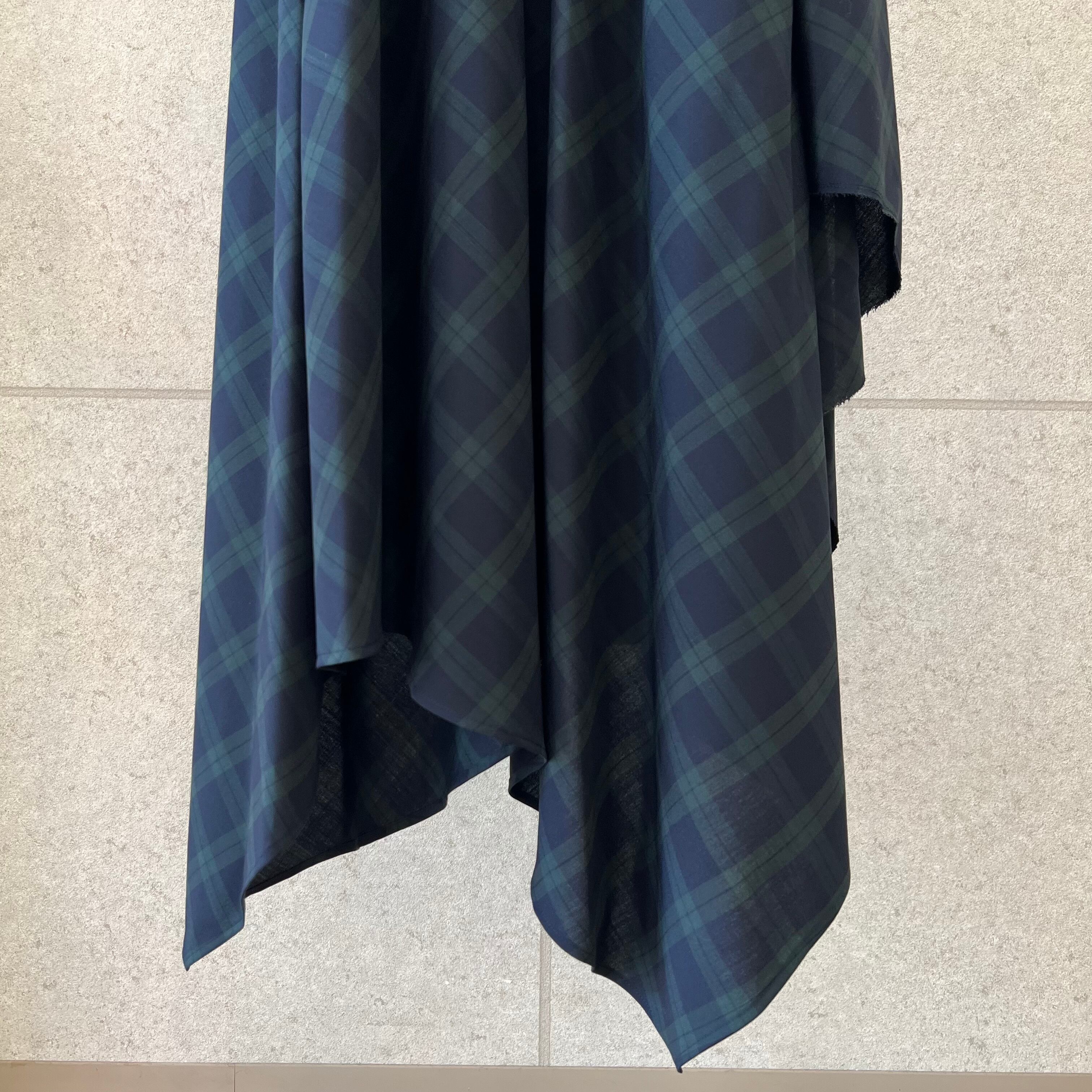 トラディショナルなブラックワッチ柄、少しトロみのあるやわらかな素材