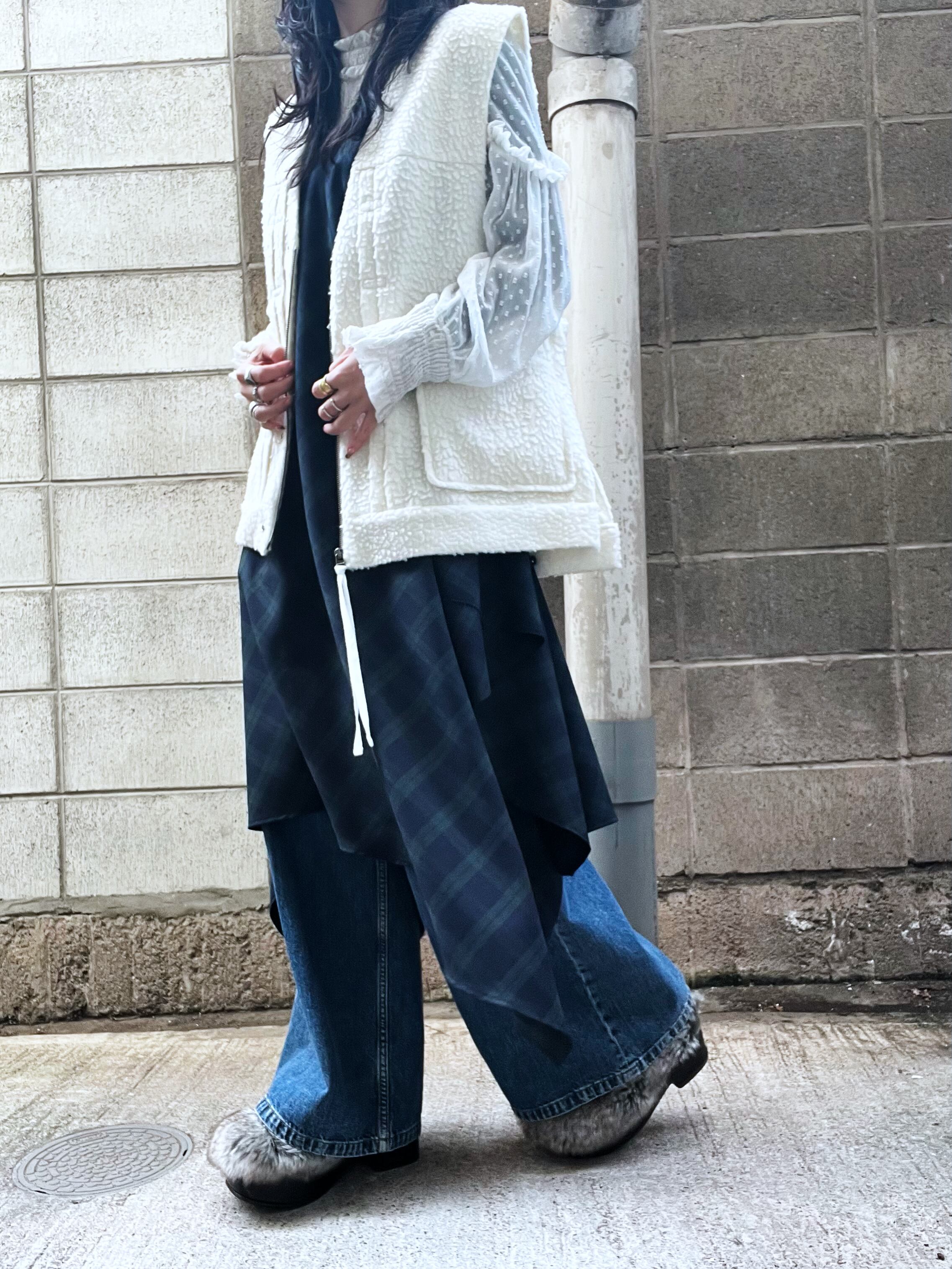 RYU KAGA - Black-watch Wool Cami Dress (BLACK WATCH)