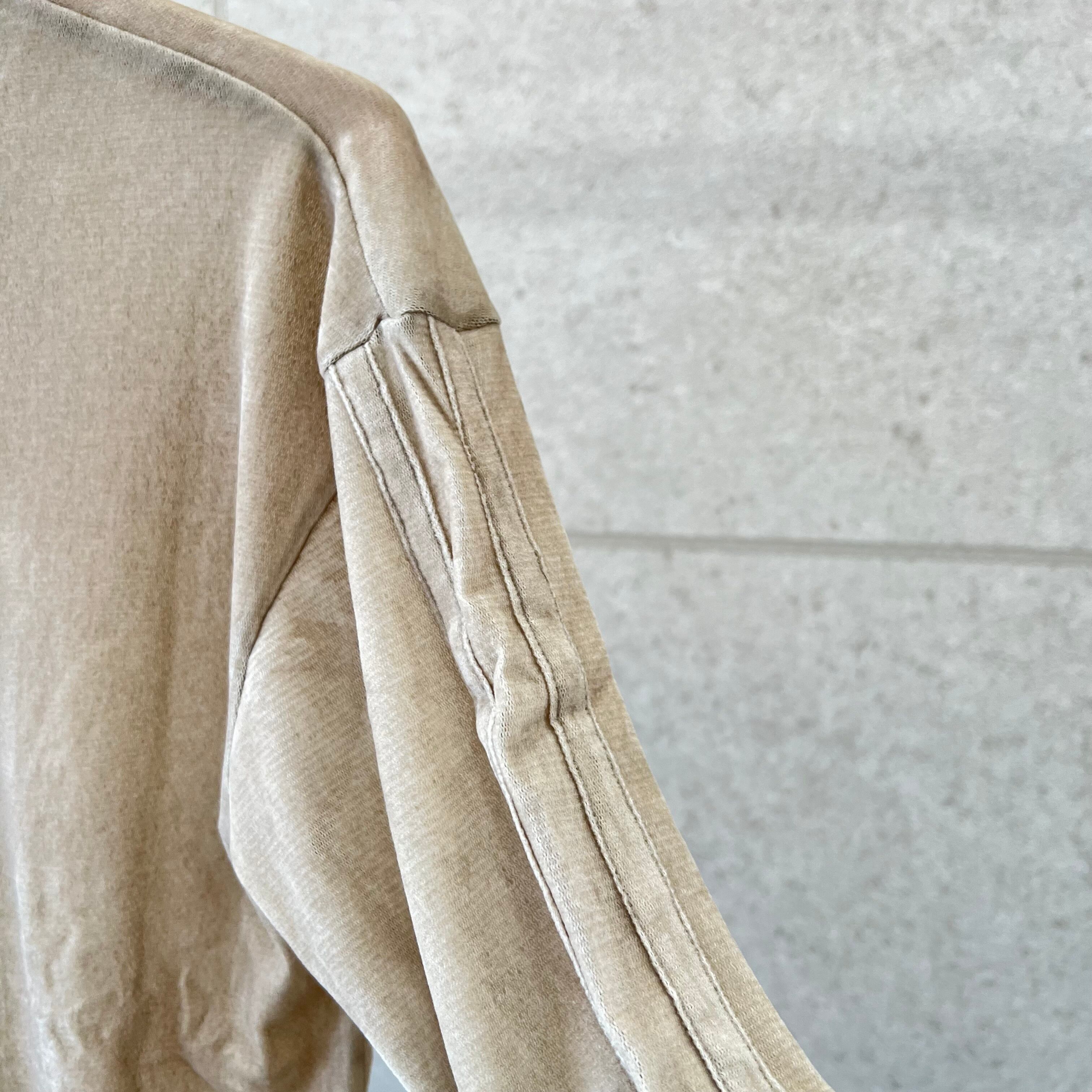 袖の2本線でスポーティな印象をプラス。着用期間の長いレイヤードアイテム。
