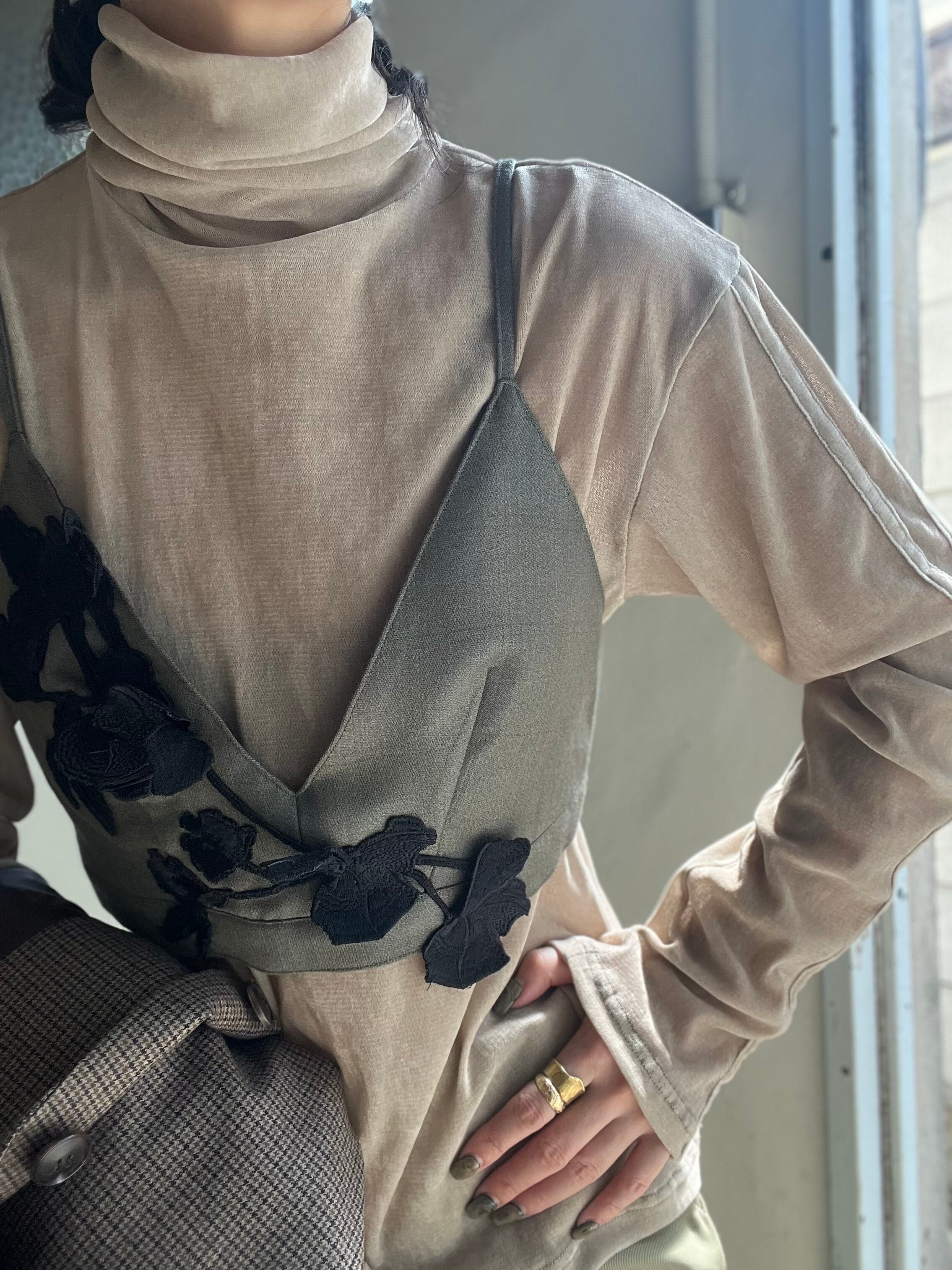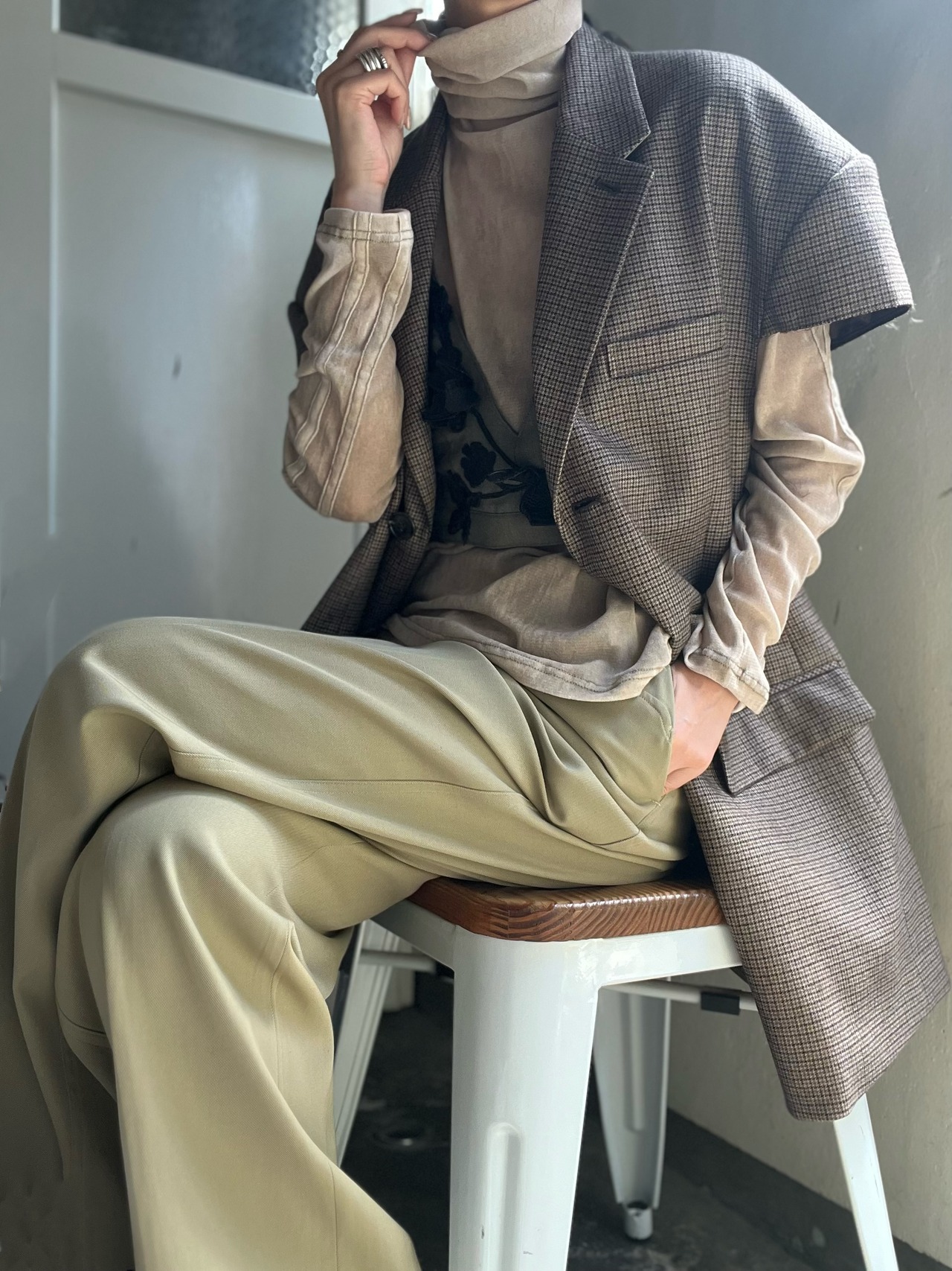 チュールにフロッキーを施したベロアのような素材。シルエットはジャストより少し緩め。