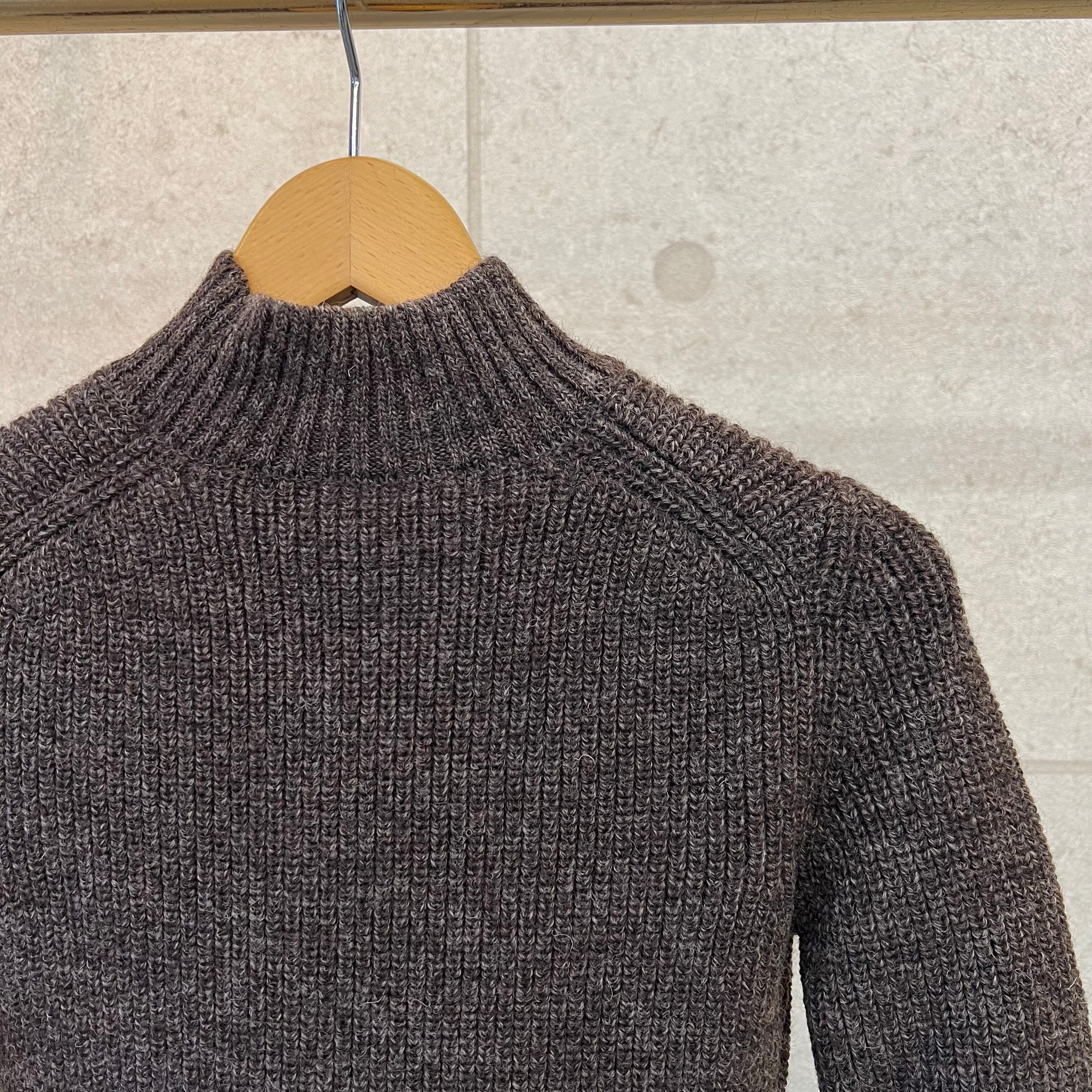 丈夫な繊維質で、ハリとコシ、弾力性、バルキー性、そして耐久性があり、型崩れを起こしにくく、空気を多く含み非常に暖かな素材感の英国羊毛を使用。