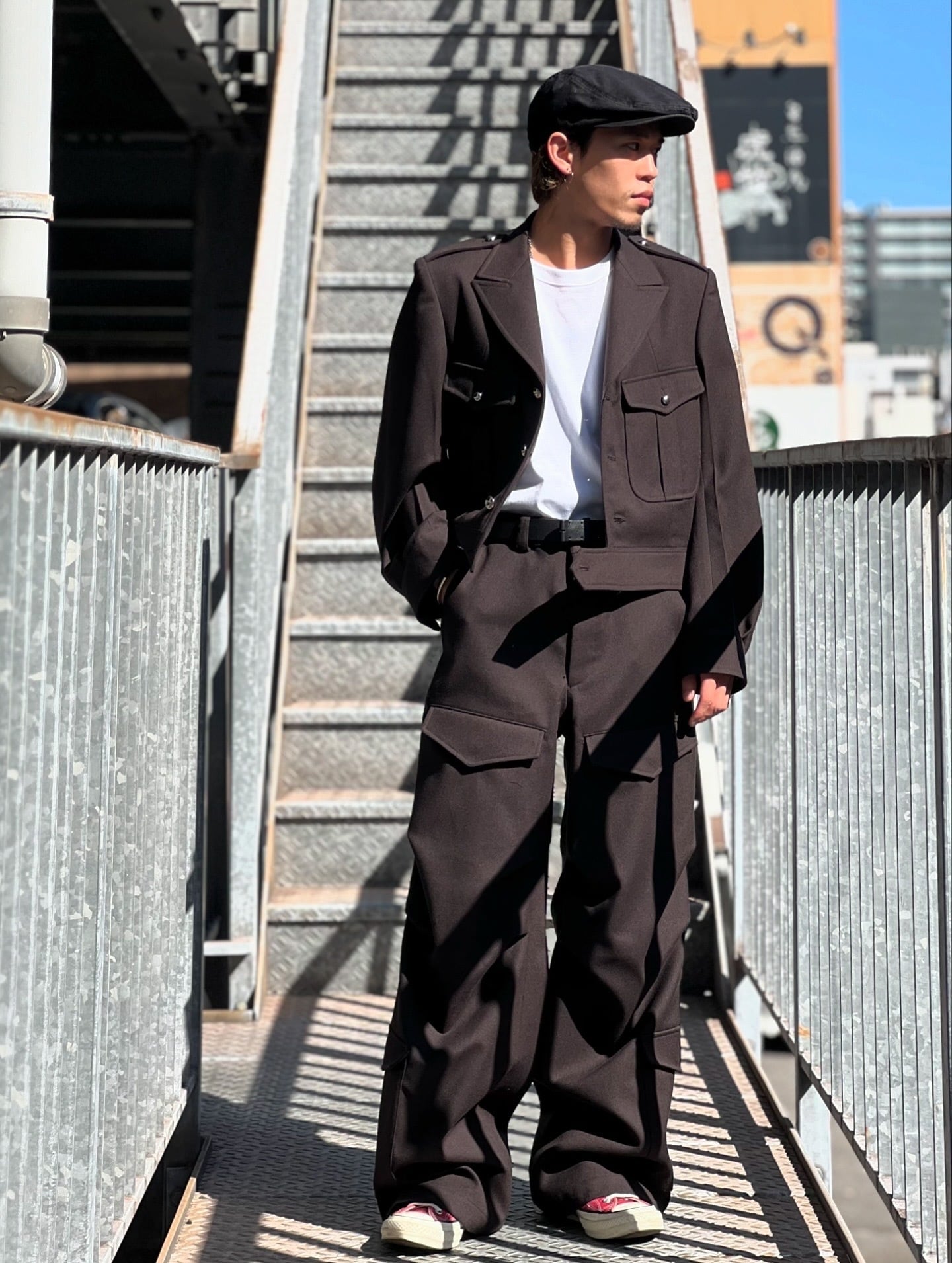 米軍M-51フィールドカーゴパンツのパネルデザインをベースにしたミリタリーワイドパンツ。