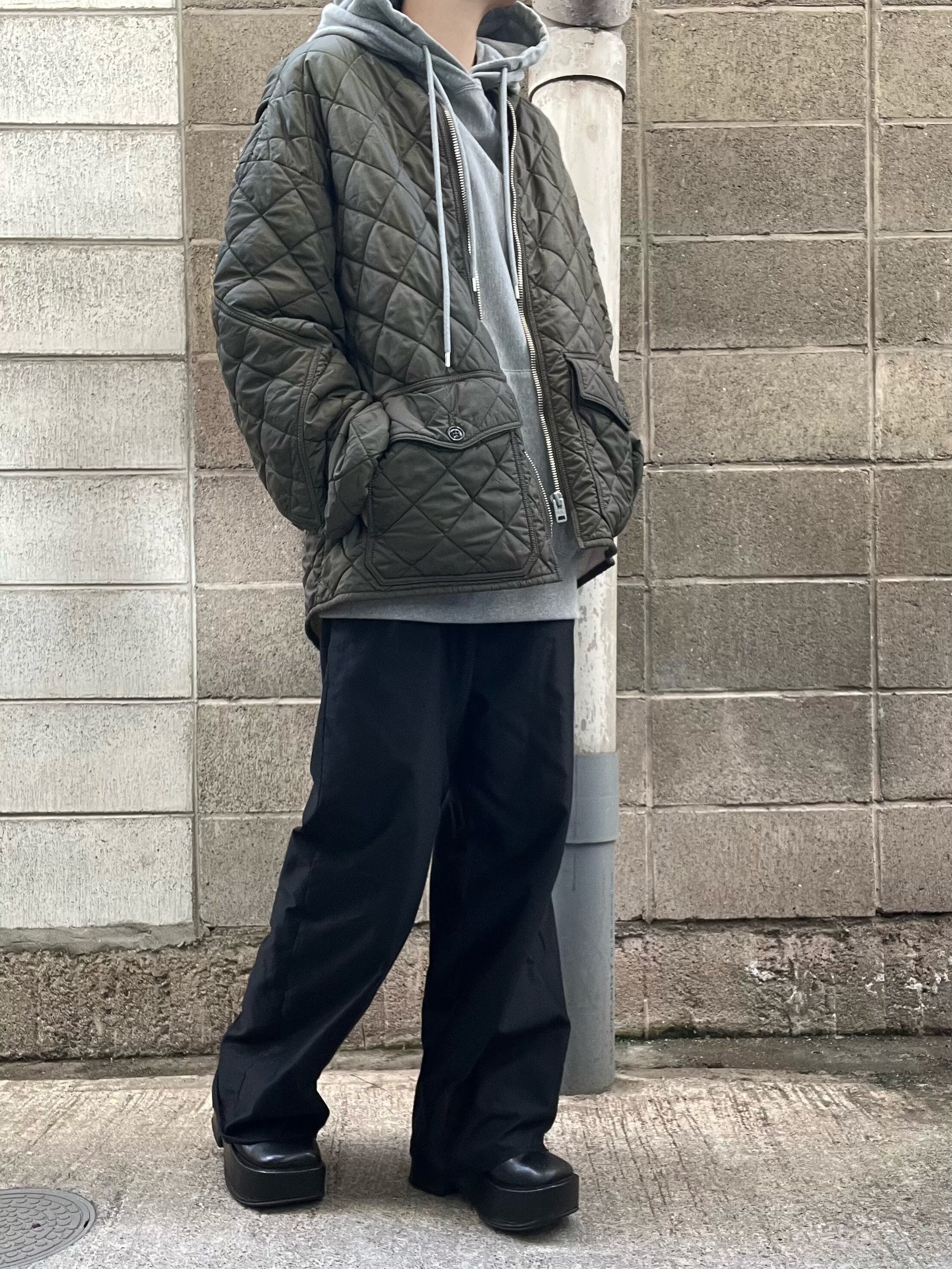 アクションプリーツで運動量があります。真冬はインナーとして着られるように他のアウターと比べるとジャストに少しゆとりがある程度のシルエットです。