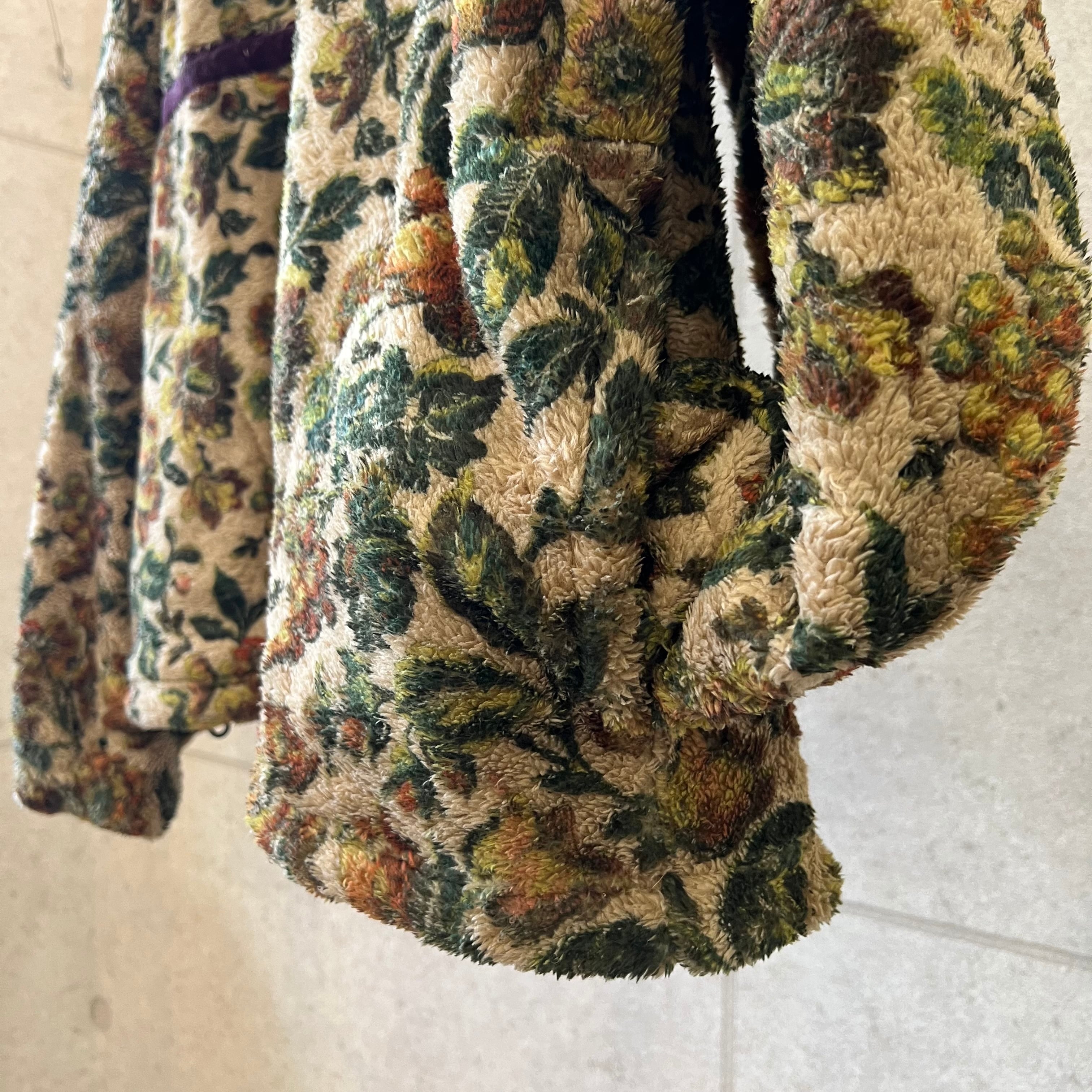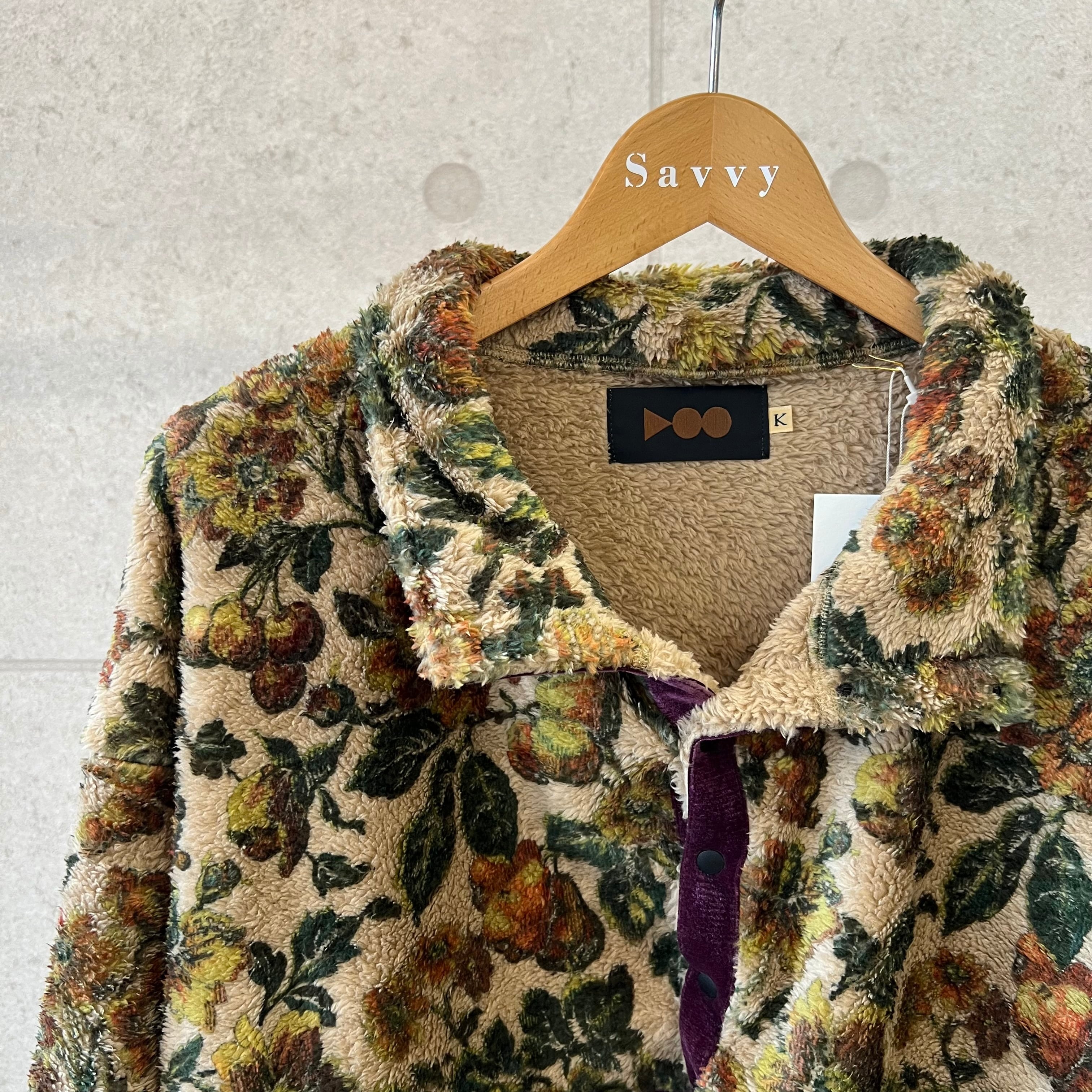 見た目の凸凹感とは相反した、軽く柔らかいシープボアを採用した花柄のプルオーバータイプのアイテムです。