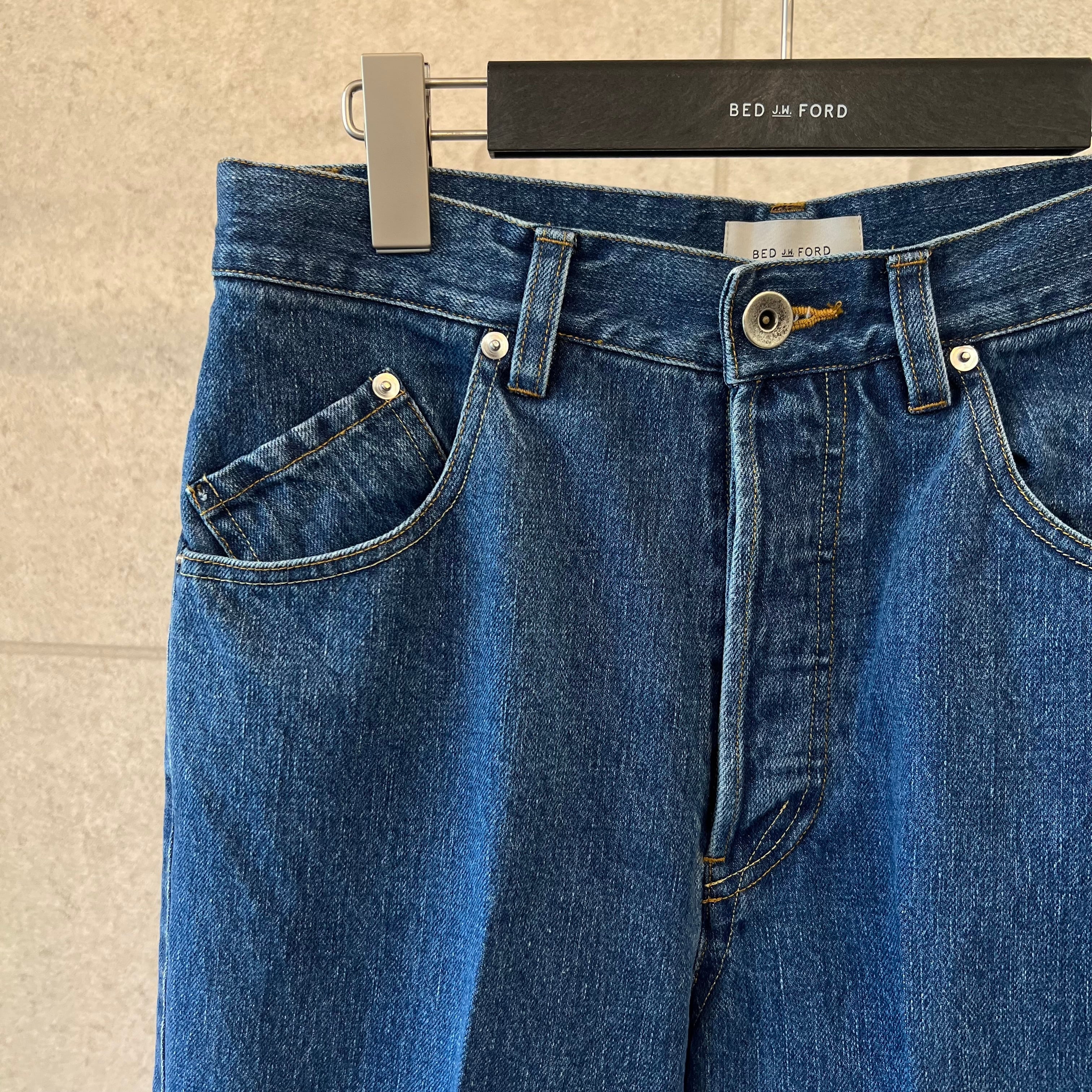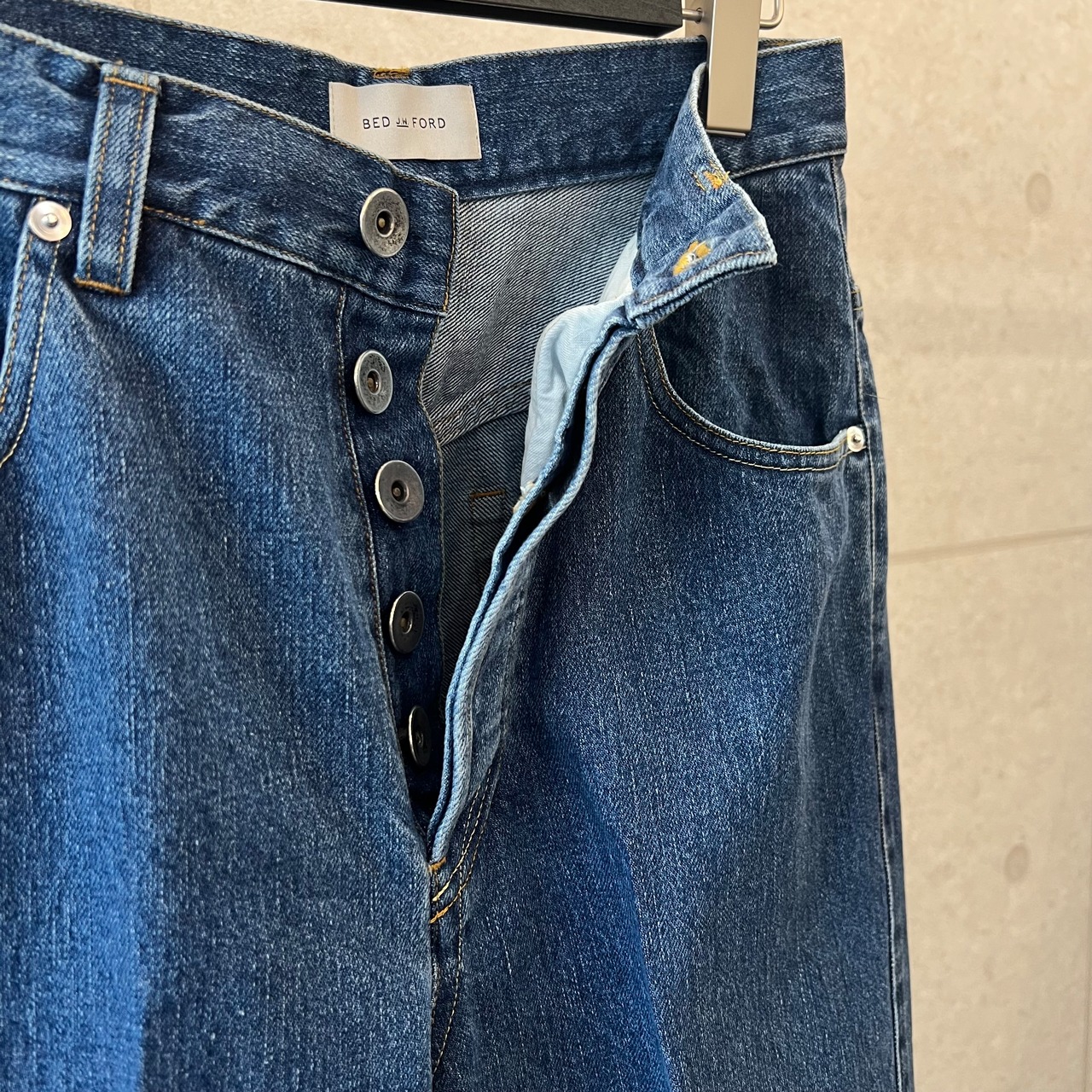 現在日本で稼働している最古の精紡機を使って紡績した糸を使用したデニム。最新の精紡機スピードの1/3程度のゆっくりと紡績することで素材へのストレスを少なくし、綿本来の優しい質感や自然な表情を生み出しています。ストーンバイオ+ブリーチ