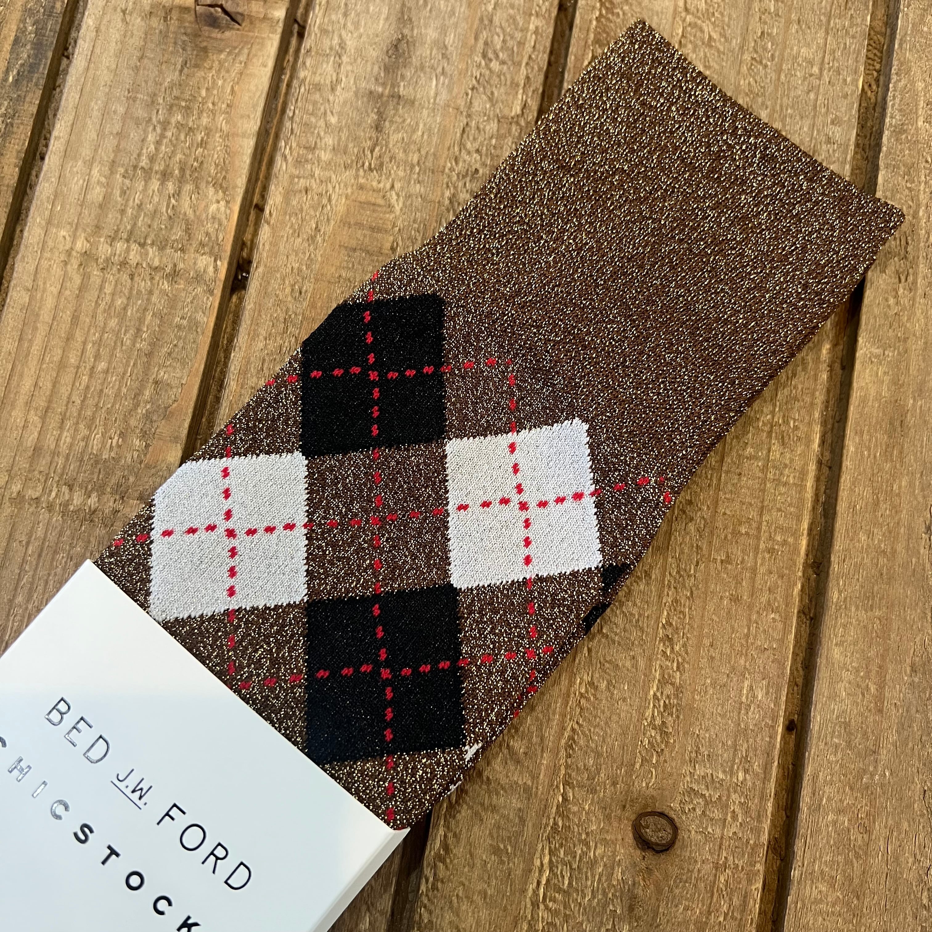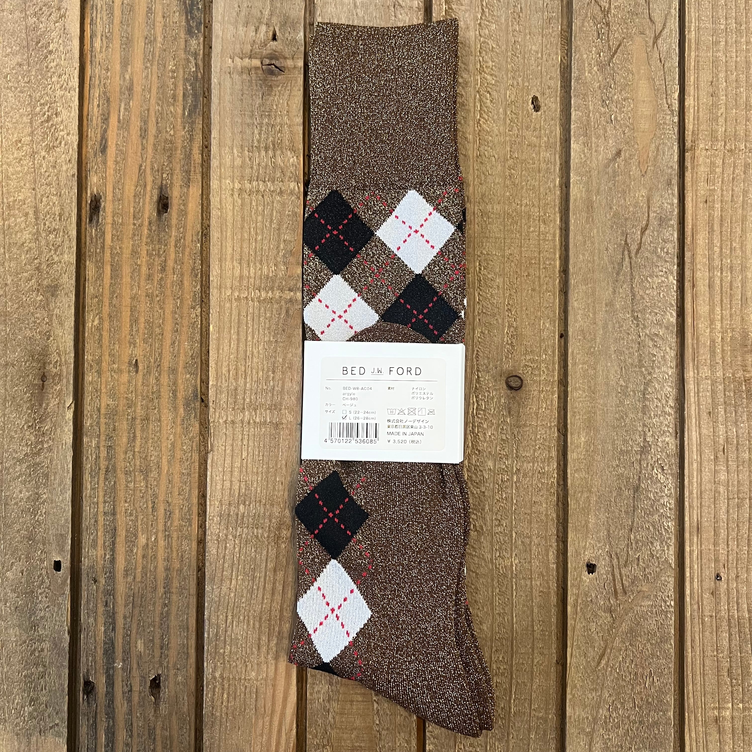 BEDj.w.FORDの定番のGlitter socksのアーガイル柄です。