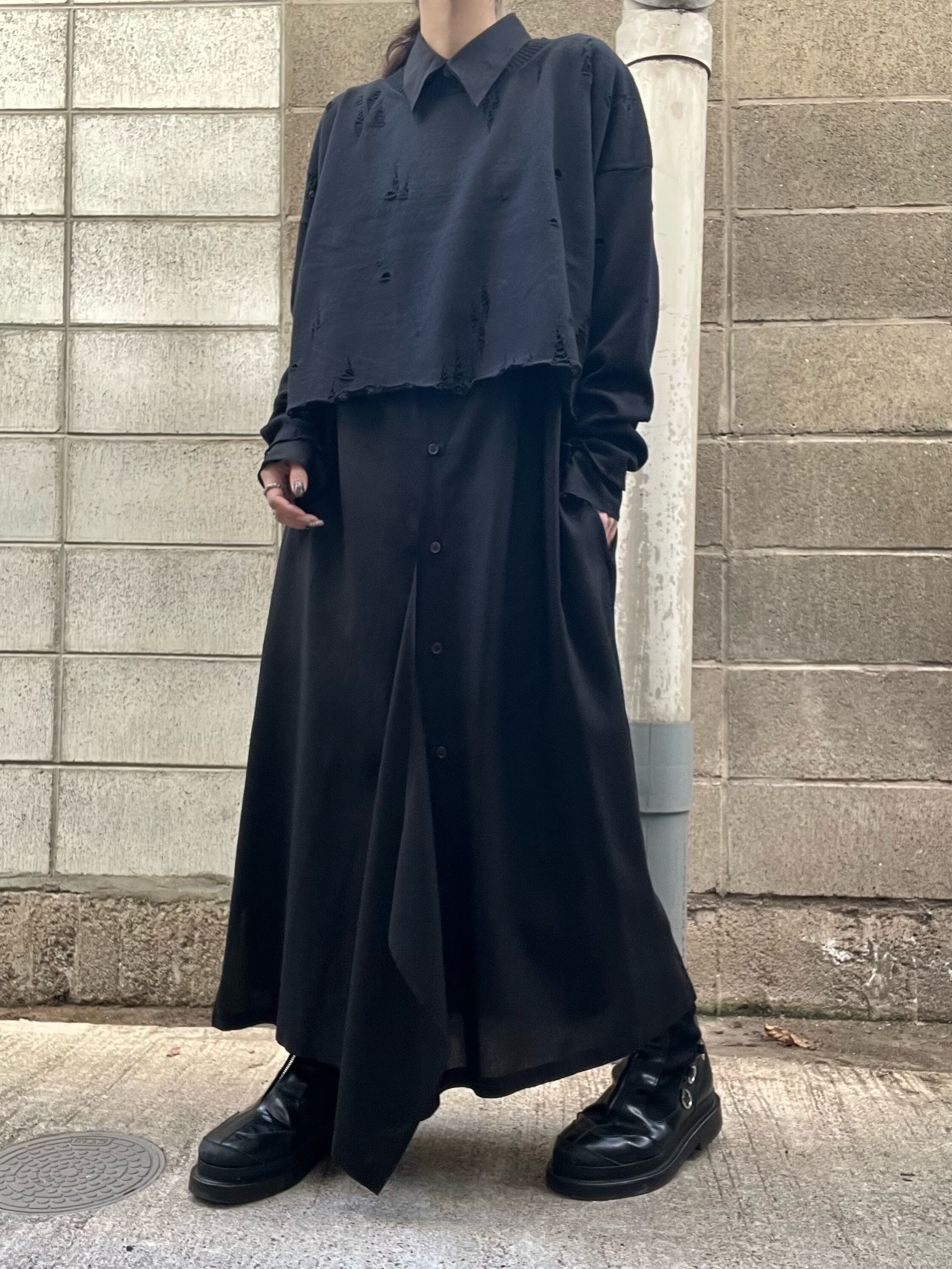 sulvam – 左前フレアレーヨンロングドレス (BLACK)