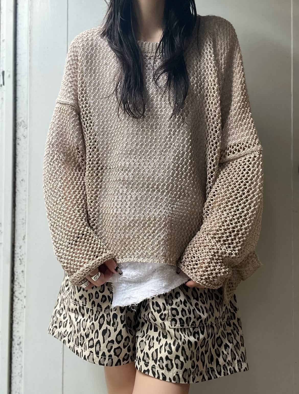 sulvam – オーバーメッシュニット (BEIGE)