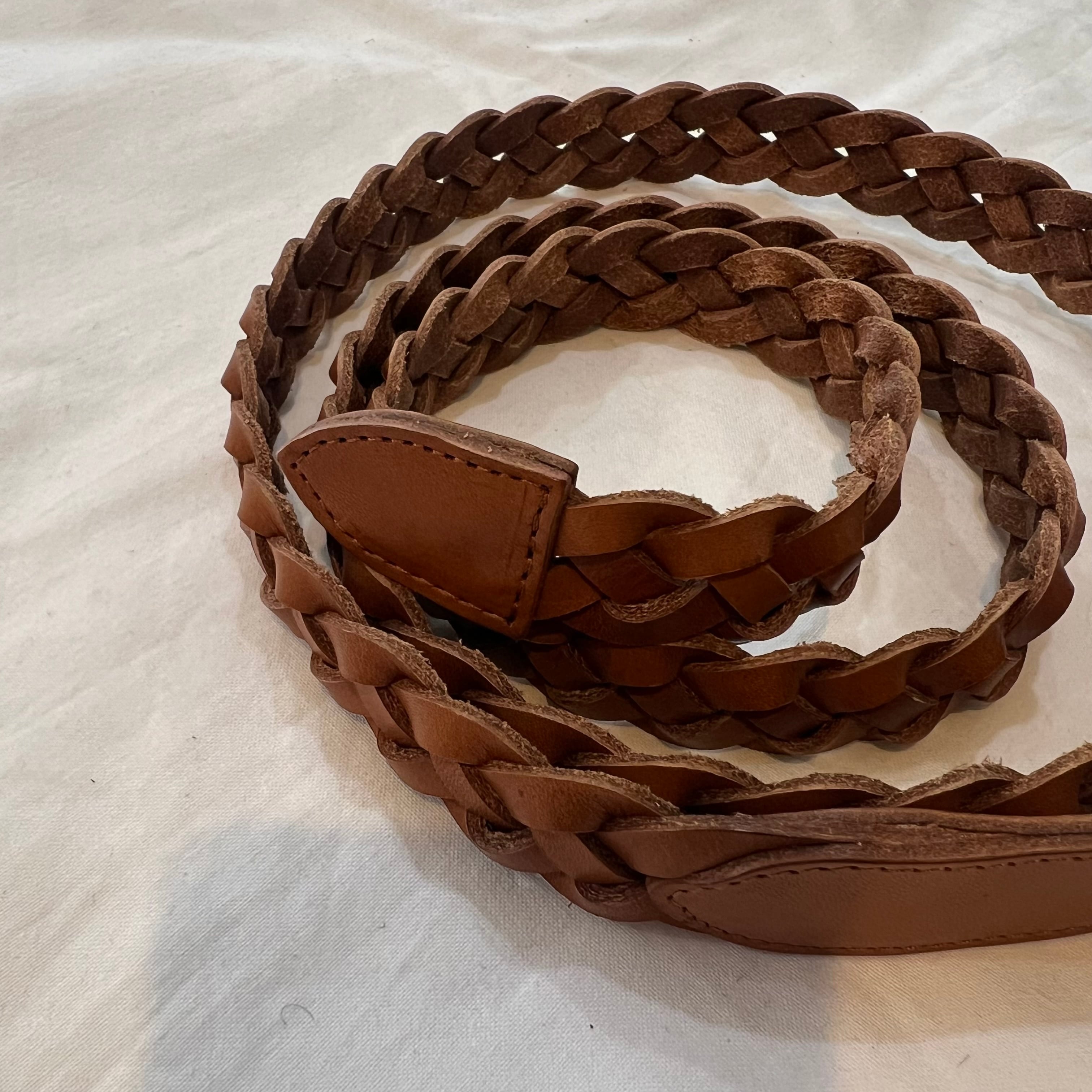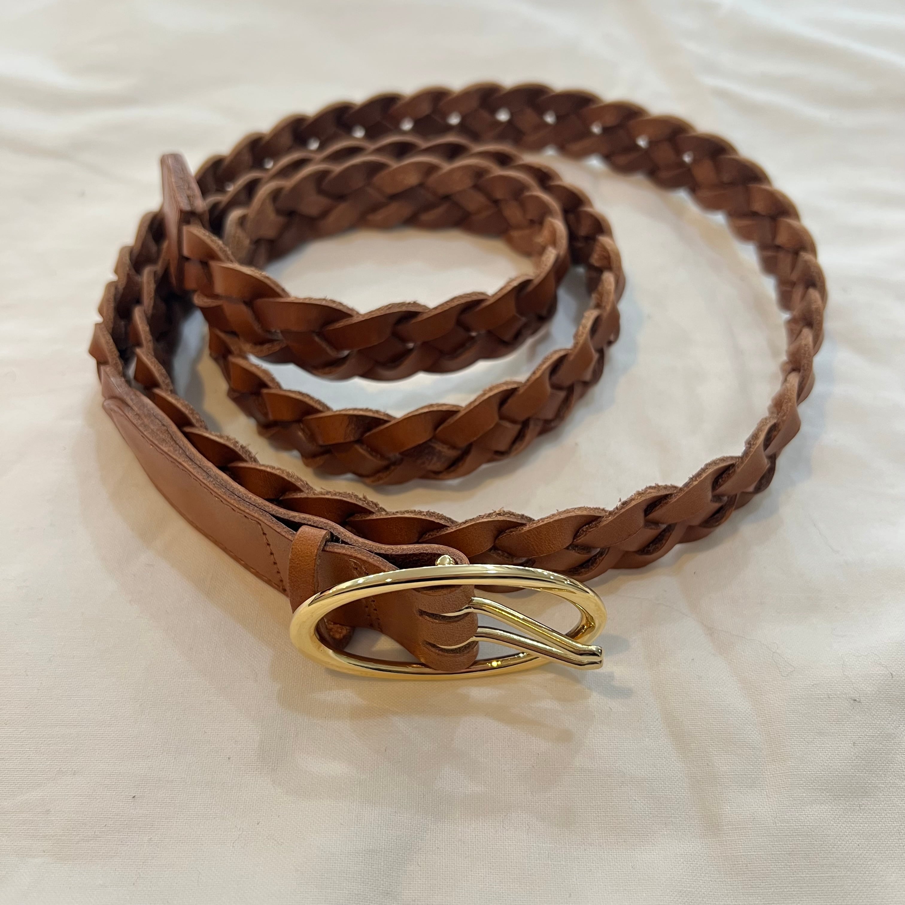 ヴィンテージ感のある雰囲気の良いカーフレザーを使い、編み込みベルトを作成しました。