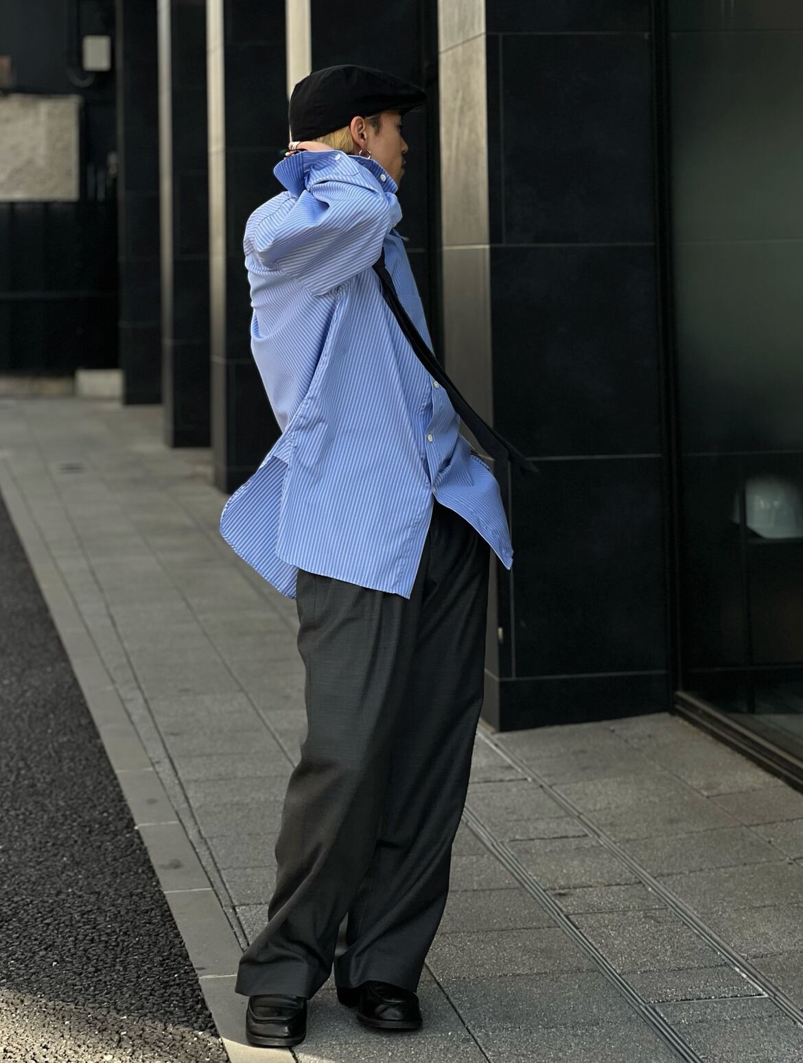 インタックを取ることにより、ゆったりとしたシルエットながらも、スマートな印象に見せております。