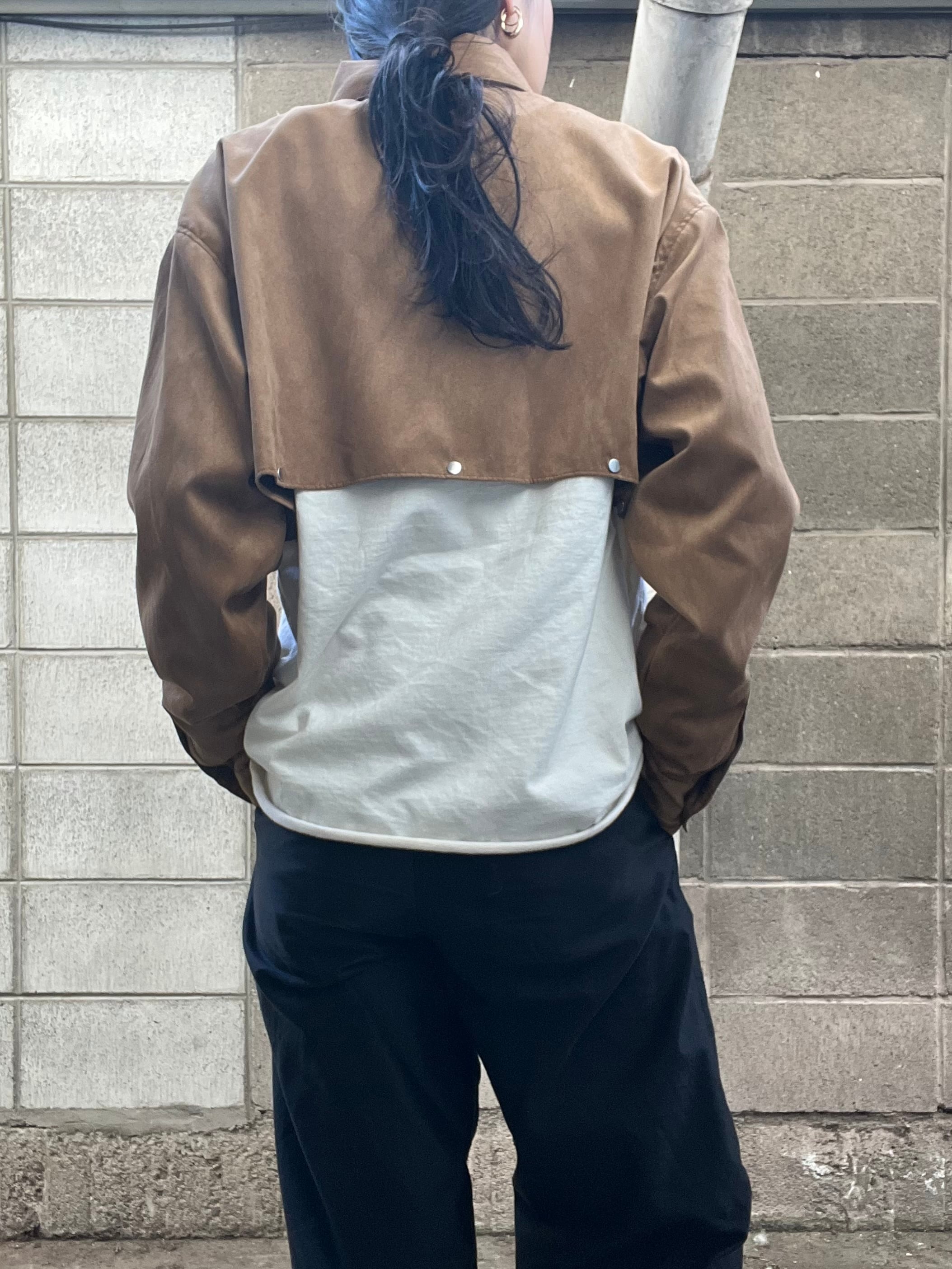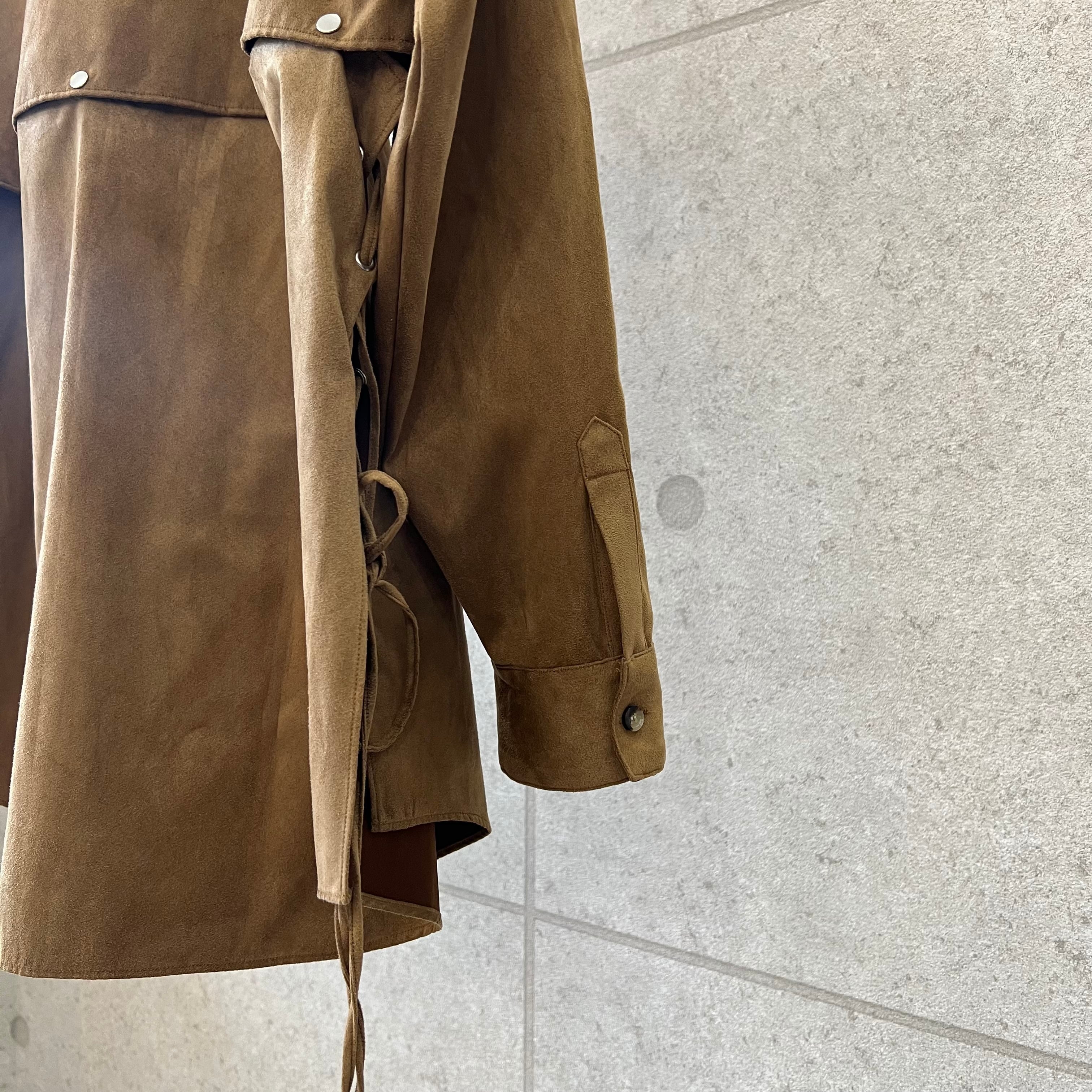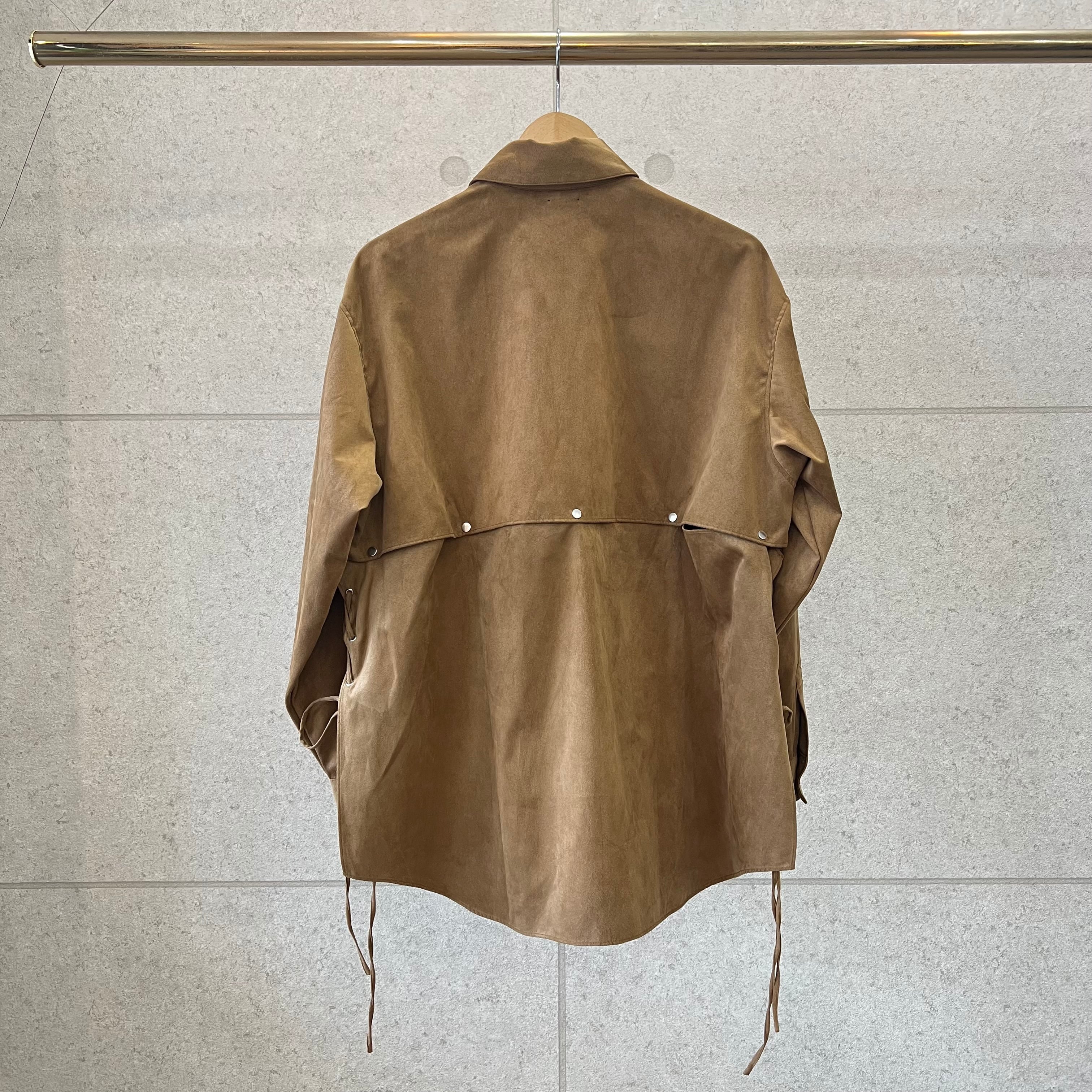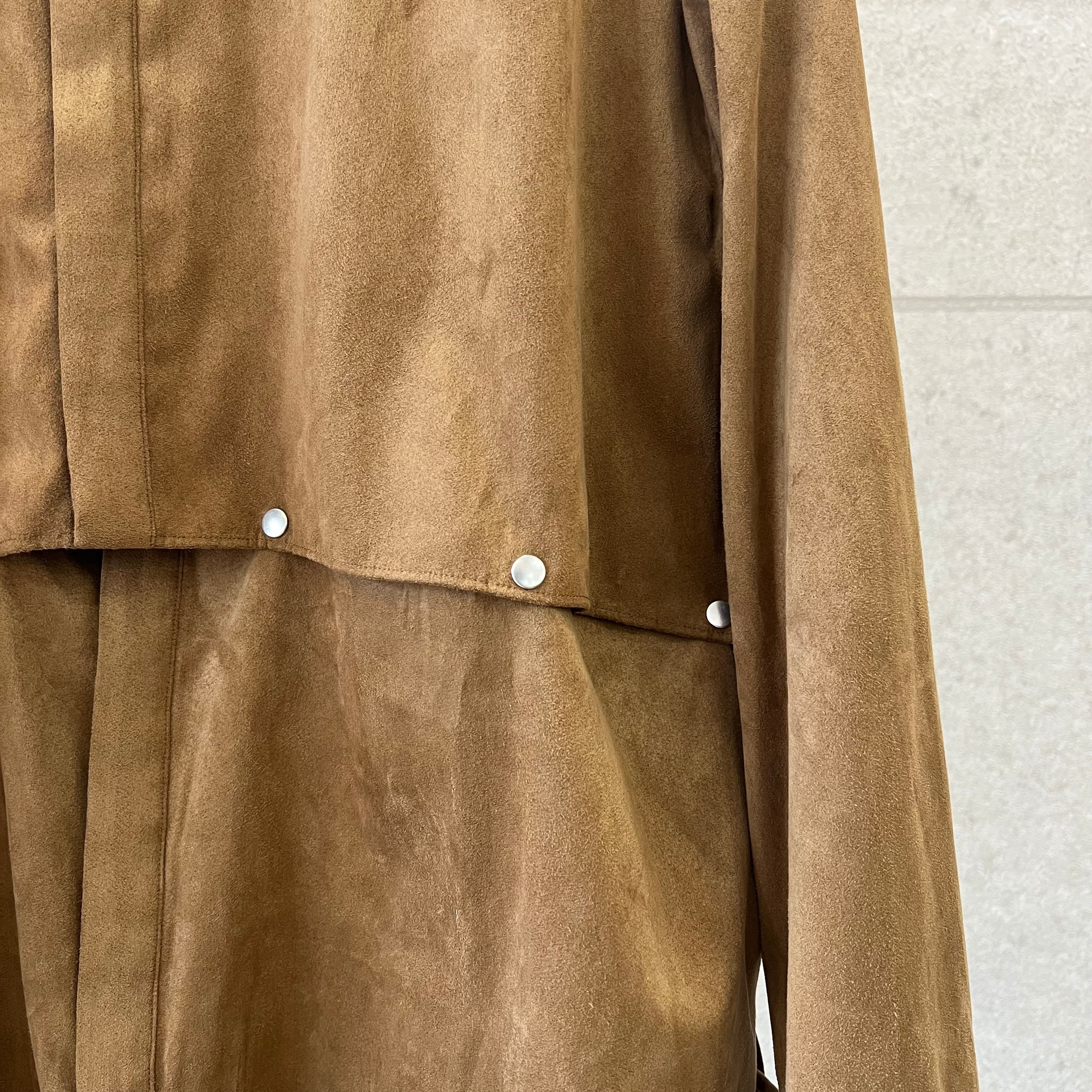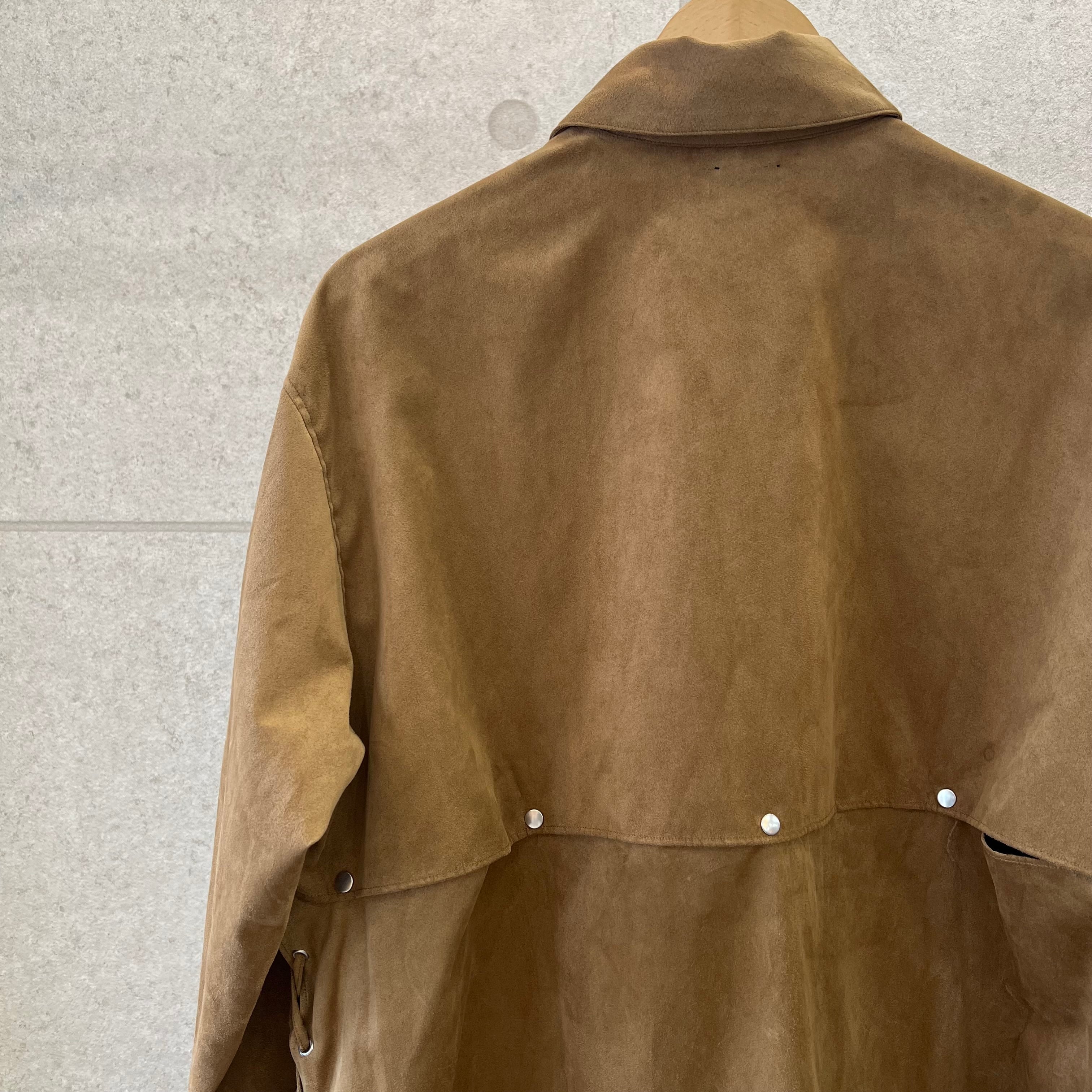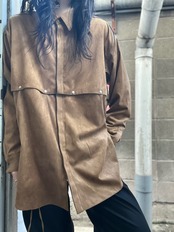 溶接工が着るユニフォームとしてVINTAGEでも稀な存在のジャケットをシャツに落とし込んだデザイン。フェイクスエードを使用しています。上下がスナップボタンで外れ短丈シャツとしても着用出来ます。前身のみ外すこともできます。脇に紐で調節できる仕様。