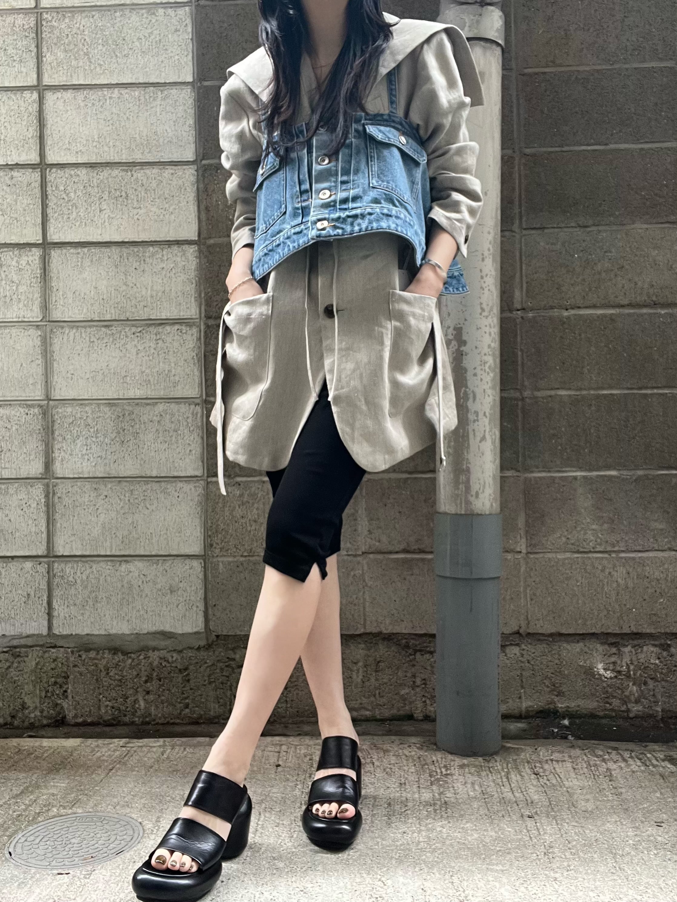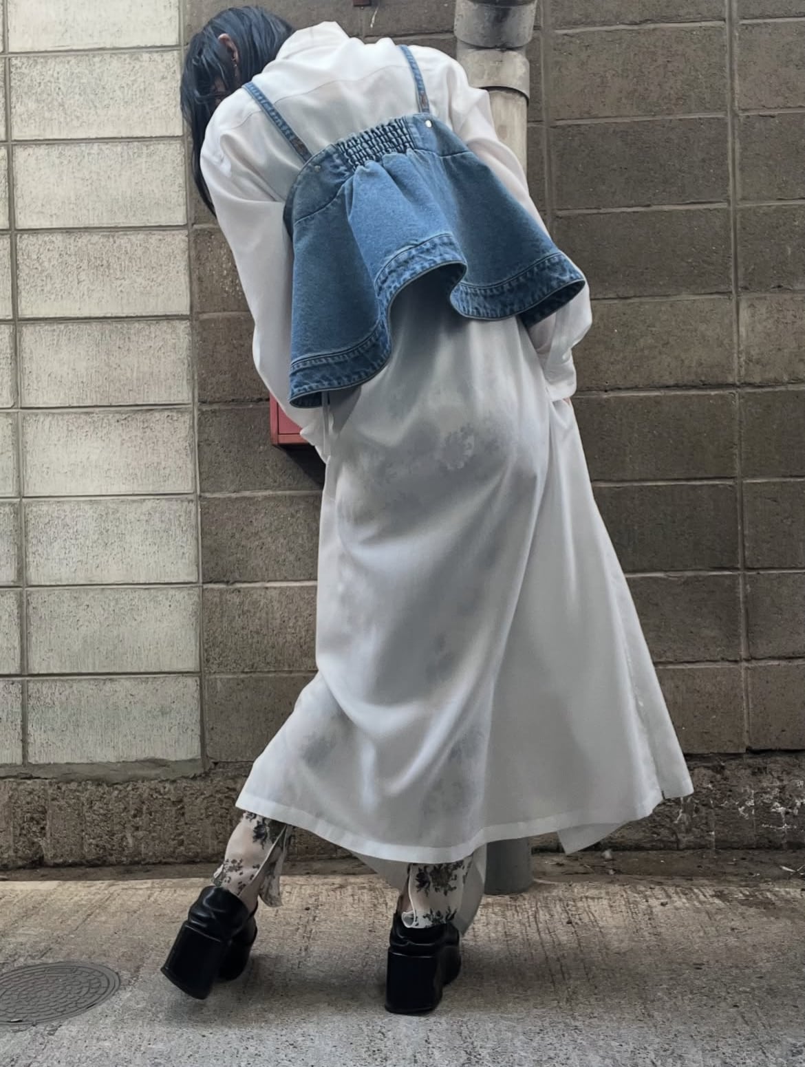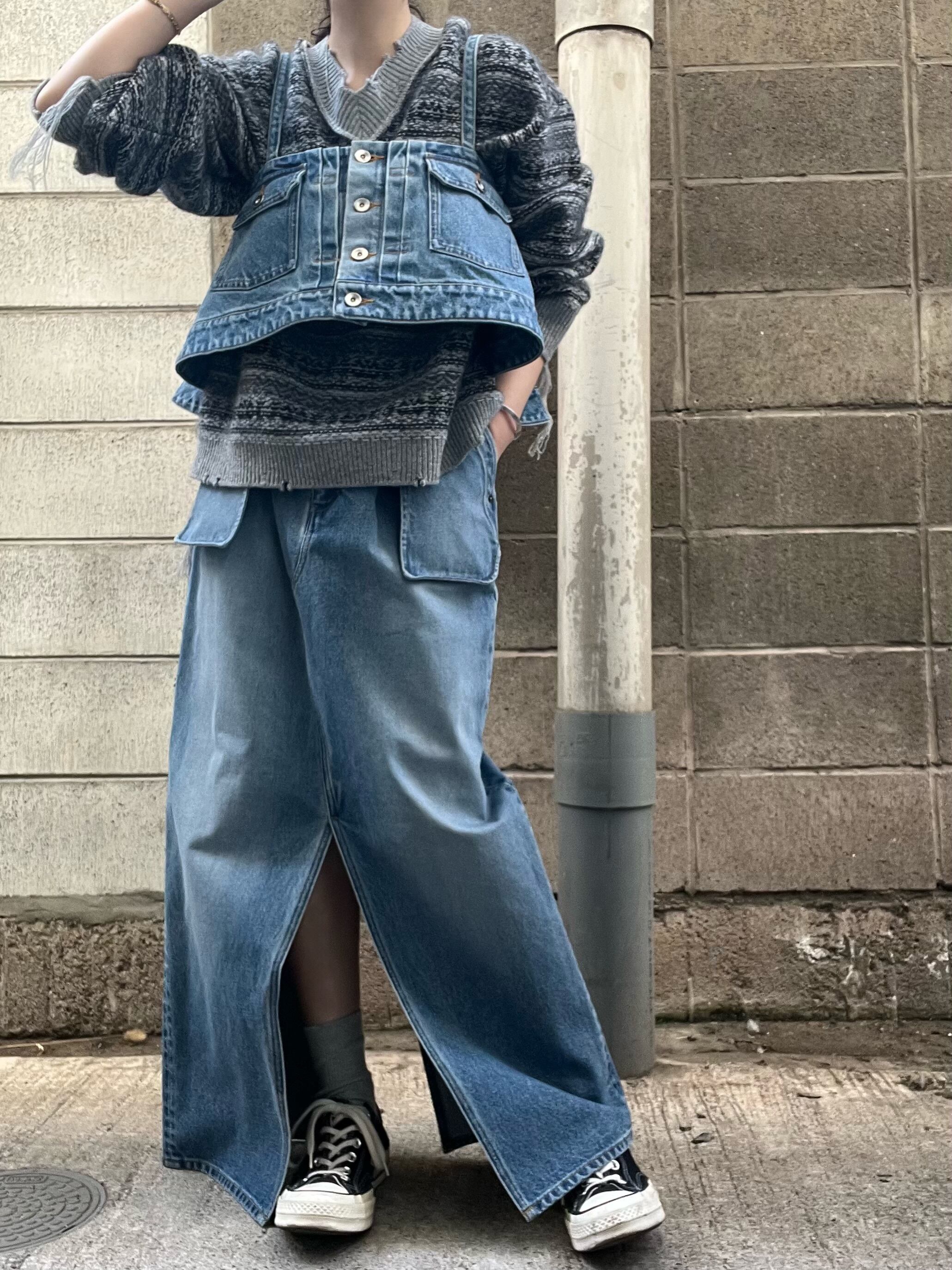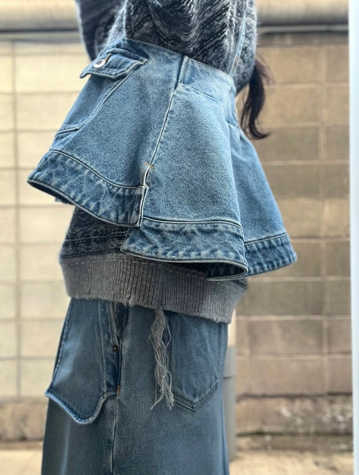 デニム独特のその風合いからラッフルシルエットが甘くなり過ぎない点が特徴的です。