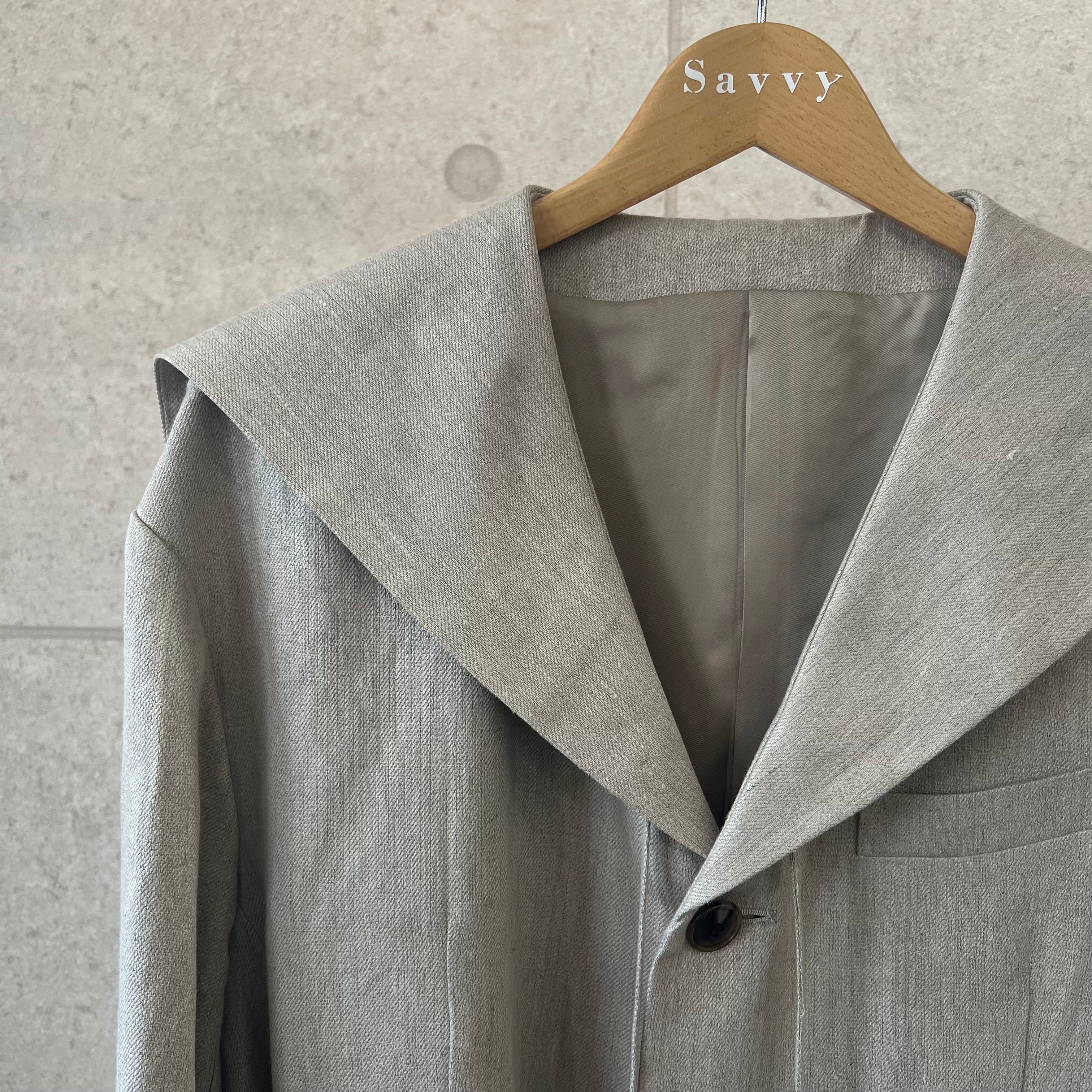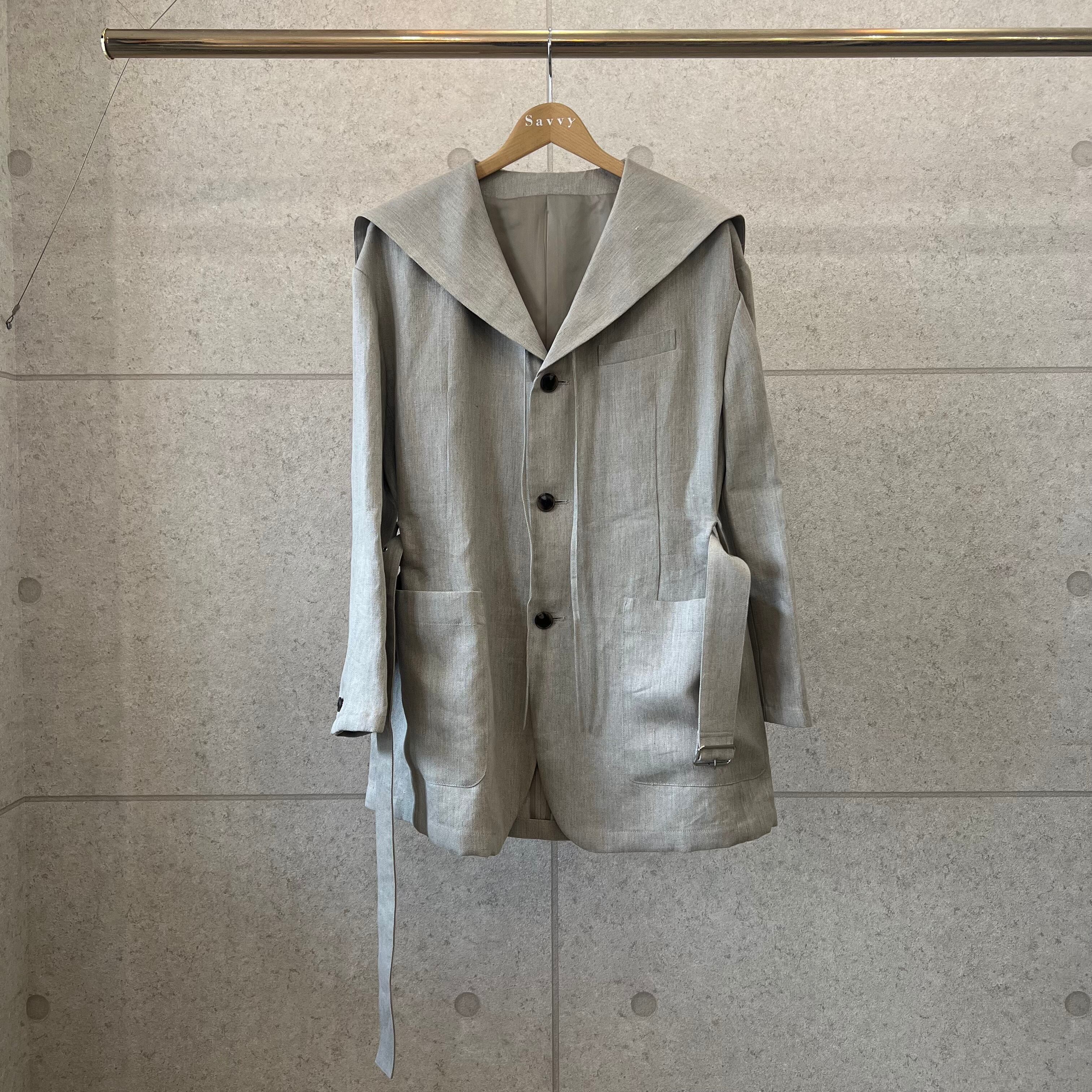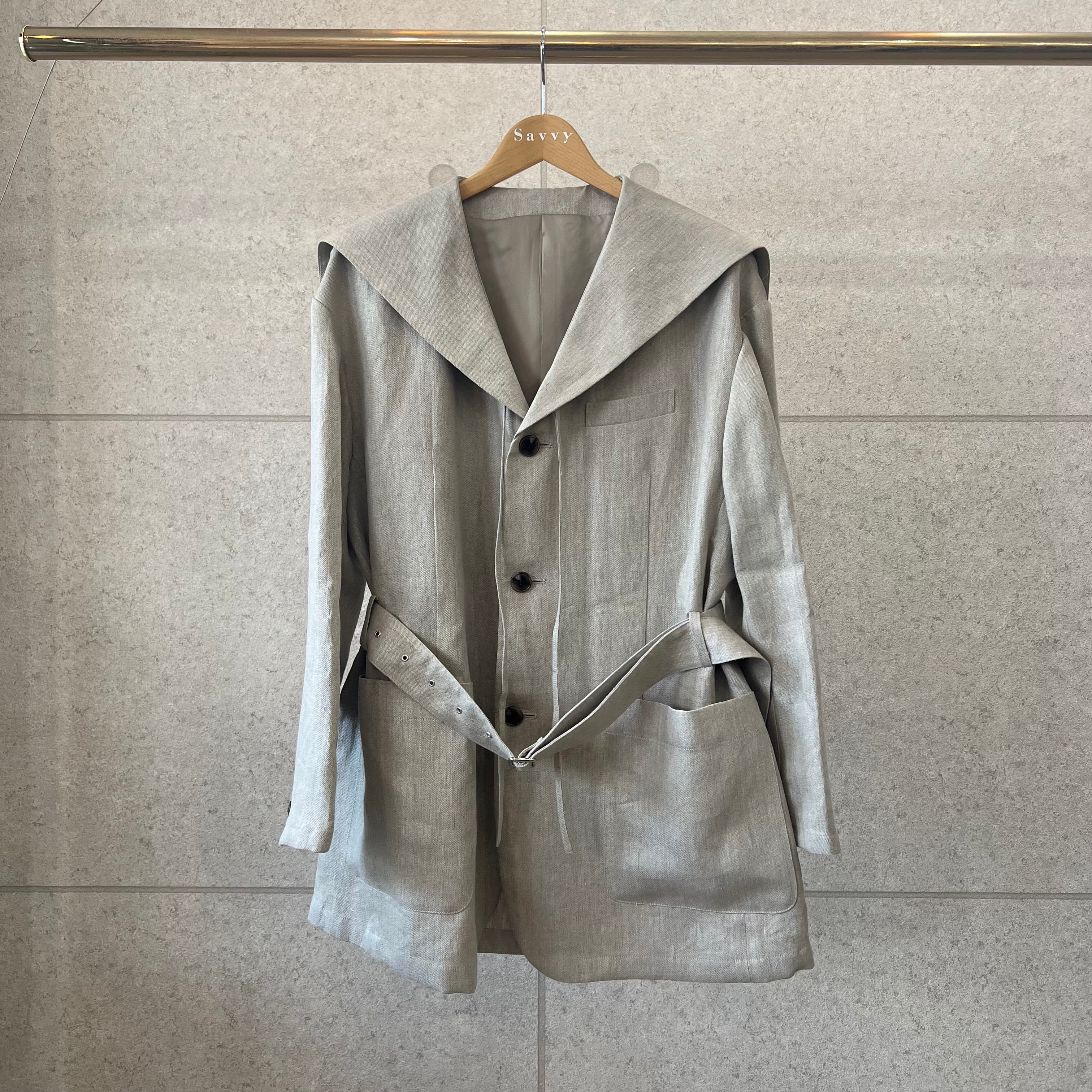 農夫をイメージした、オーバーサイズのセーラージャケット。素材はヴィンテージ加工を施したリネン・チノクロス。武骨でしっかりとした肉感が特徴的ですが、軽量感もあり、春夏らしいアウター素材です。吸水性、吸汗性の良い日本製リネン100%です。