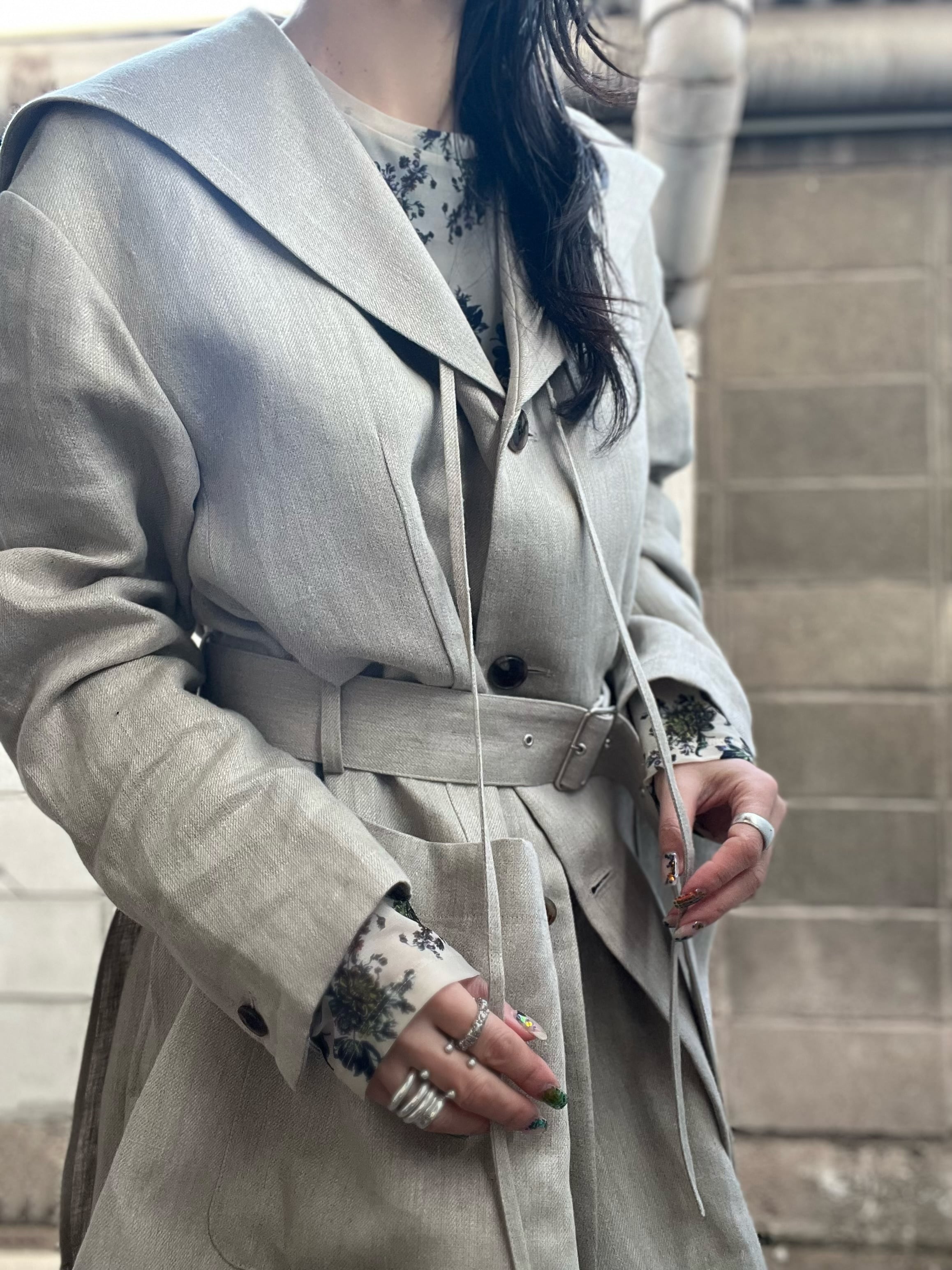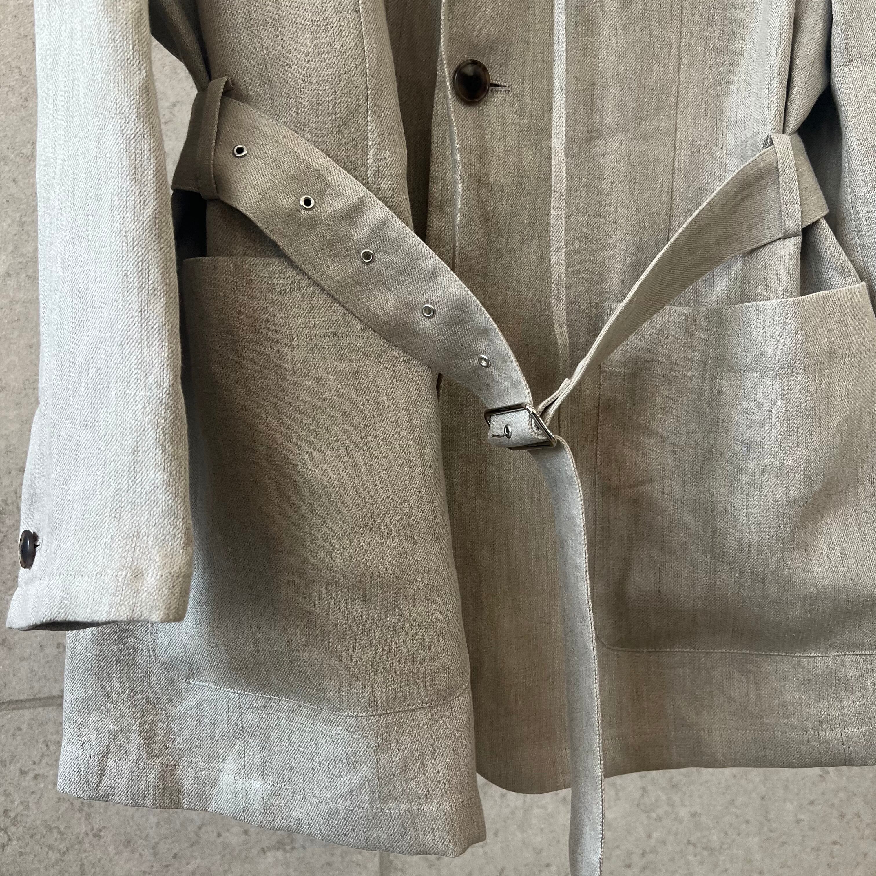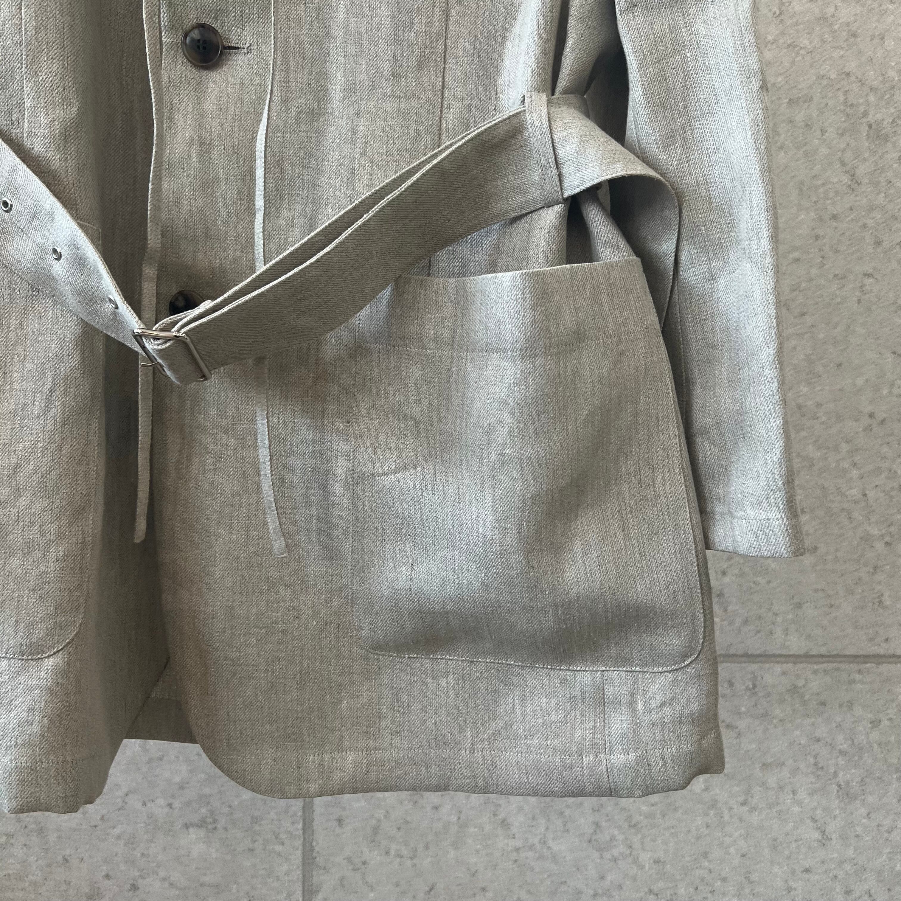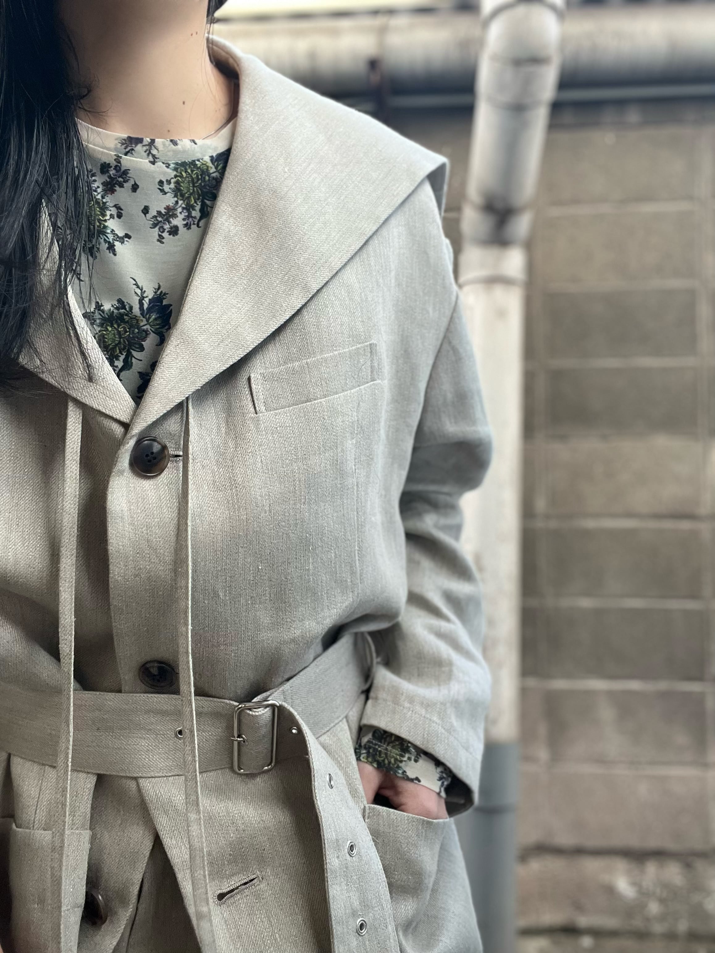 農夫をイメージした、オーバーサイズのセーラージャケット。素材はヴィンテージ加工を施したリネン・チノクロス。武骨でしっかりとした肉感が特徴的ですが、軽量感もあり、春夏らしいアウター素材です。吸水性、吸汗性の良い日本製リネン100%です。
