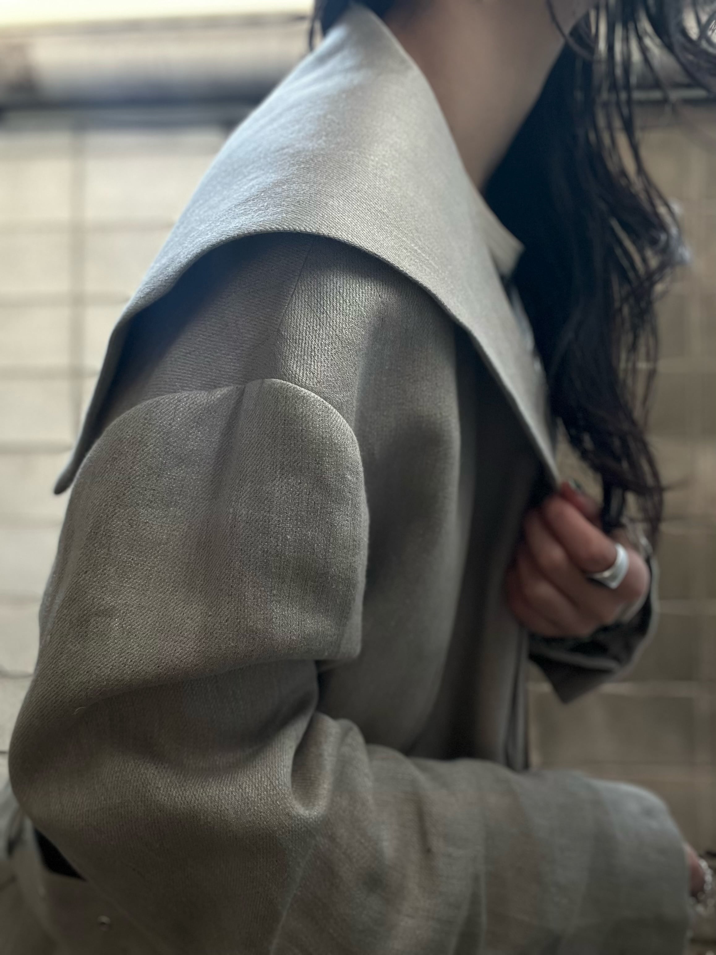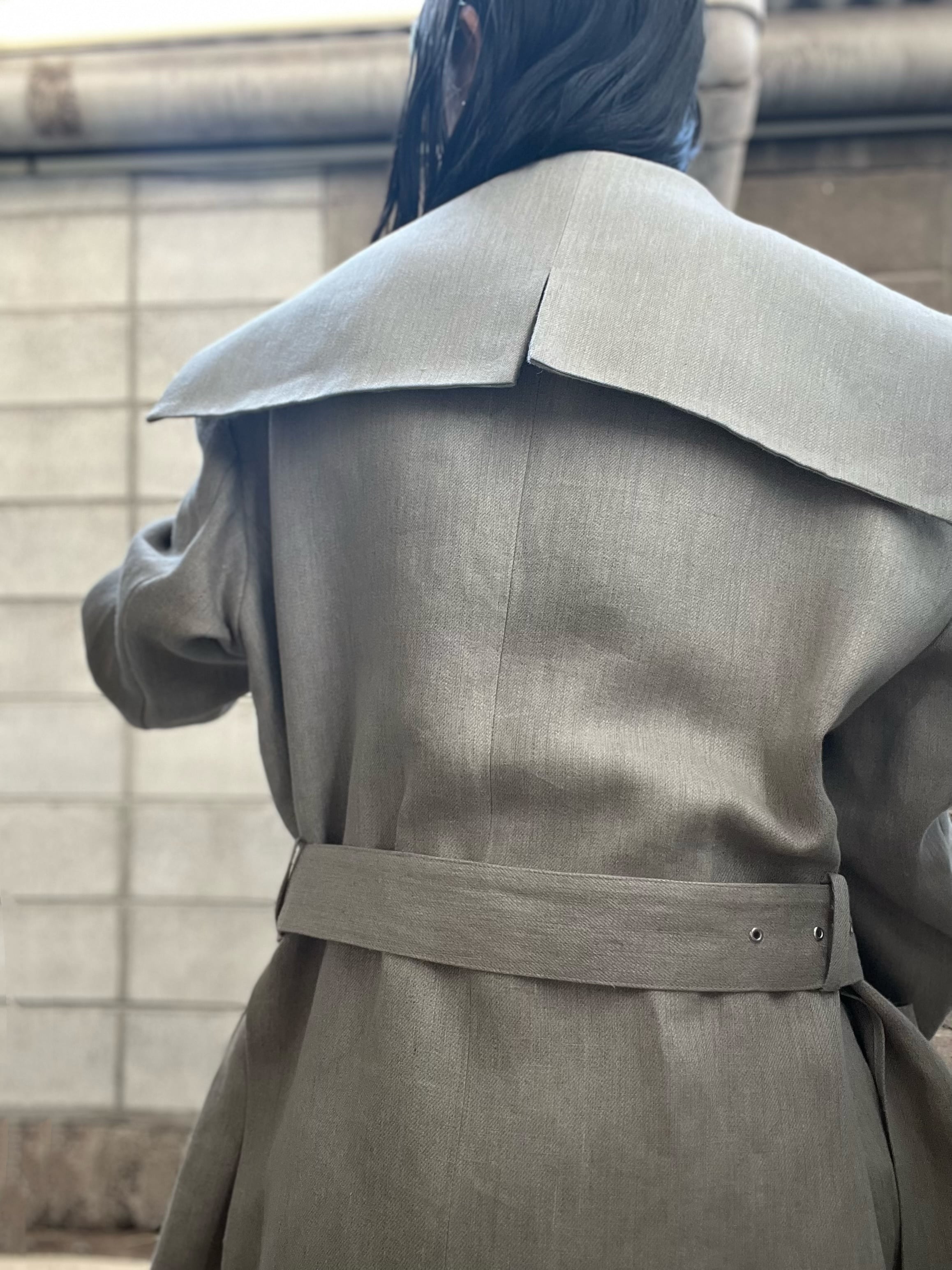 背裏にもキュプラ裏地付き。リネンの特性上、シワになりやすいですが、着こんでいくうちに身体に馴染んでいく素材です。