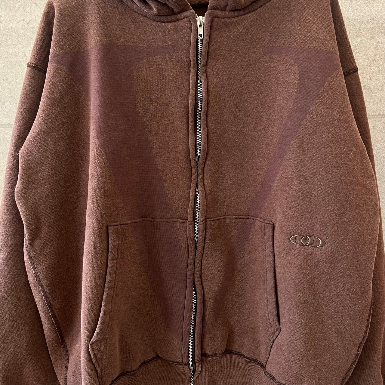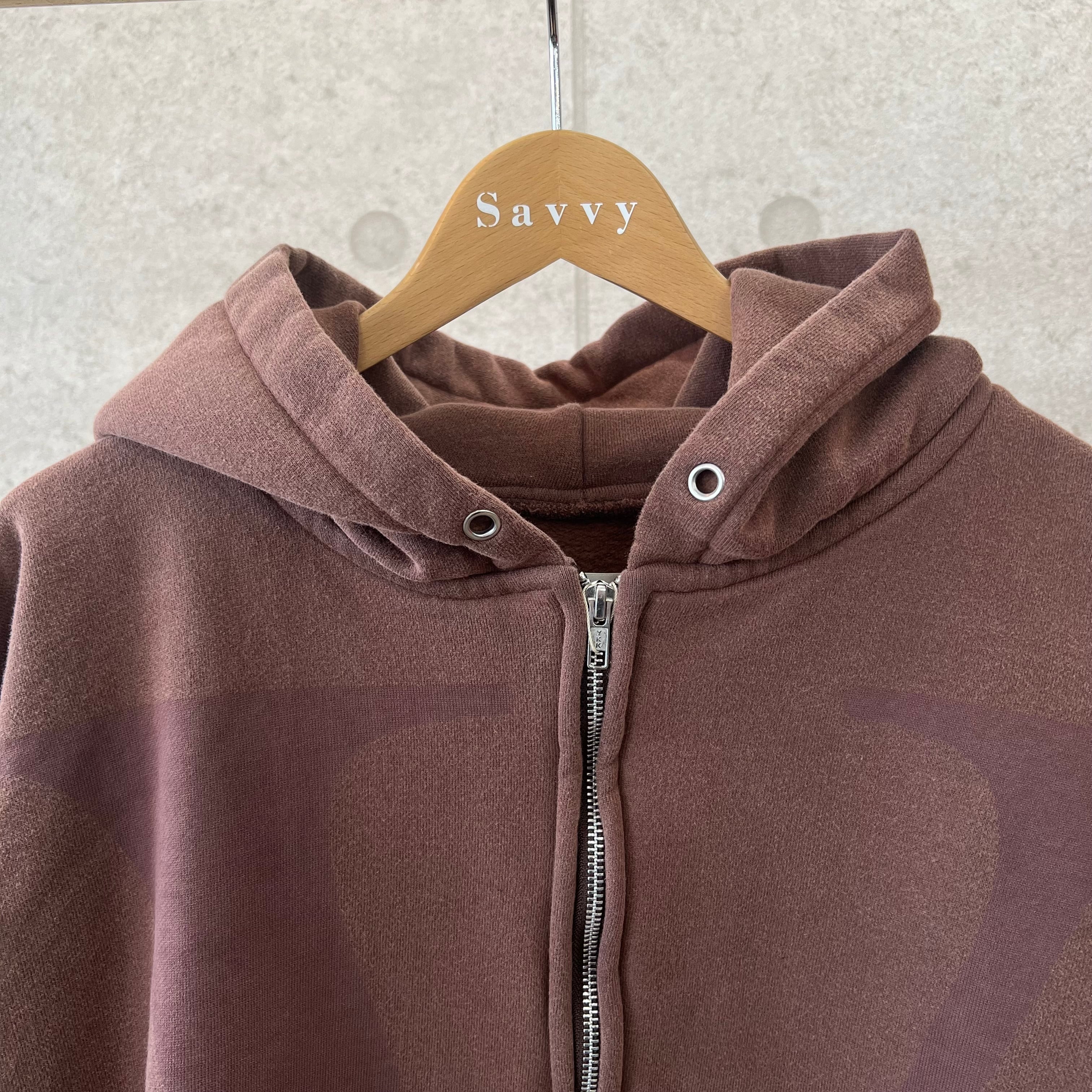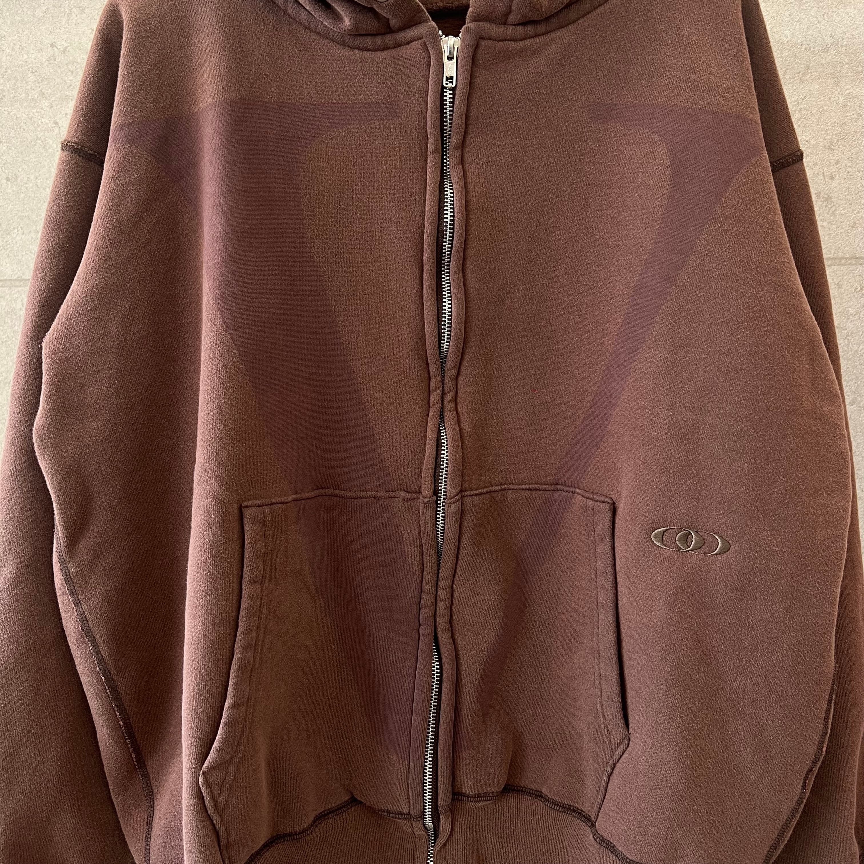 上質な度詰め裏毛のフルジップパーカをベースに新加工を融合させたオススメのアイテムです。「時代感と白茶化」を具現しつつも、新たな手法でサスティナブルを意識したOZ(オズ)加工。フロントは、レーザーを照射する事で生地を焼き削りながら「V」ロゴを表現した仕上がりです。「オズ・レーザー・刺繍」様々な加工を駆使しつつ1つのデザインに落とし込んだVOOの新たな提案となります。