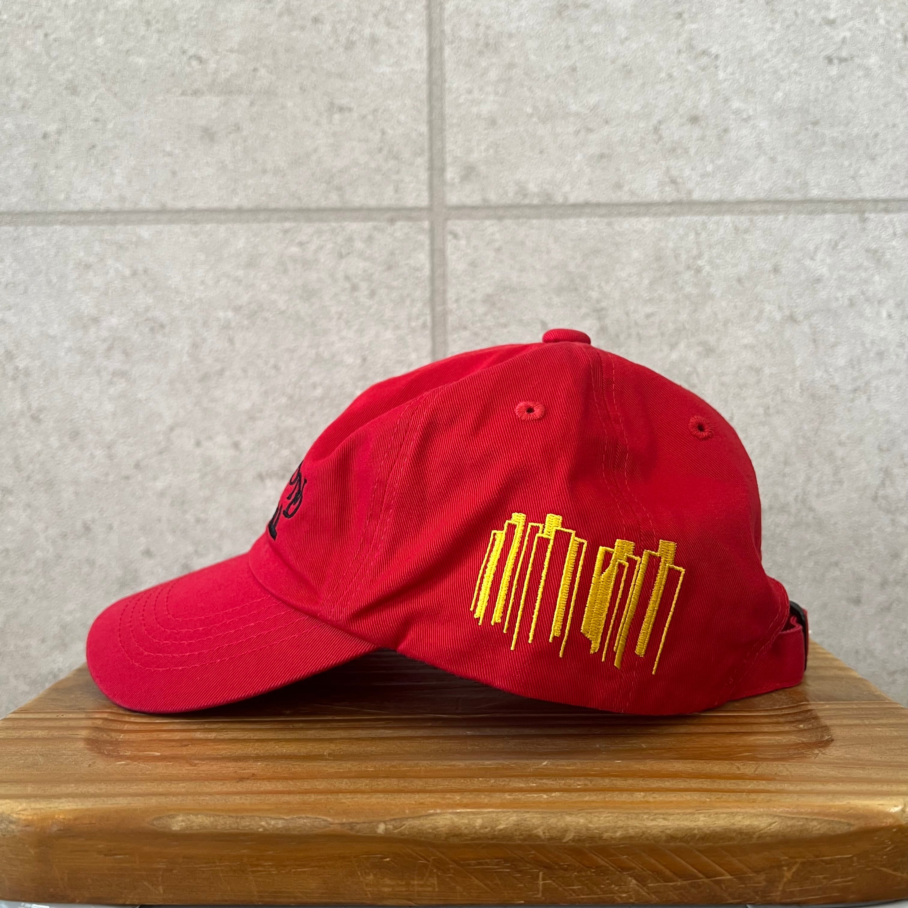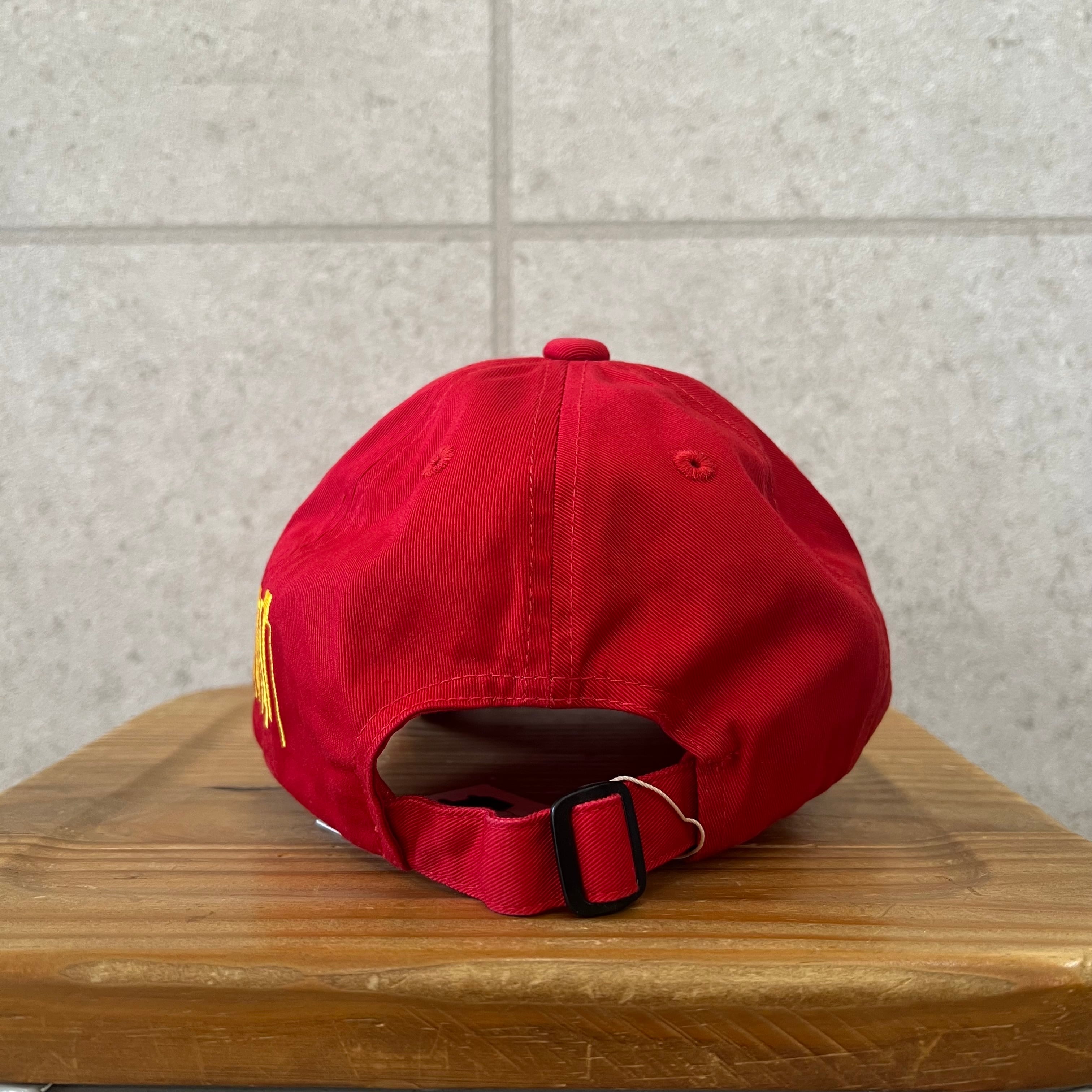 バイオウォッシュ加工が施されたボールキャップをベースに、フロントとサイドの大きめの刺繍が鎮座した仕上がり。パロディネタが詰まった愛嬌のあるロゴが特徴となったアイテムです。sizeはフリー。バイオウォッシュ加工の為、色の落ち方に多少の個体差があります。