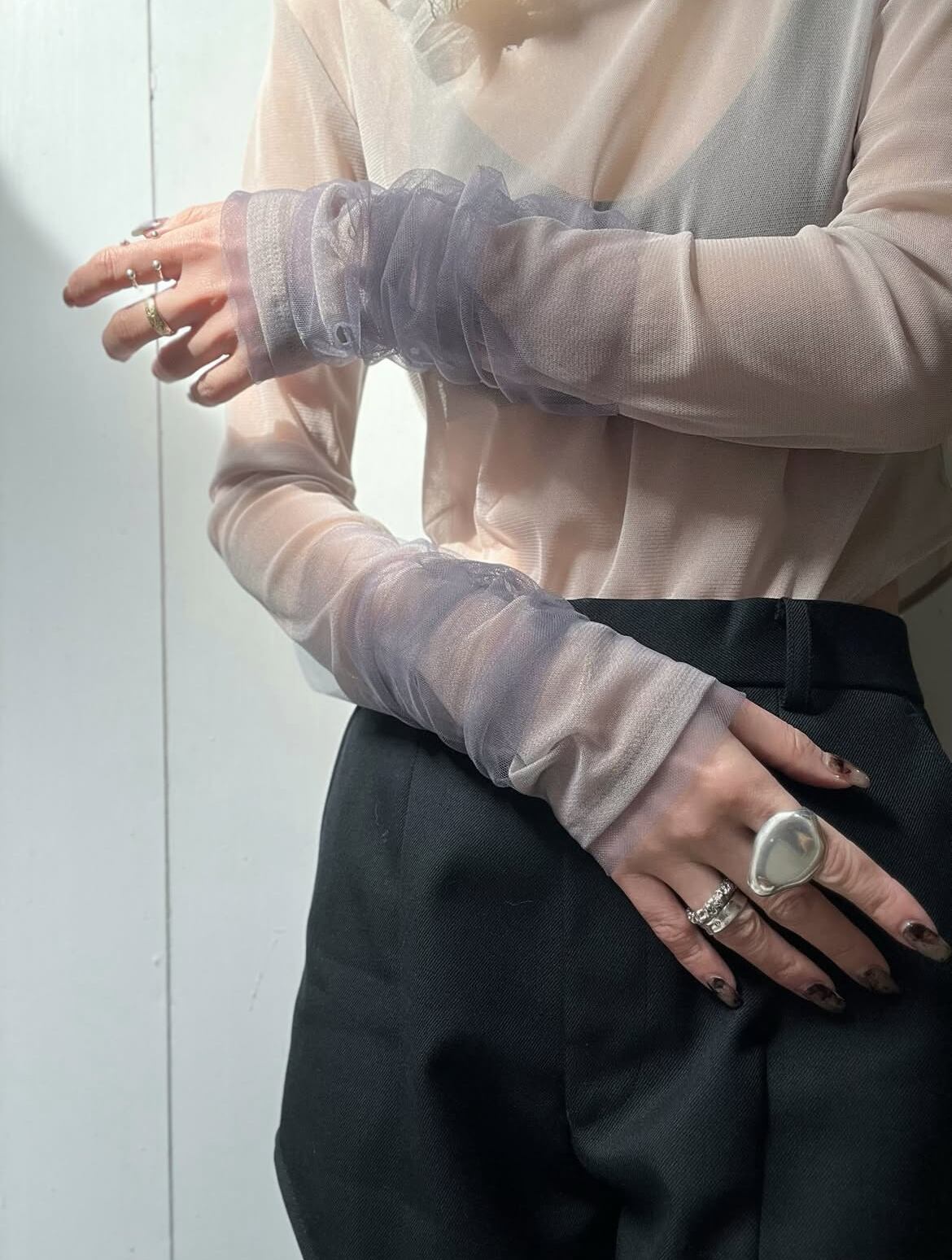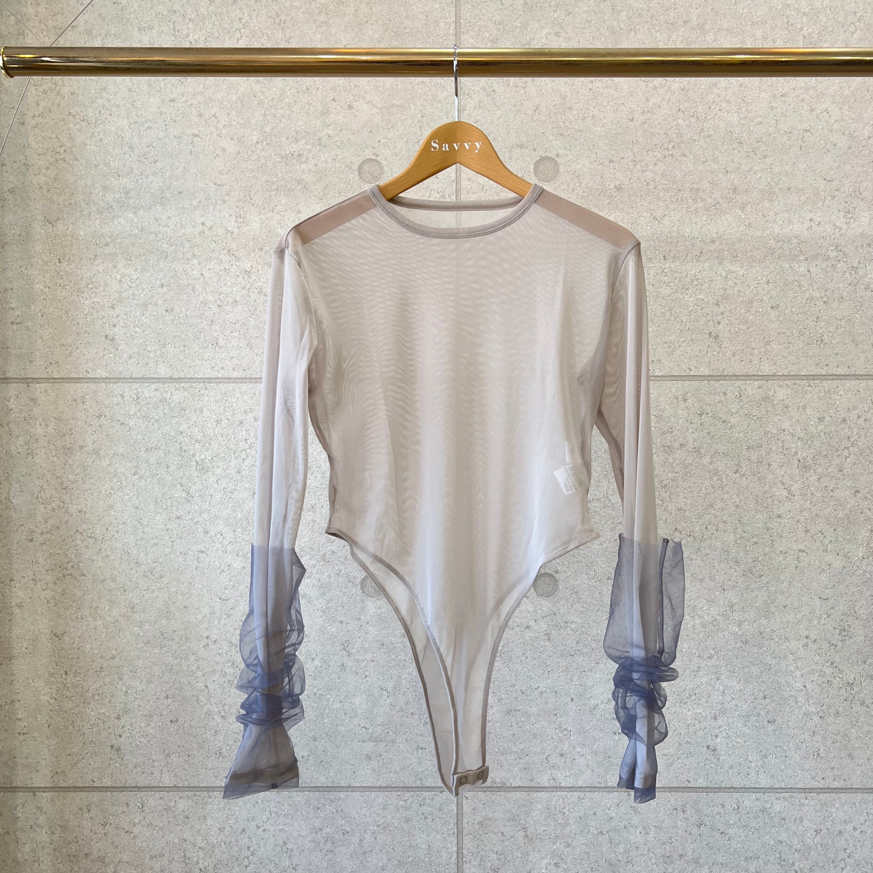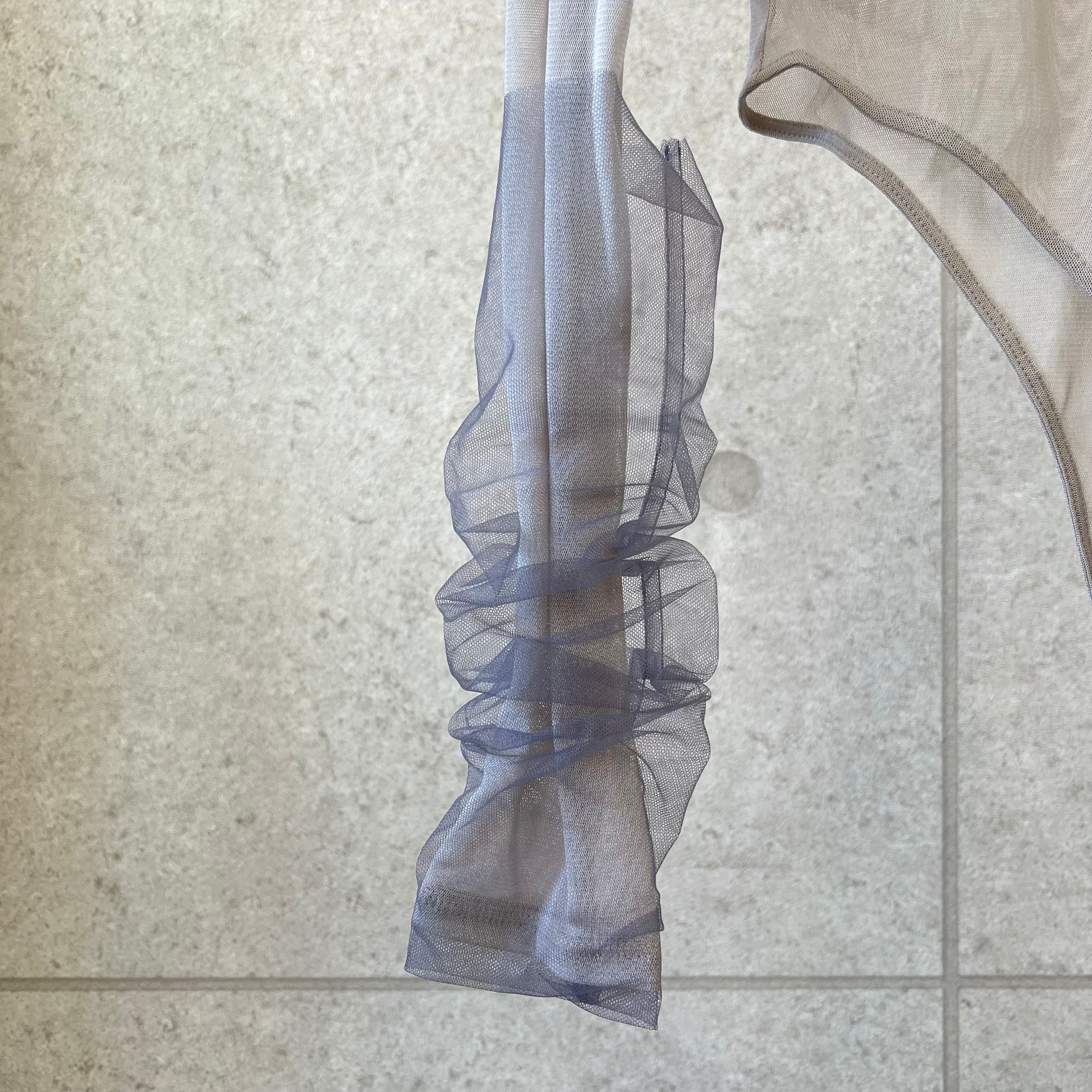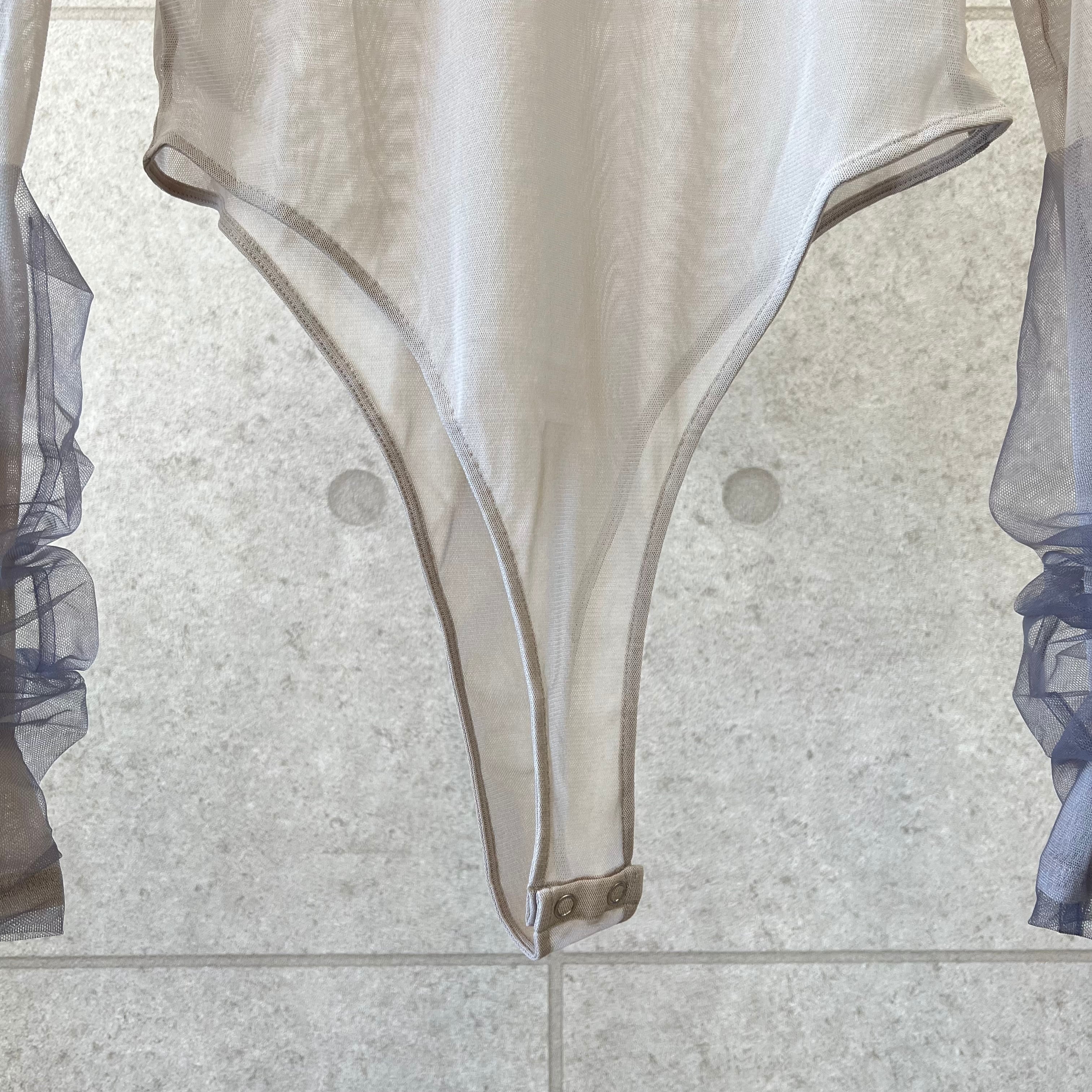 MARGE – Tulle bicolor sleeve body suits (beige×gray)