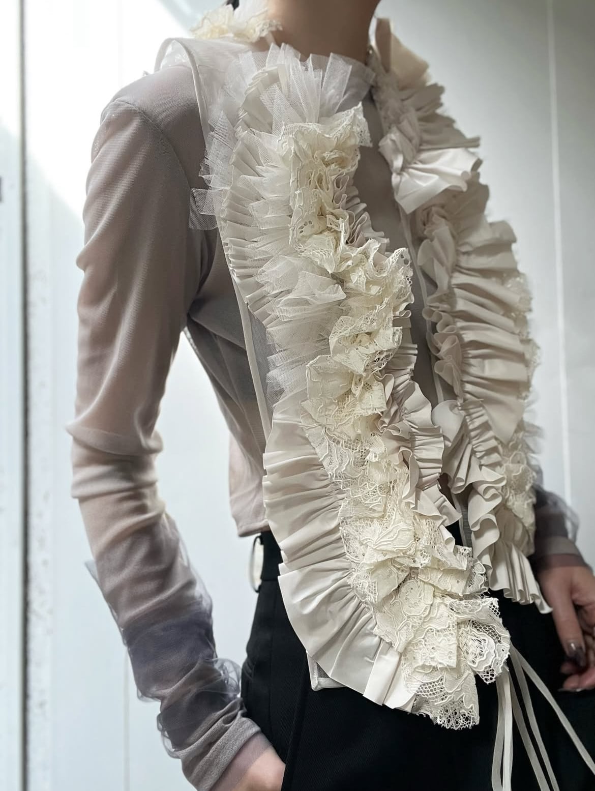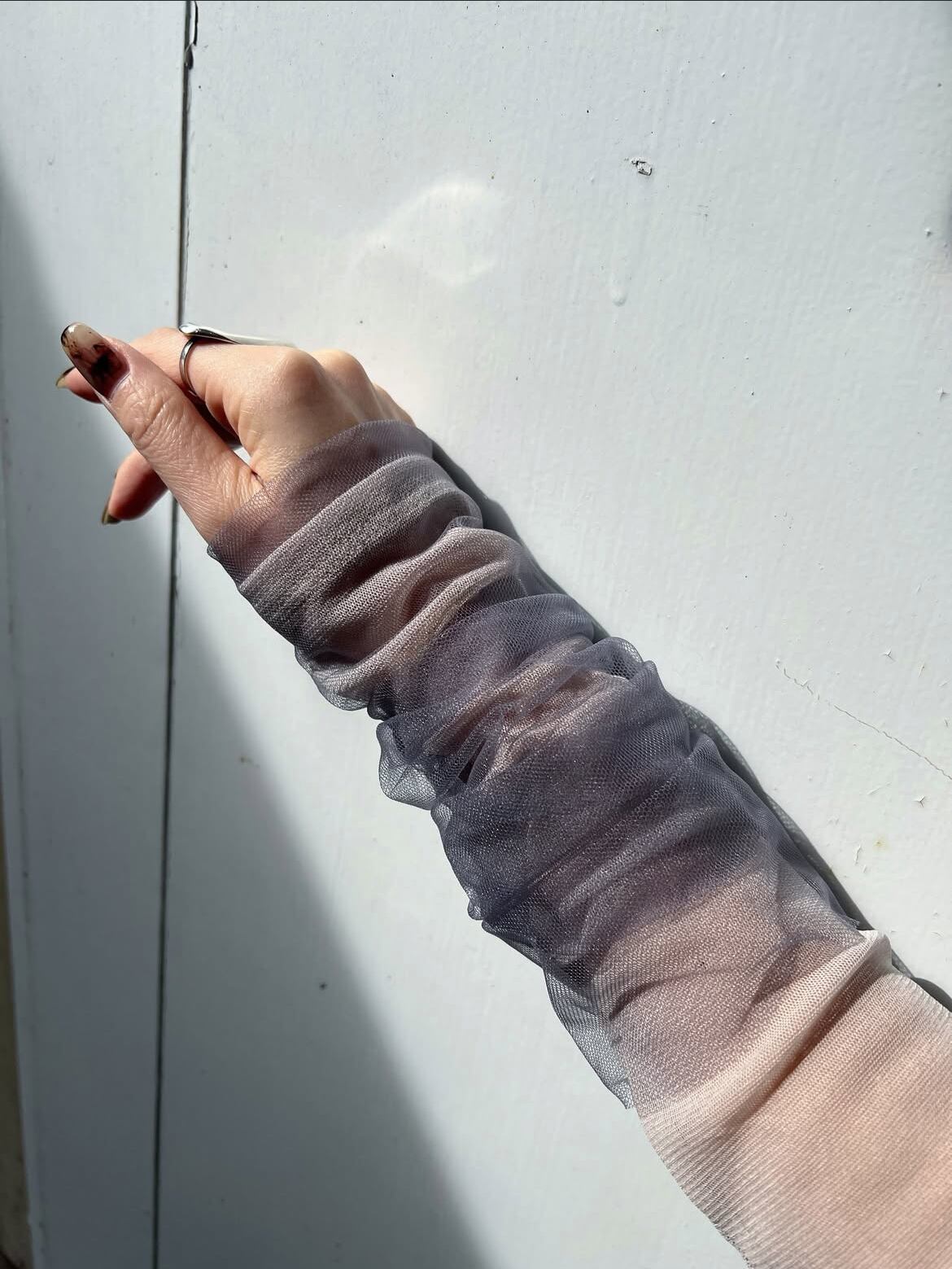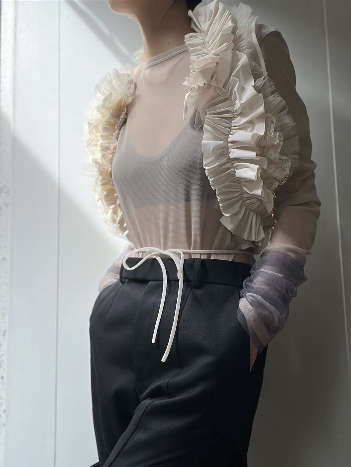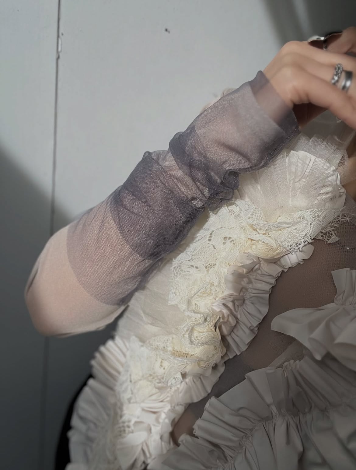 MARGE – Tulle bicolor sleeve body suits (beige×gray)