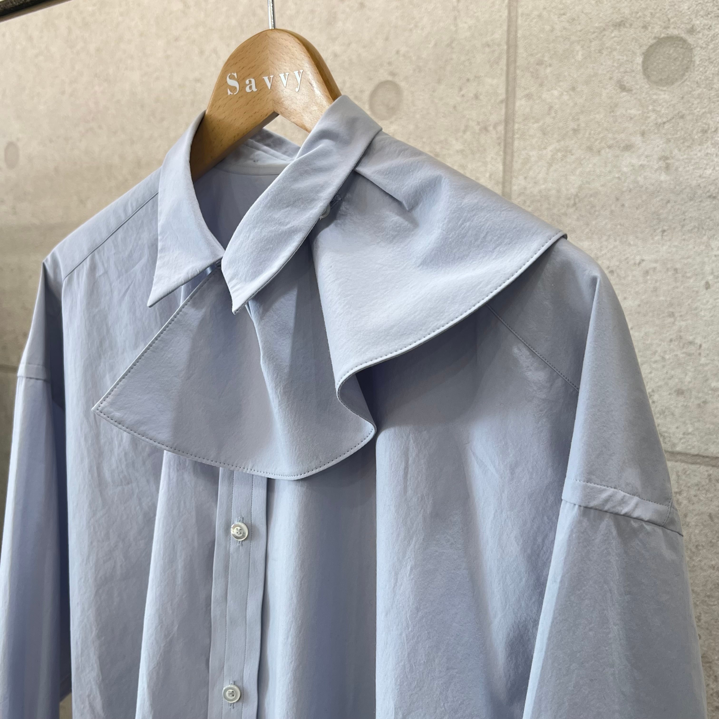 MARGE – Cotton ruffle long sleeve shirt (light blue)