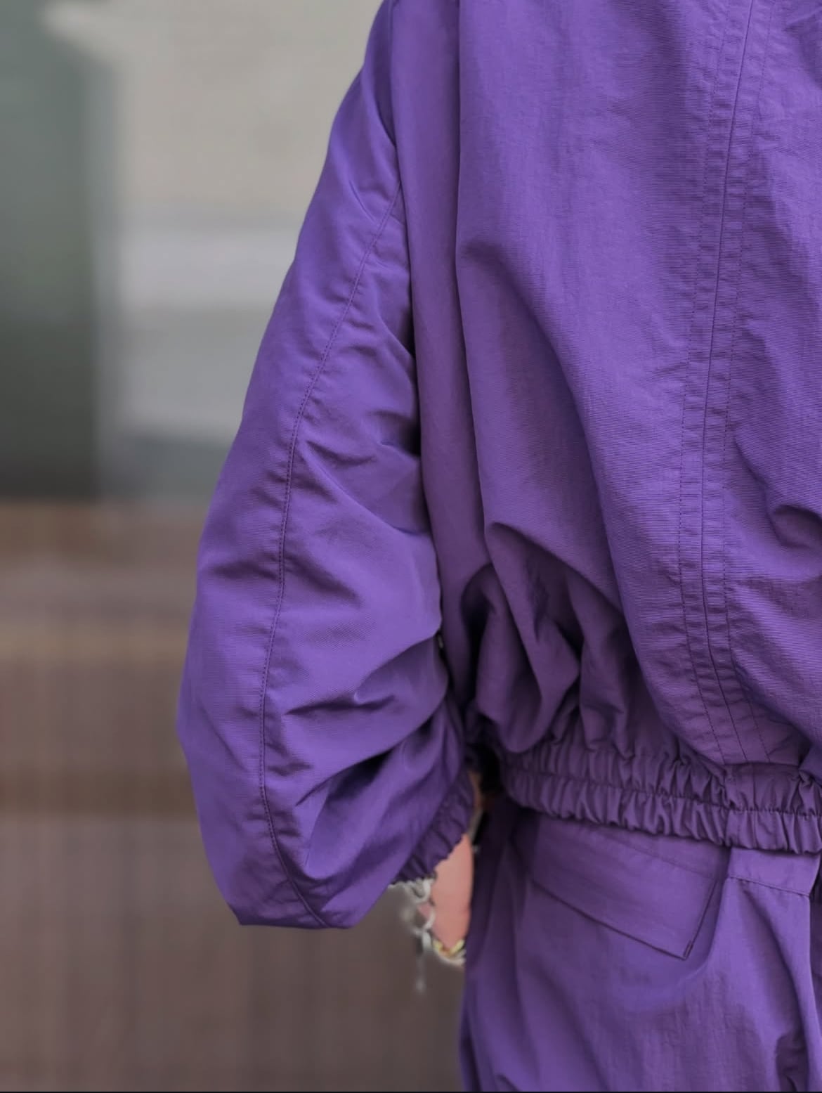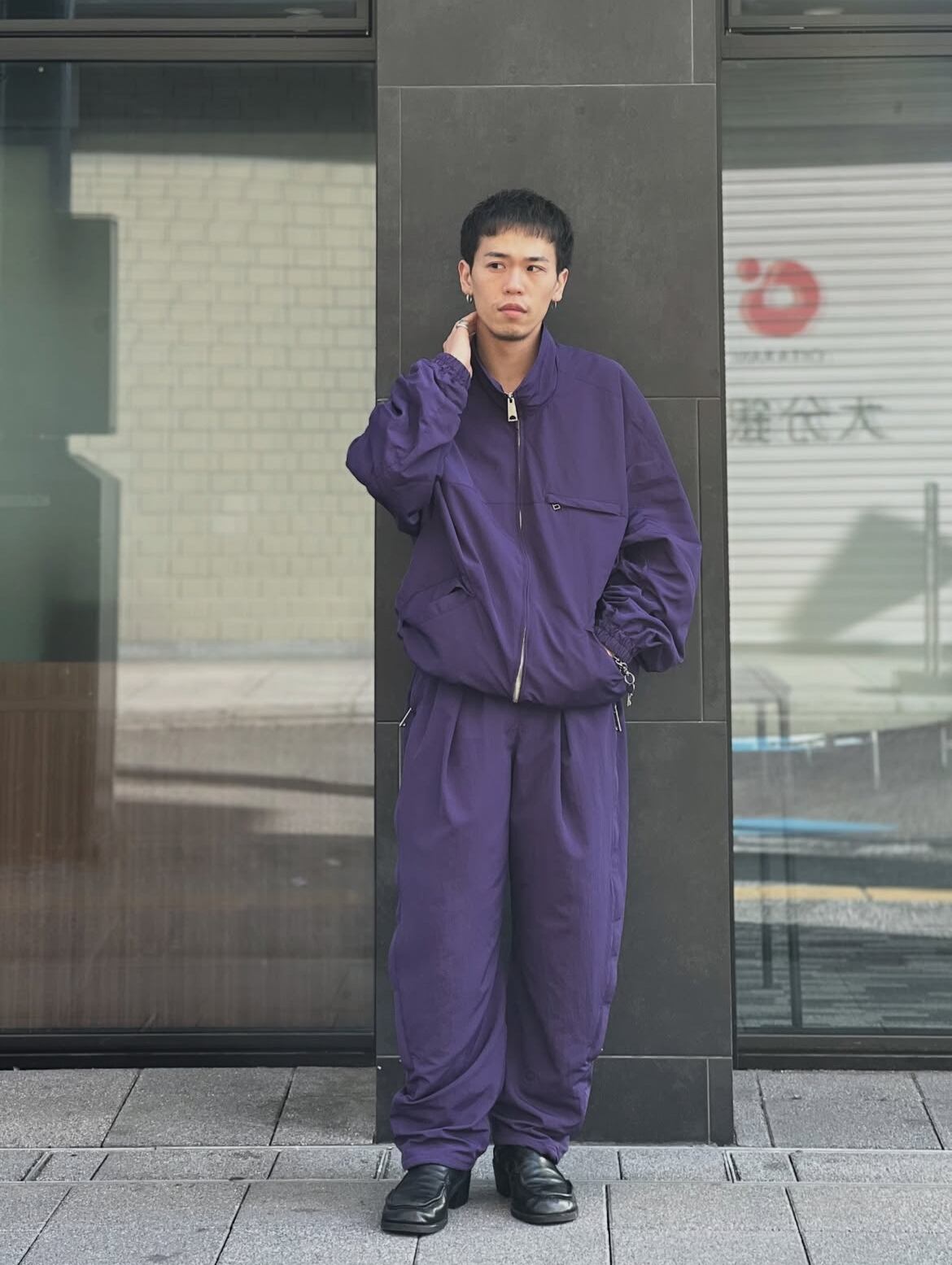 光沢としなやかさが特徴で、あえて尾州産地で染めること(ウールの産地の尾州で合繊を染める)で独特なシワと柔らかな雰囲気を出しております。