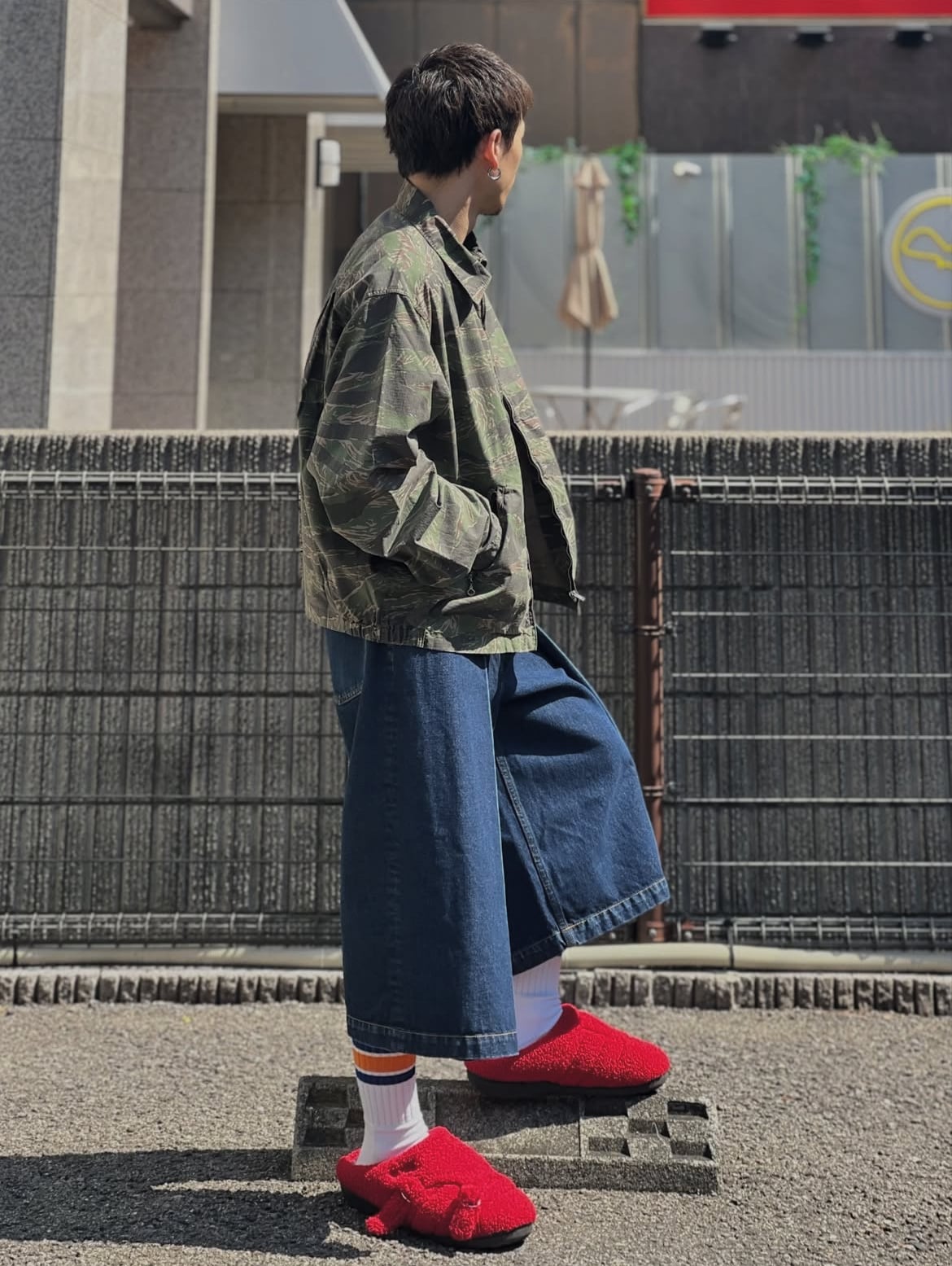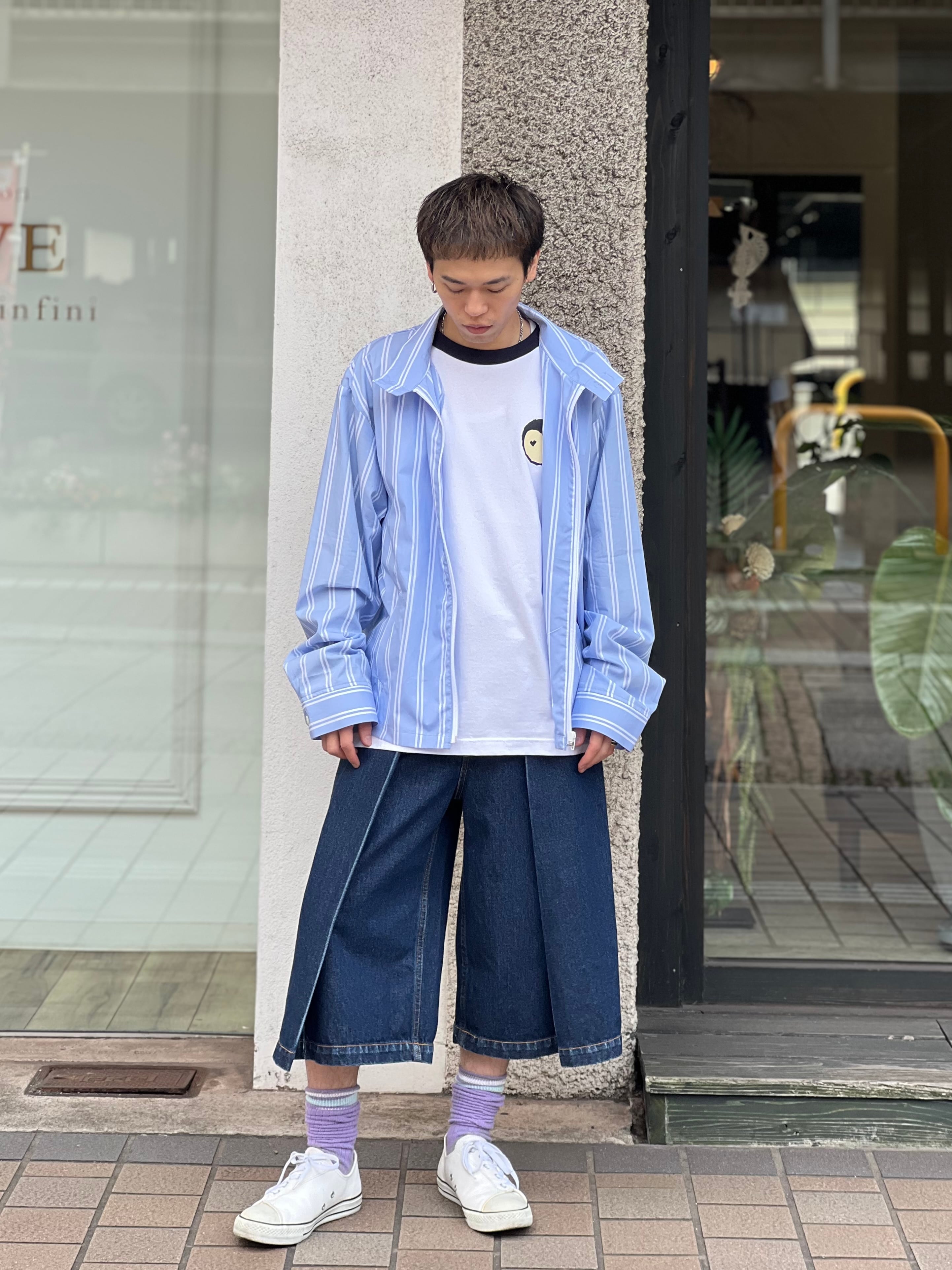 袴を想起させる深いインタックが特徴のデニムショーツ。