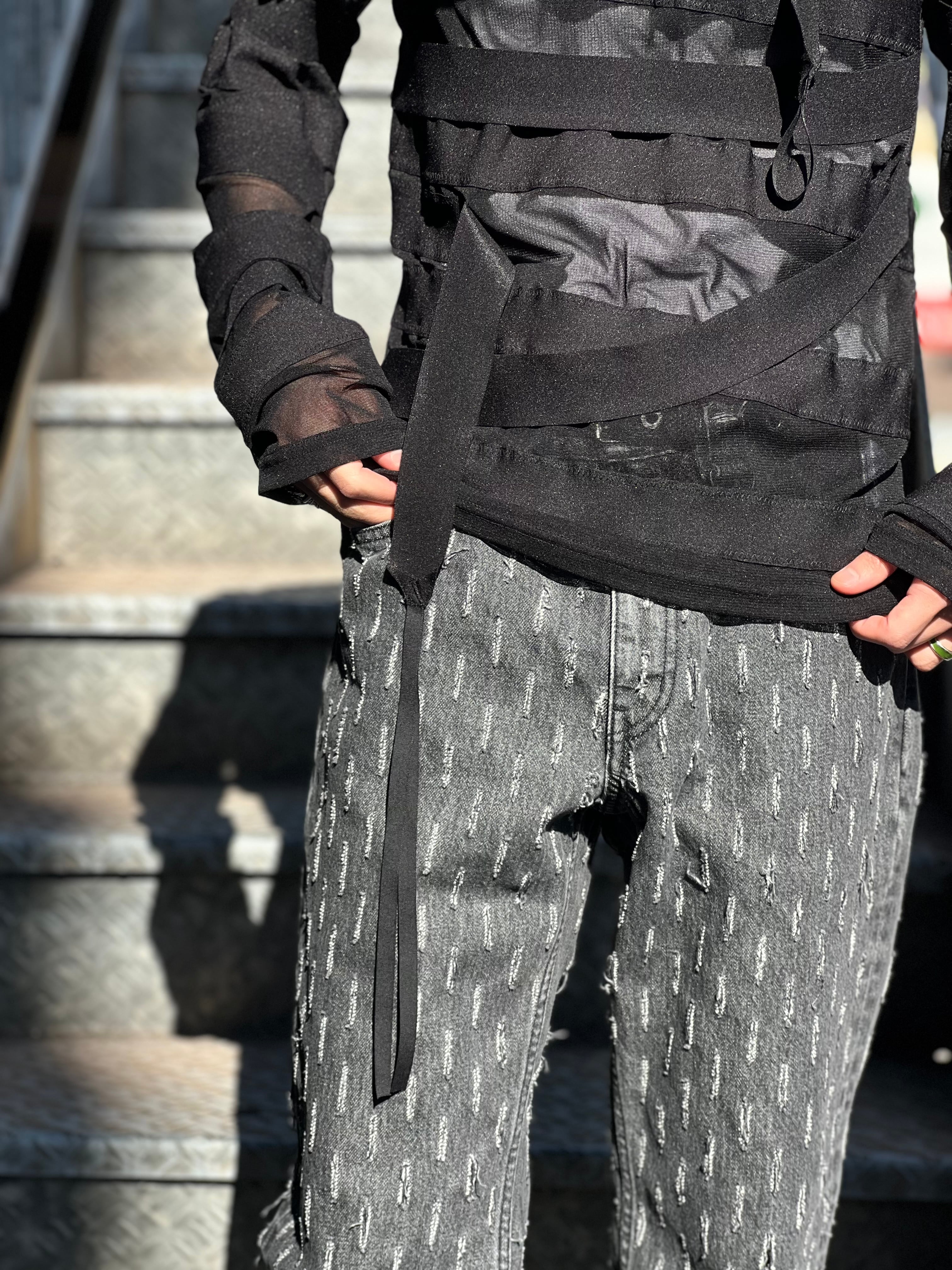 JOHNLAWRENCESULLIVAN – SLASHED DENIM PANTS (BLACK)