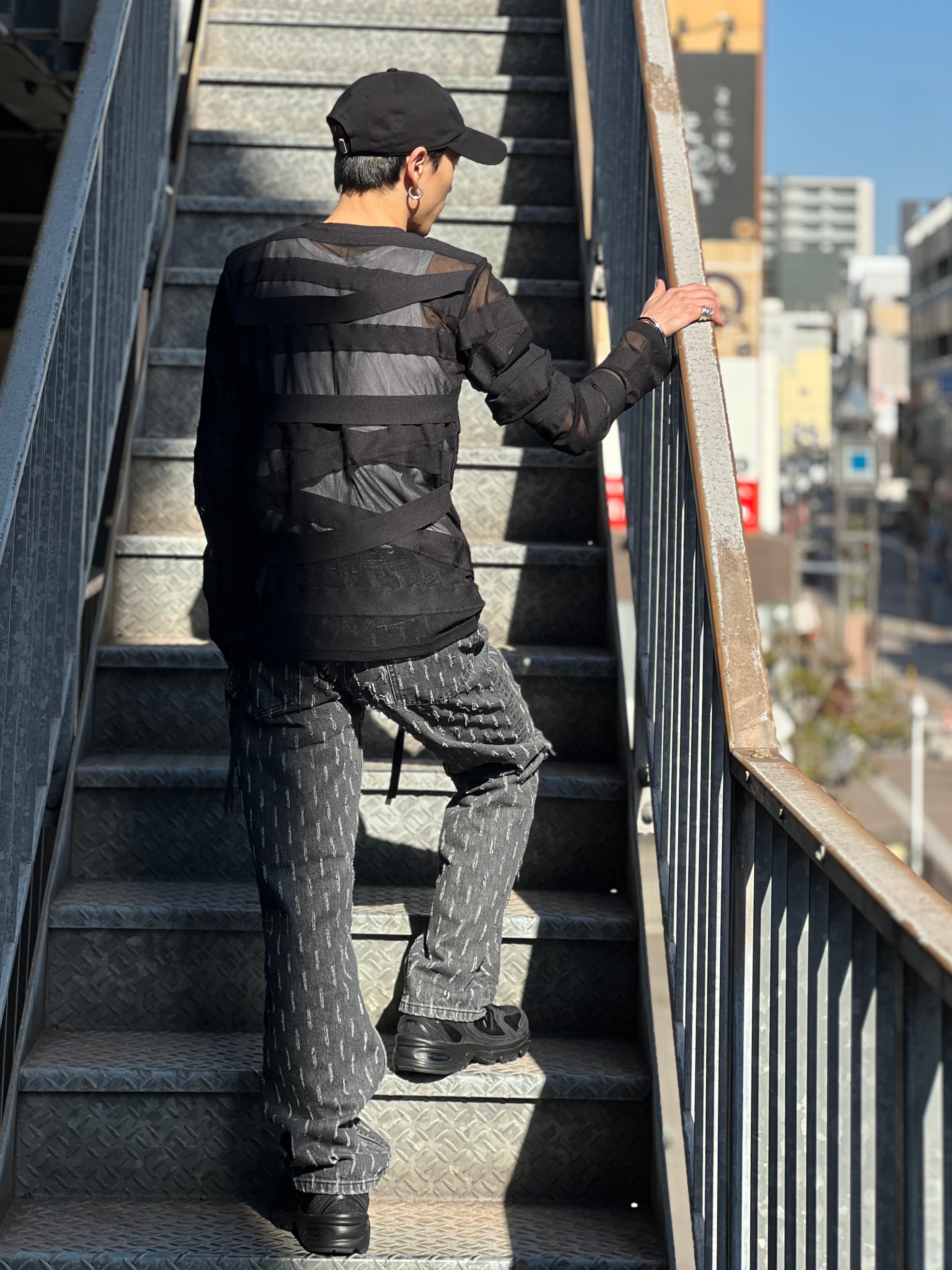 キャンバスを切り裂き、絵画に”空間”を持ち込んだ、アルゼンチン出身の美術家ルチオ・フォンタナから着想を得た、ナイフカット5ポケットデニムパンツ。