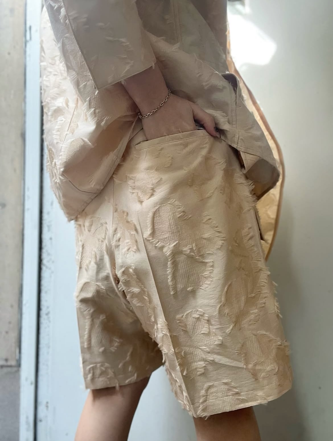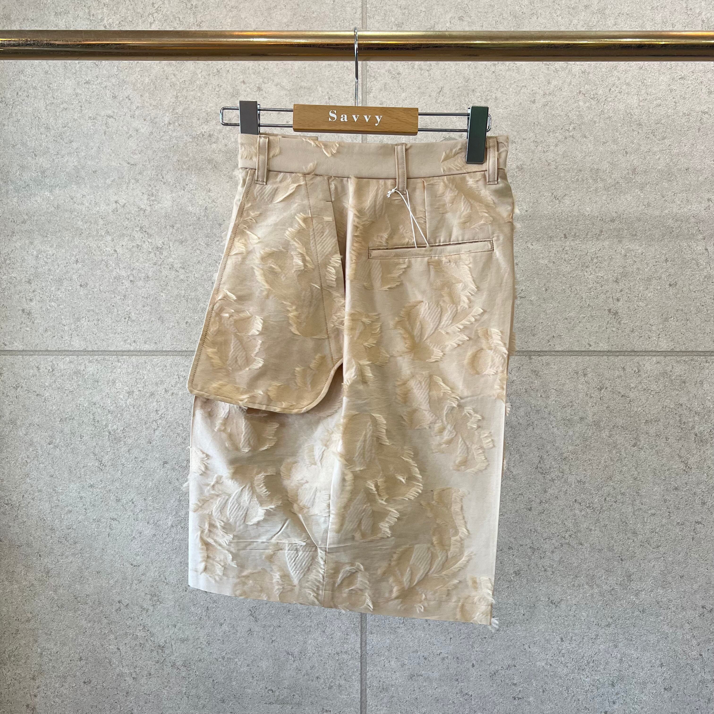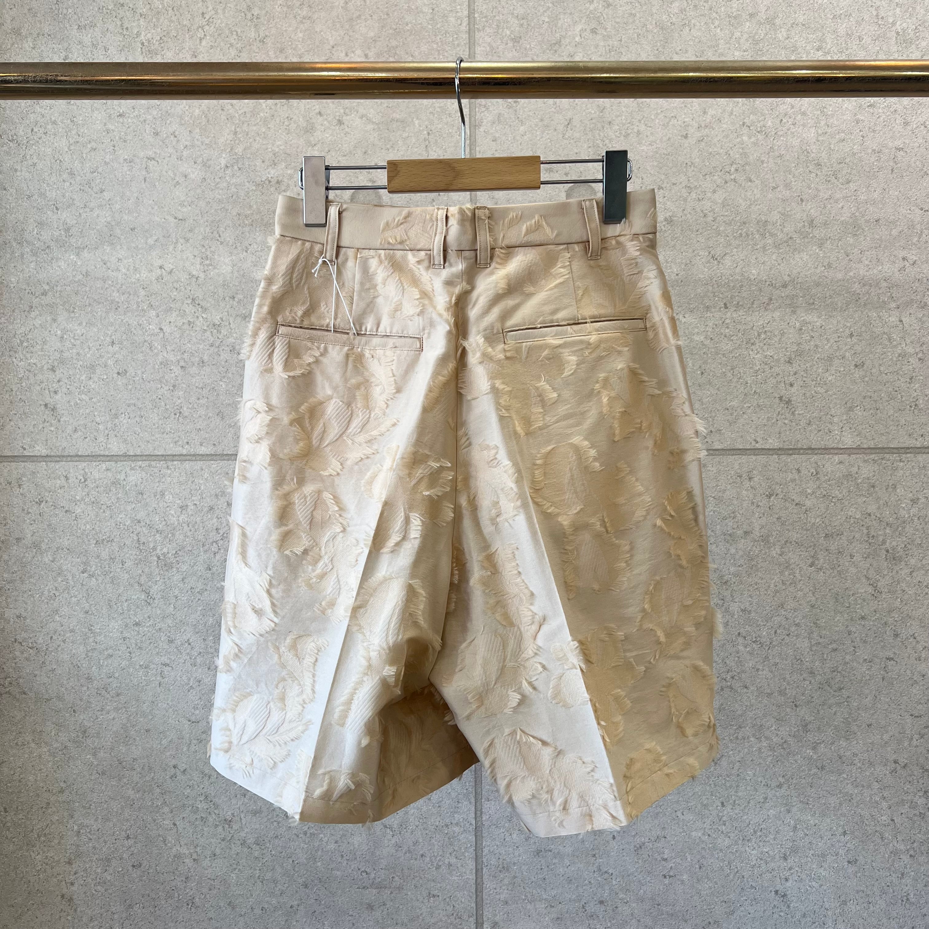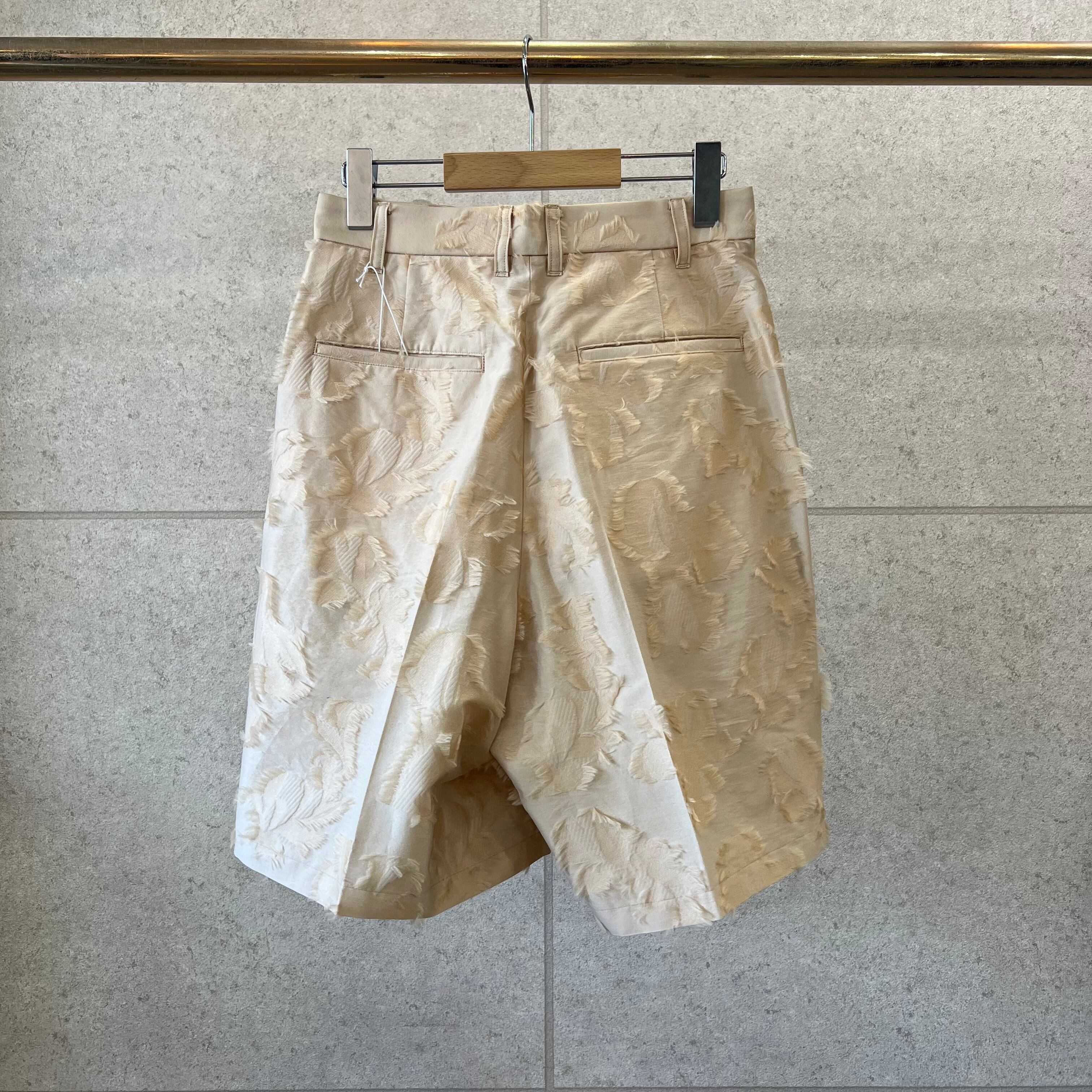 ブランドオリジナルのボタニカルジャガード素材を使用したハーフパンツ。