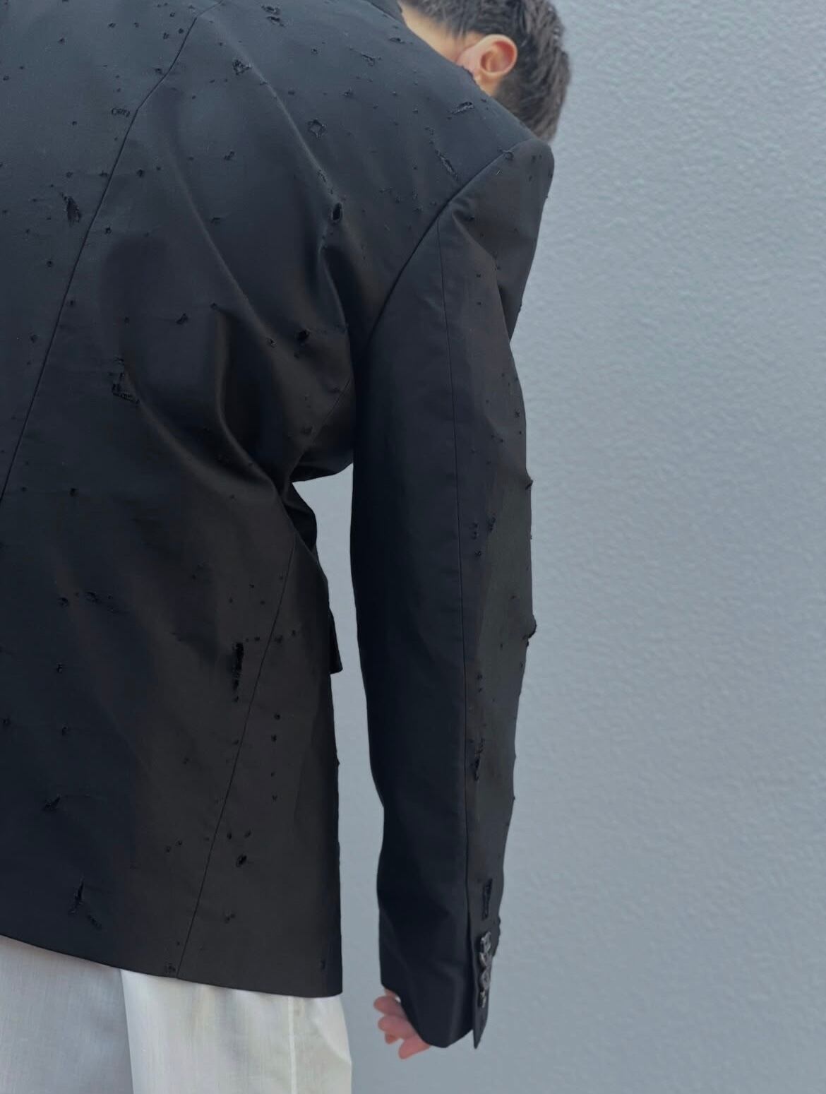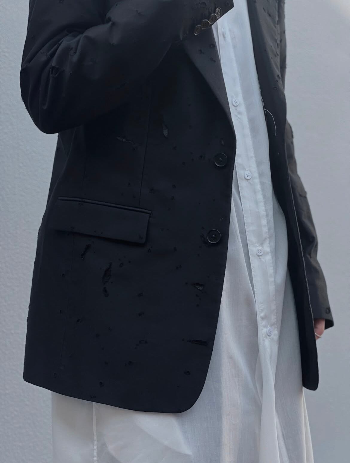 DRESSEDUNDRESSED-Sabi Moleskin Cotton Single-Breasted Blazer (BLACK)