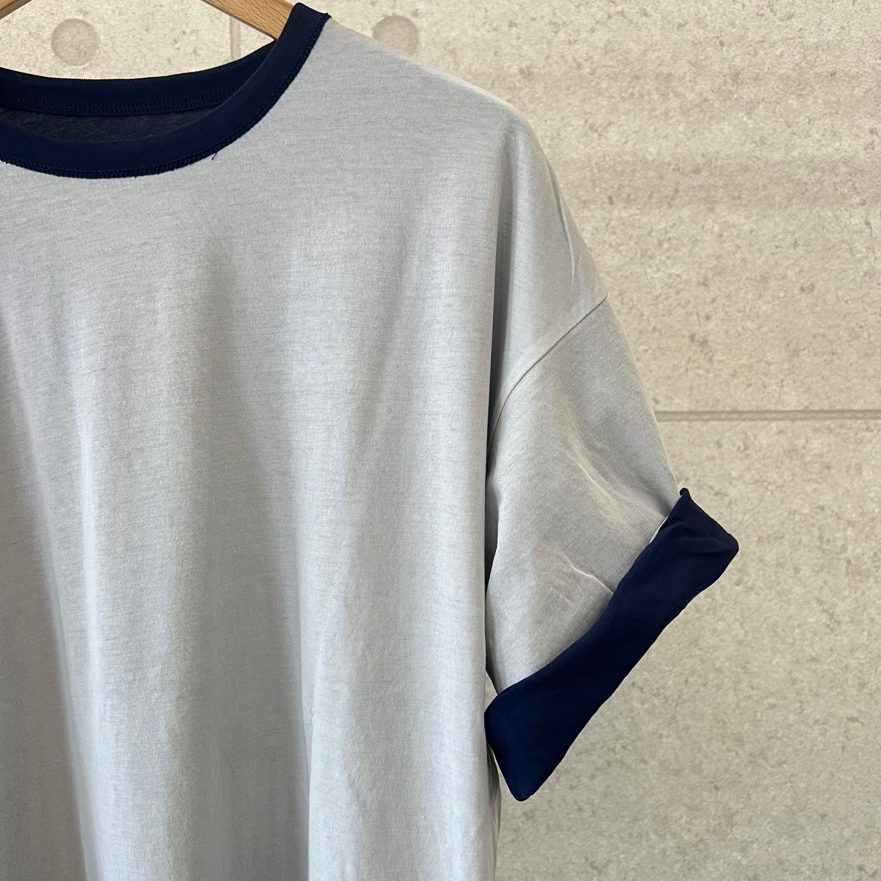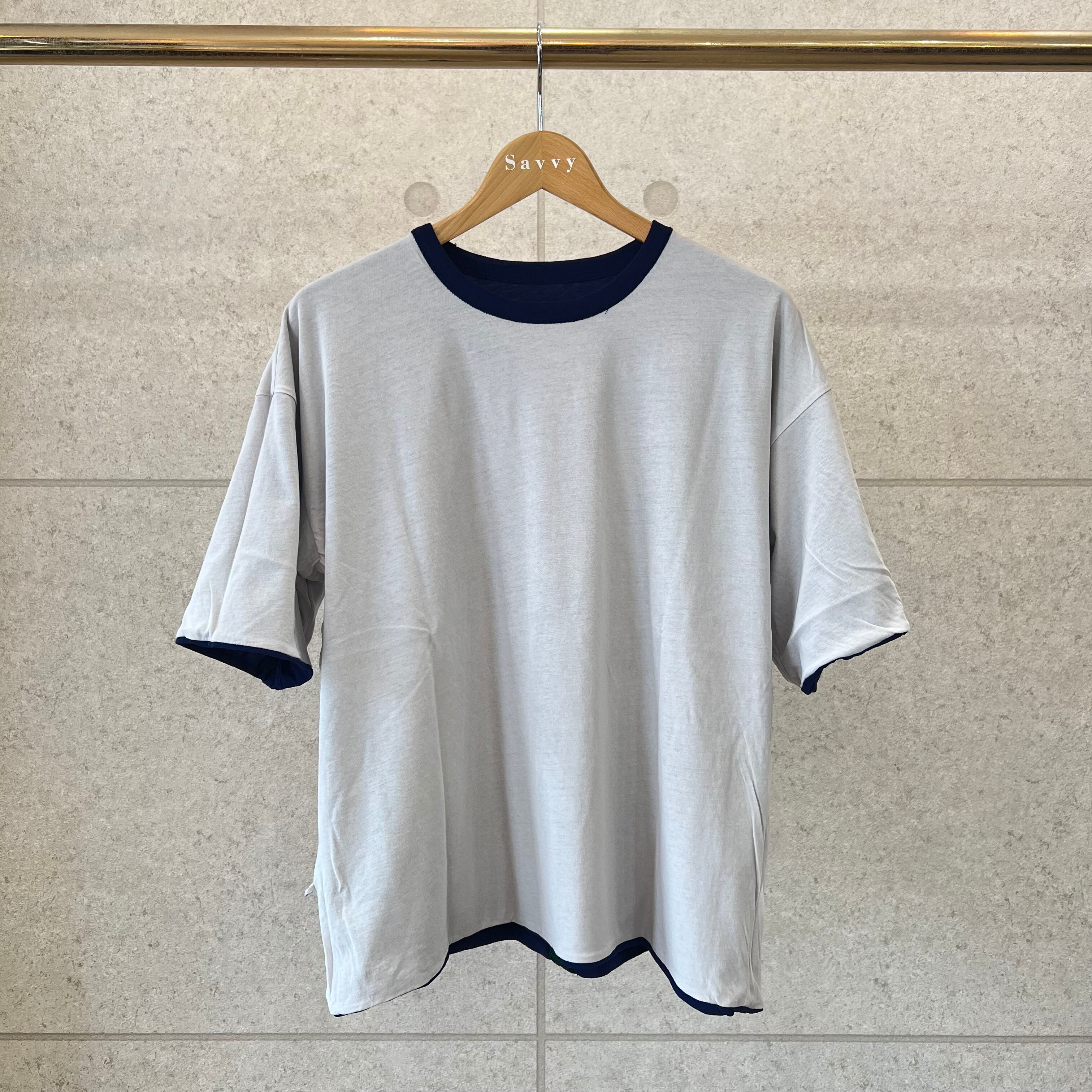 薄手の強撚糸のコットン天竺をリバーシブル仕様にしたTシャツ。緩めのシルエット。