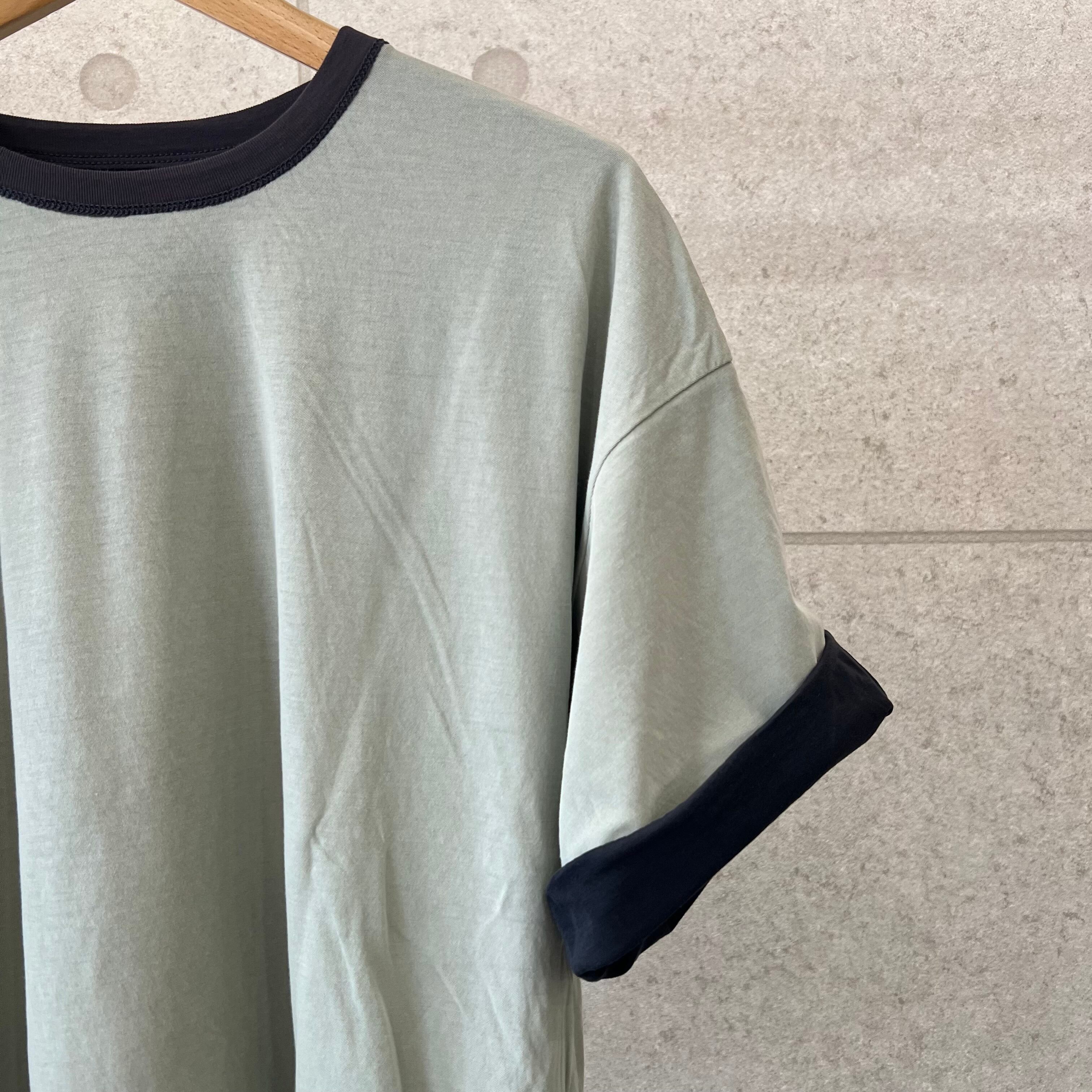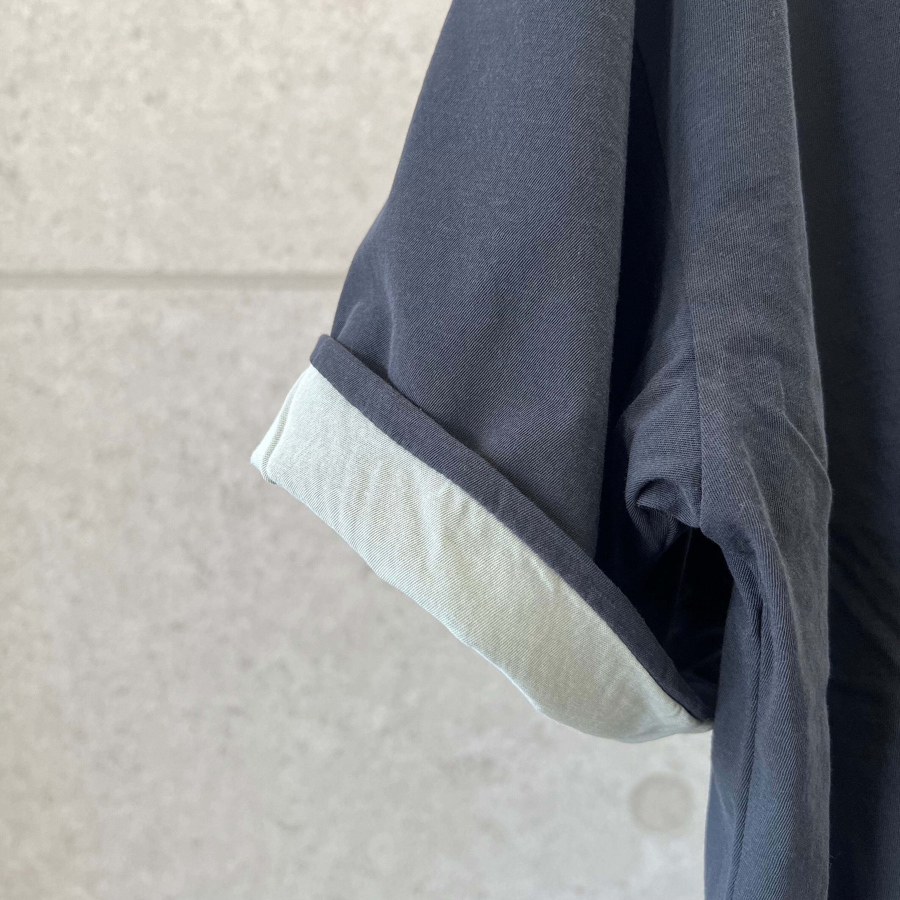 薄手の強撚糸のコットン天竺をリバーシブル仕様にしたTシャツ。緩めのシルエット。