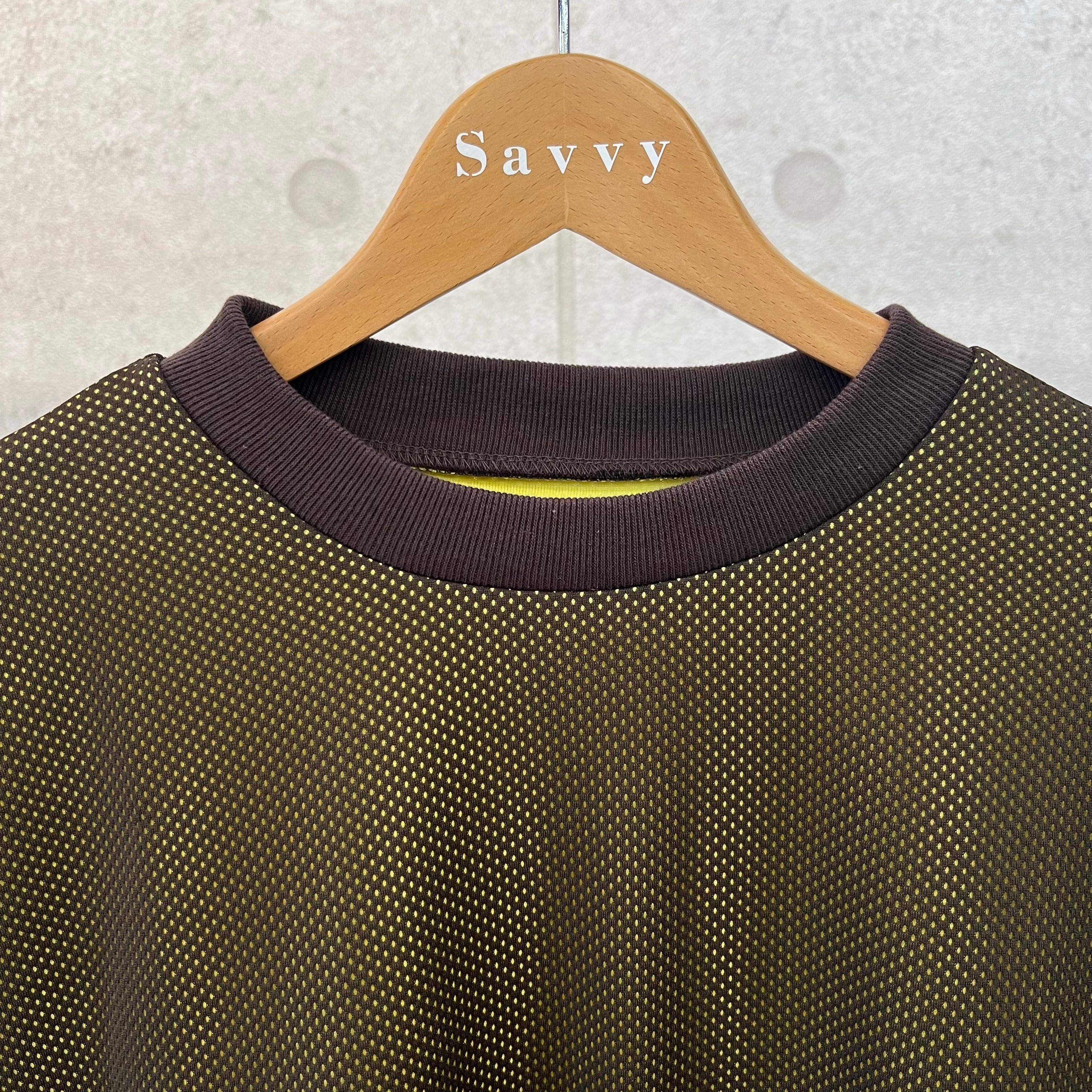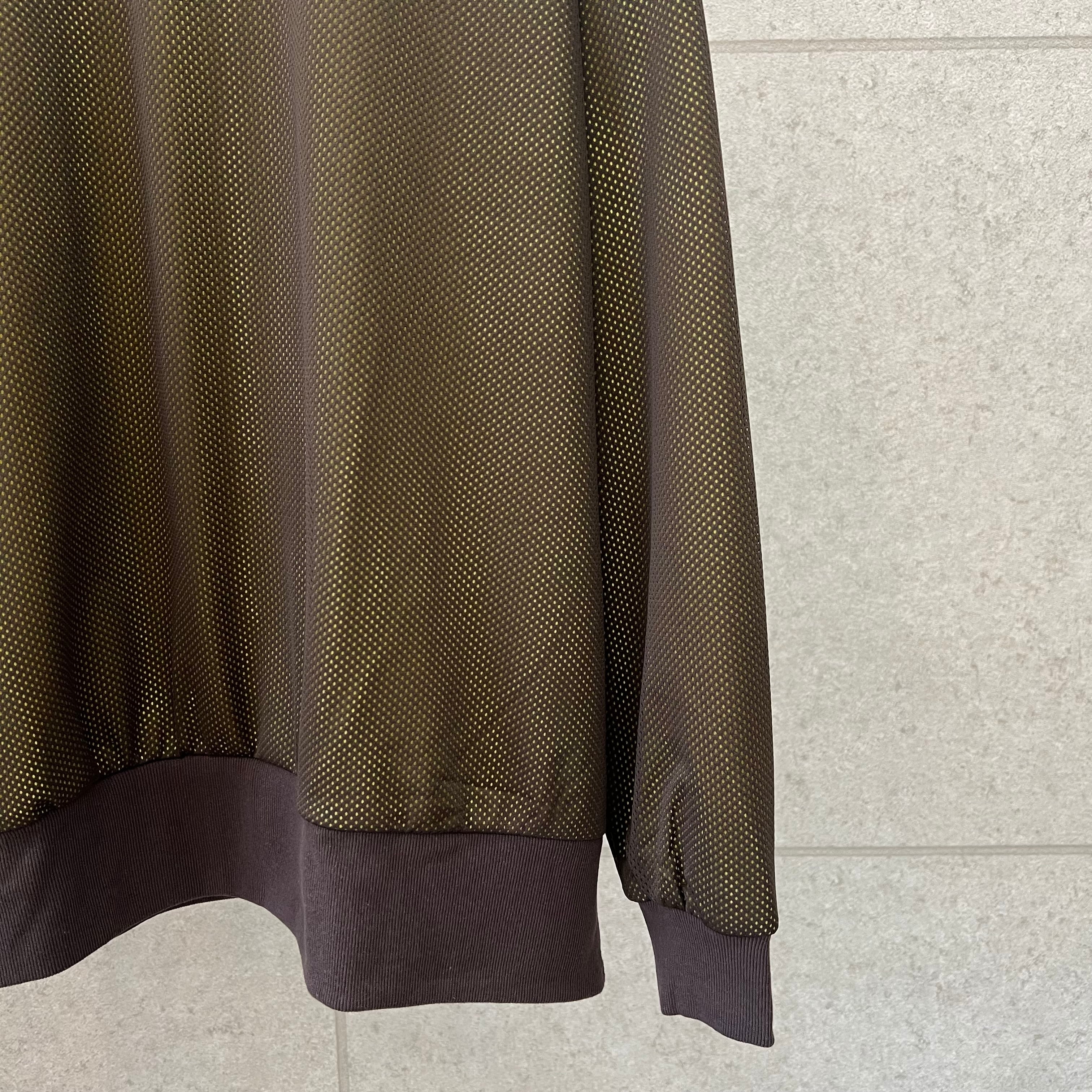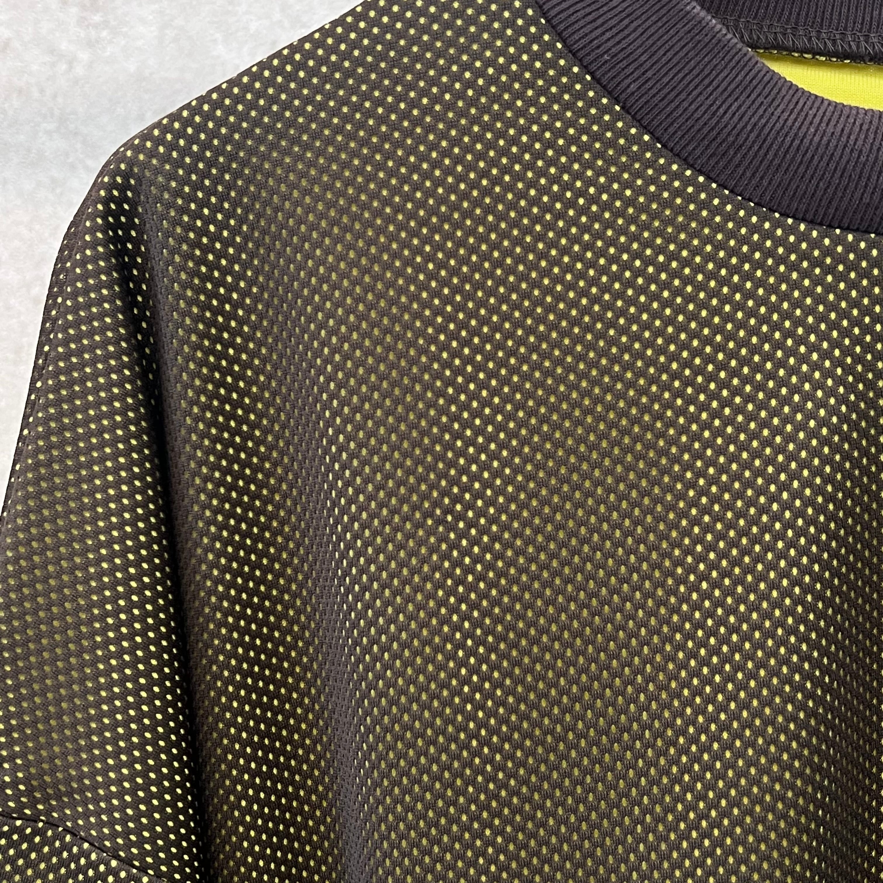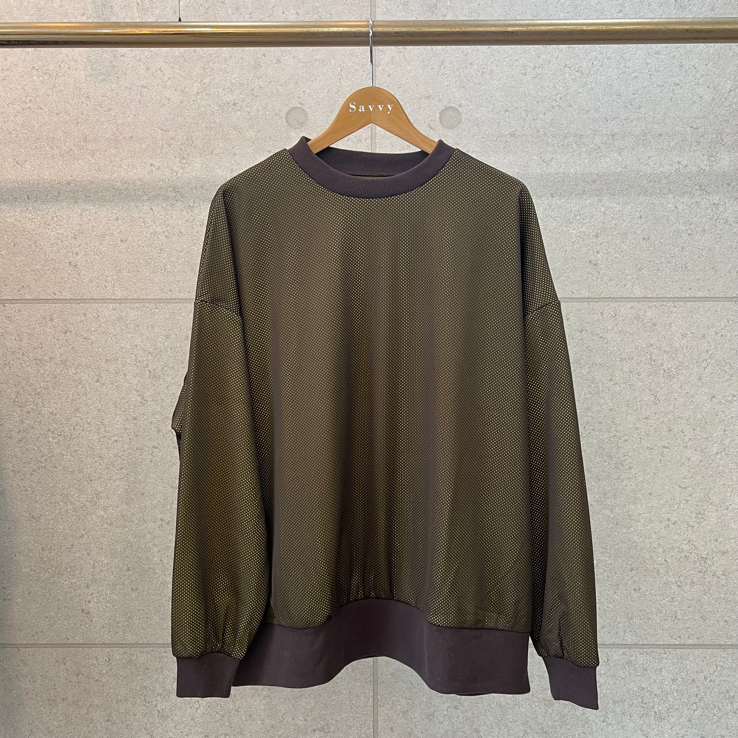 メッシュと天竺を重ねて作成したクルーネックのスウェット型のアイテムです。