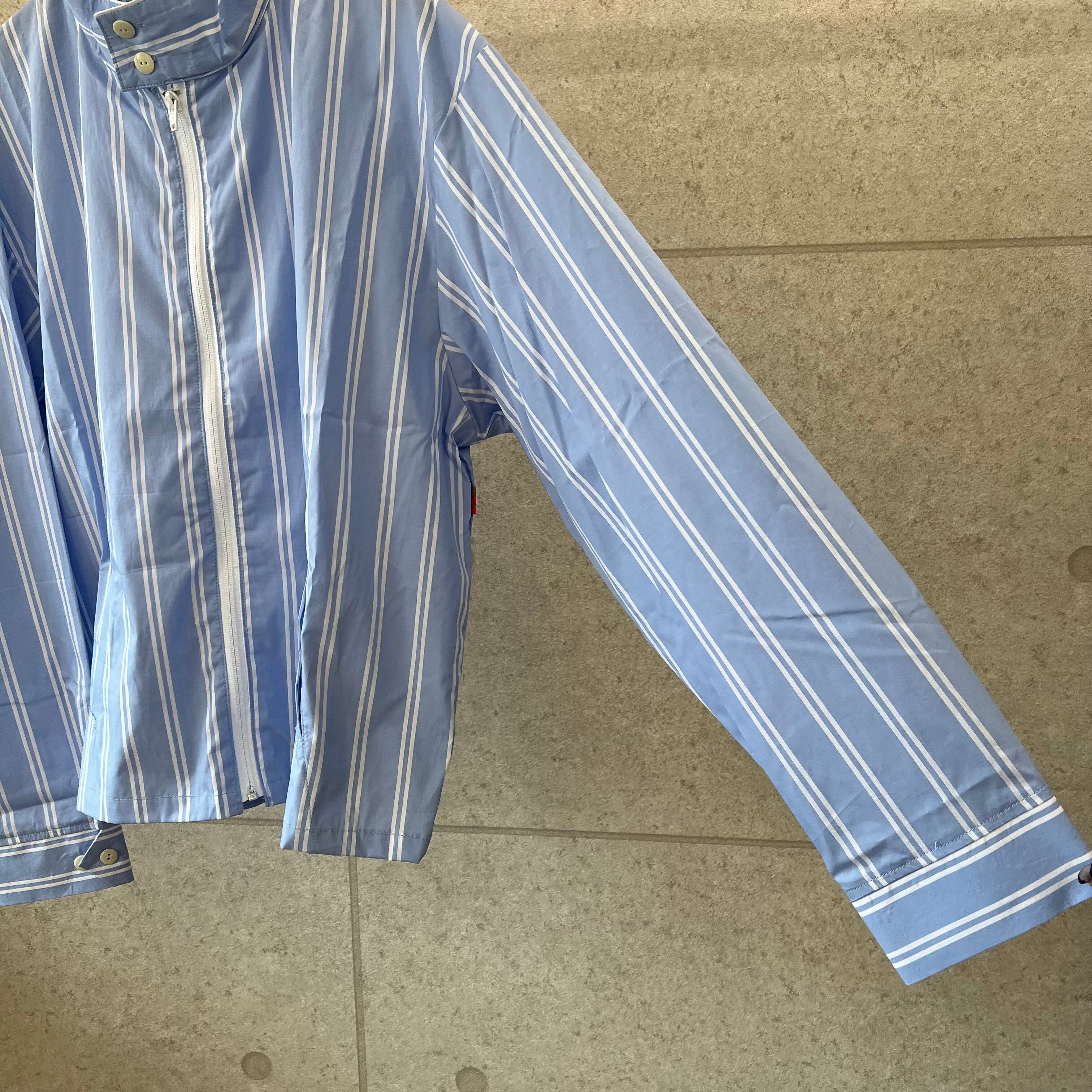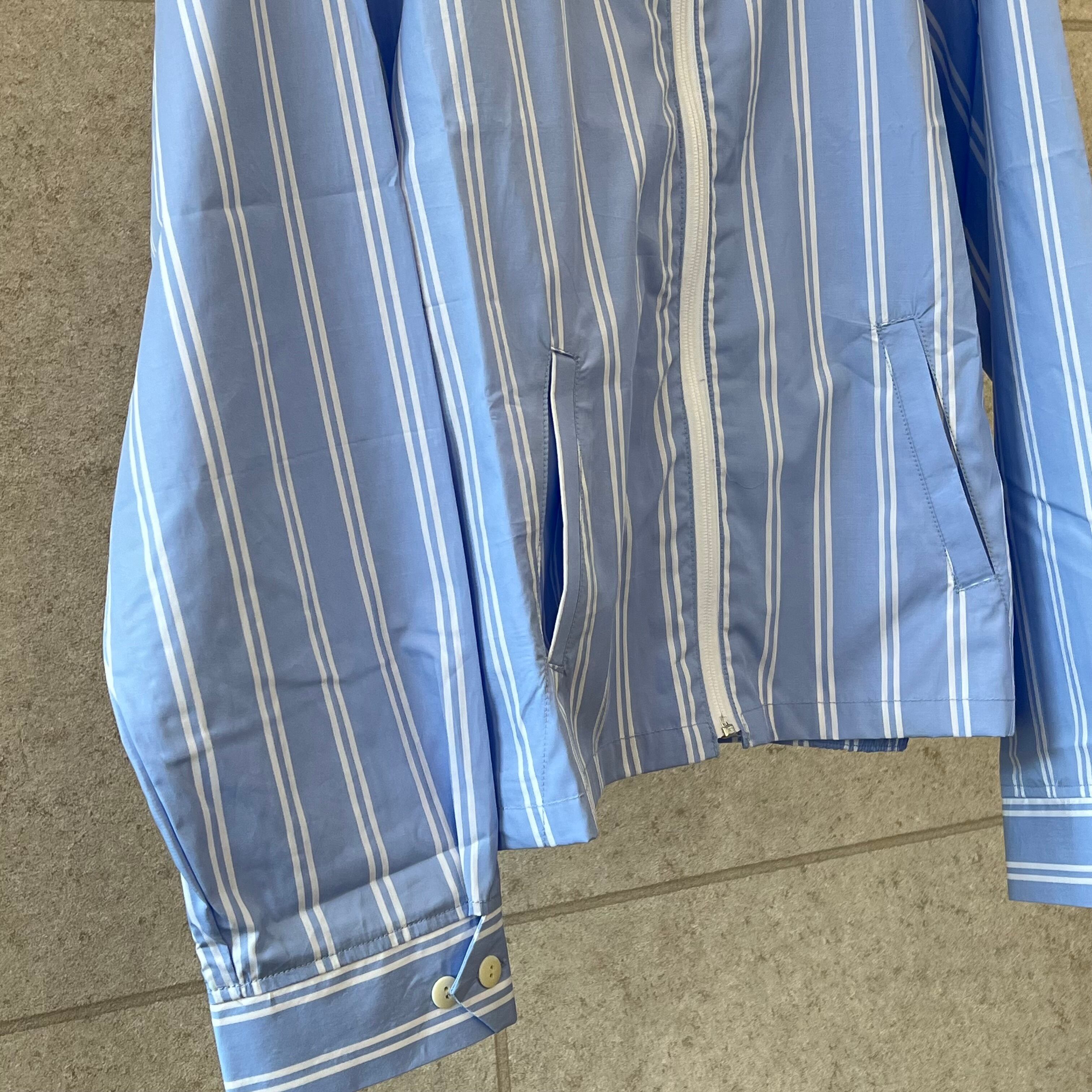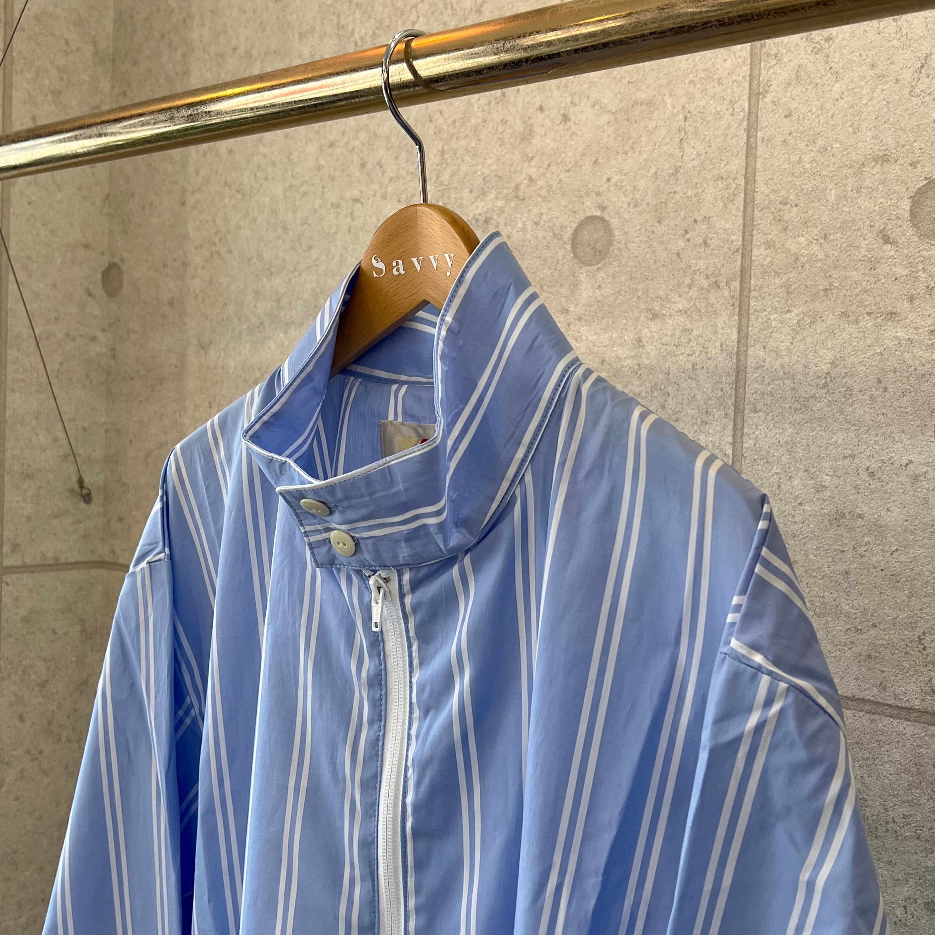 シャツの軽さとジャケットのビジュアルを兼ね備えたSSシリーズに非常に適したアイテムです。高級感あるストライプ柄とカジュアルが融合した「アリソウデナイ」の提案です。