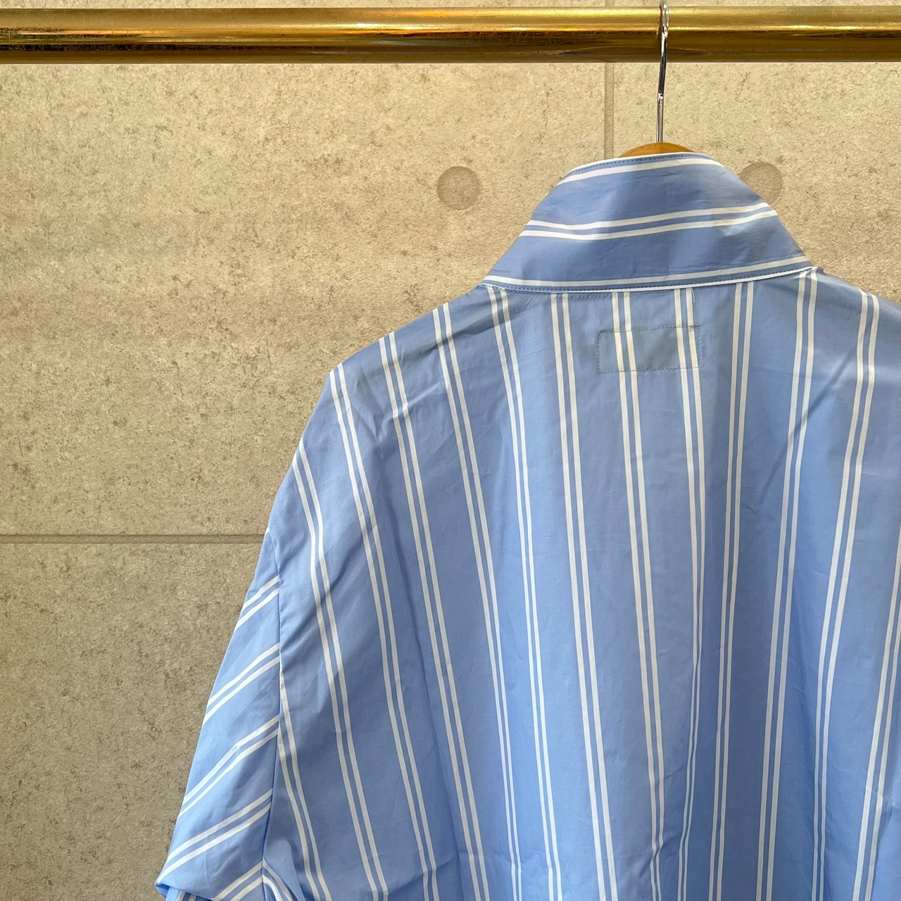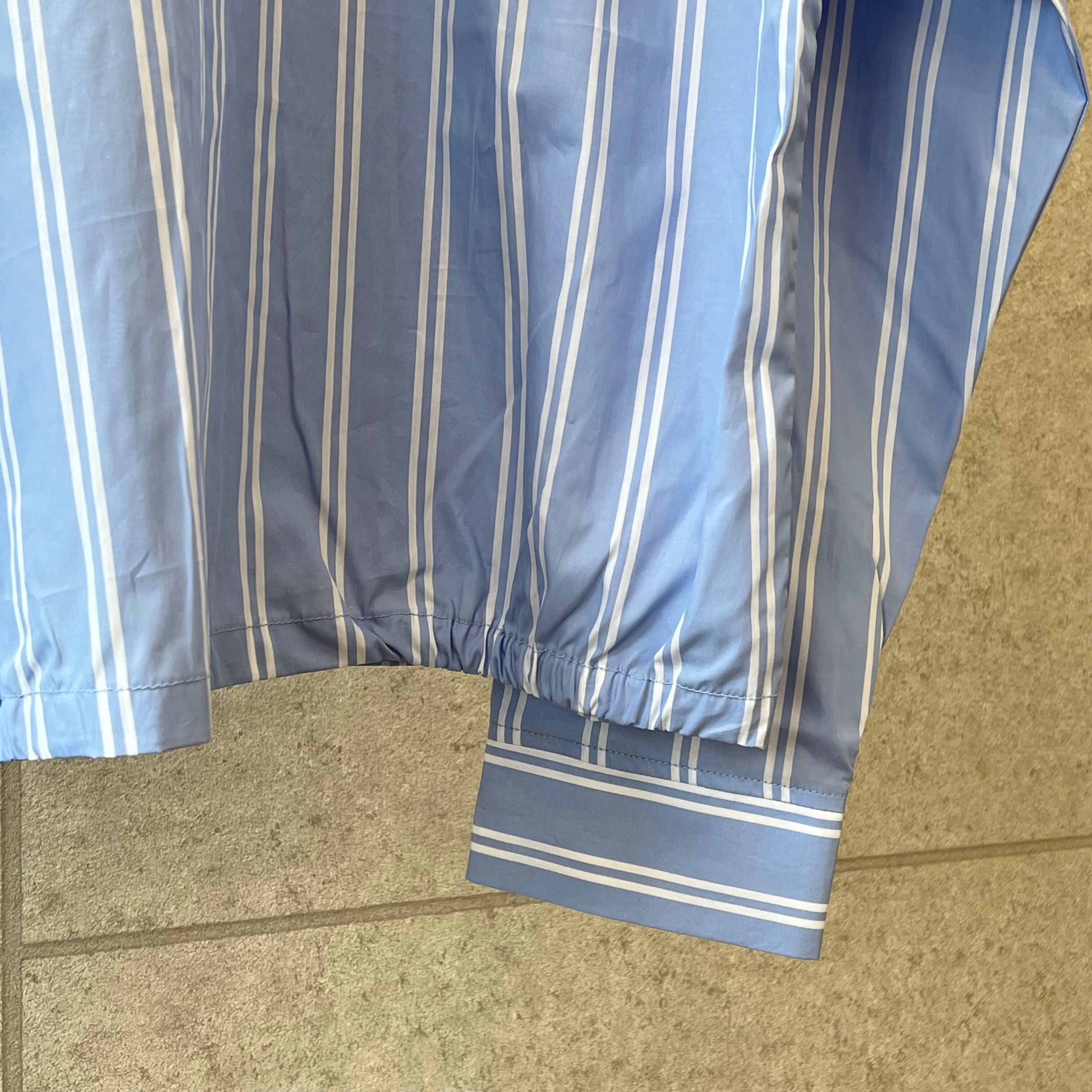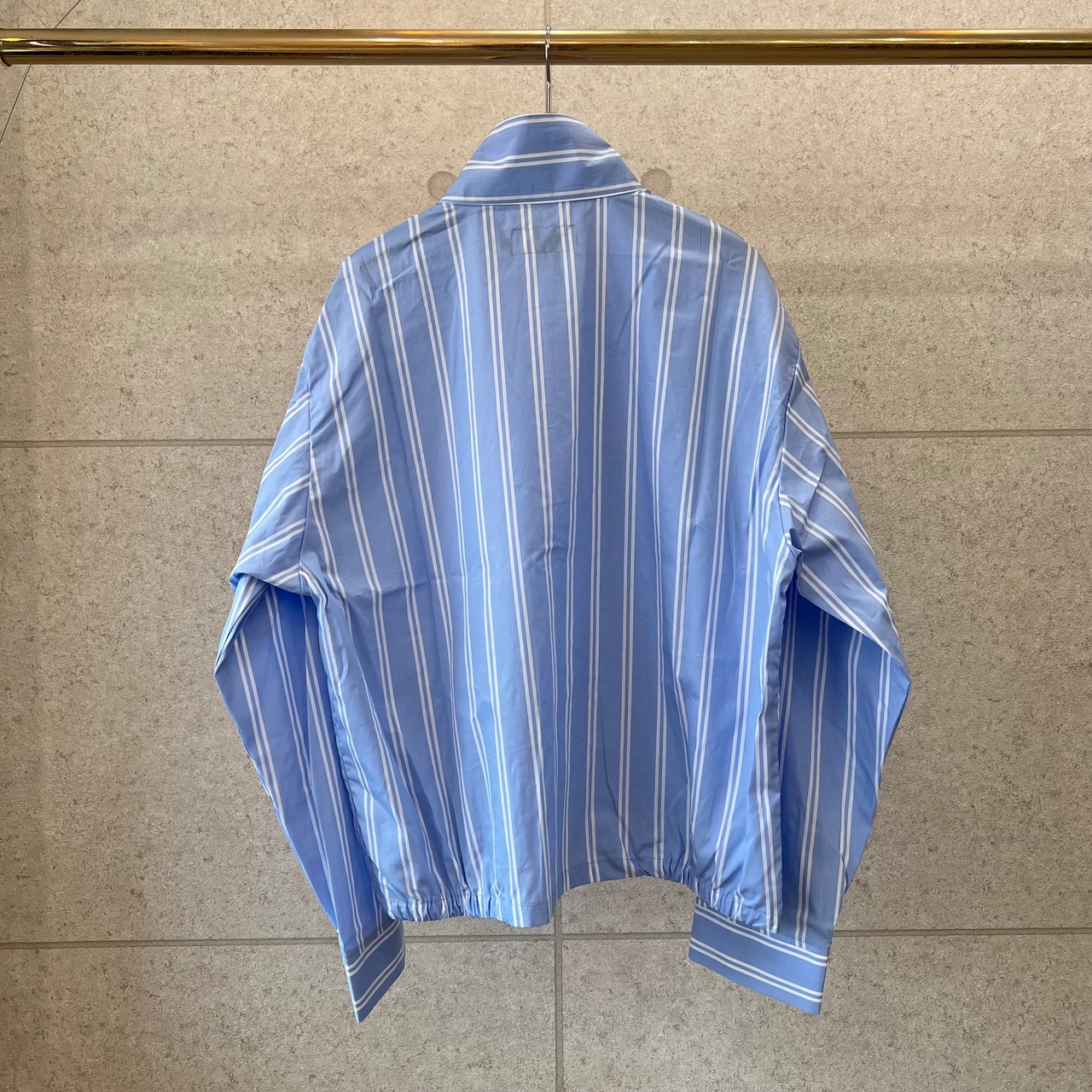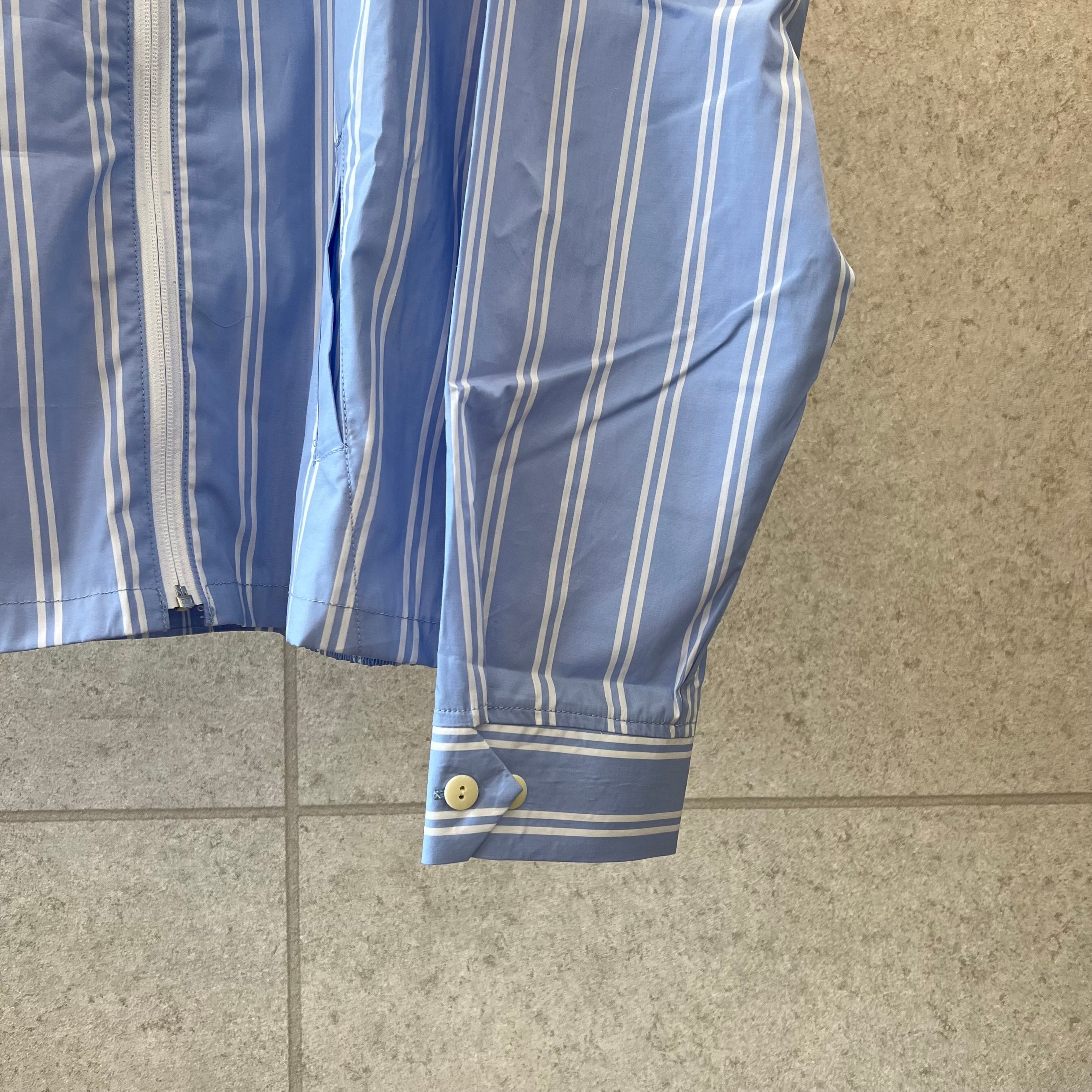 シャツの軽さとジャケットのビジュアルを兼ね備えたSSシリーズに非常に適したアイテムです。高級感あるストライプ柄とカジュアルが融合した「アリソウデナイ」の提案です。