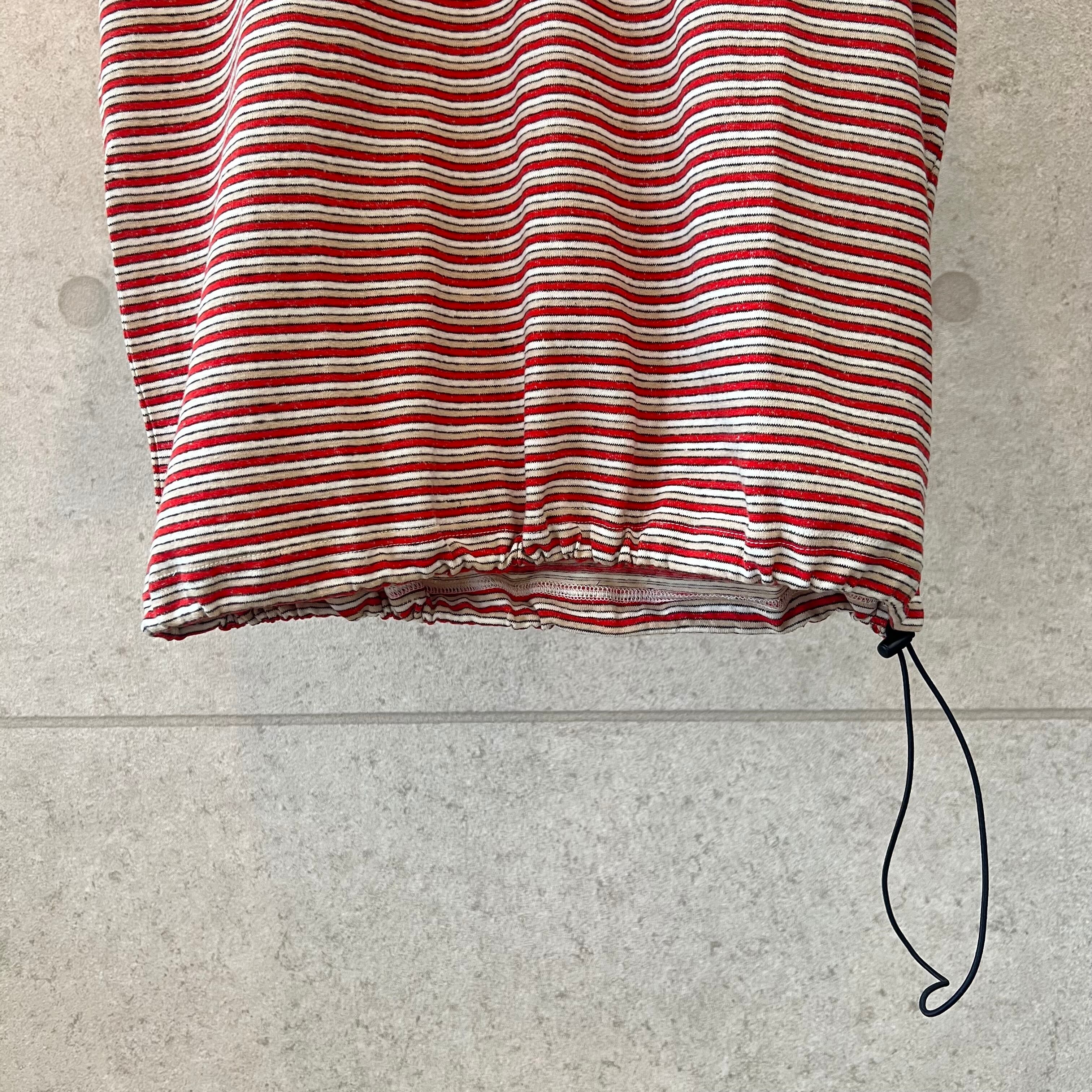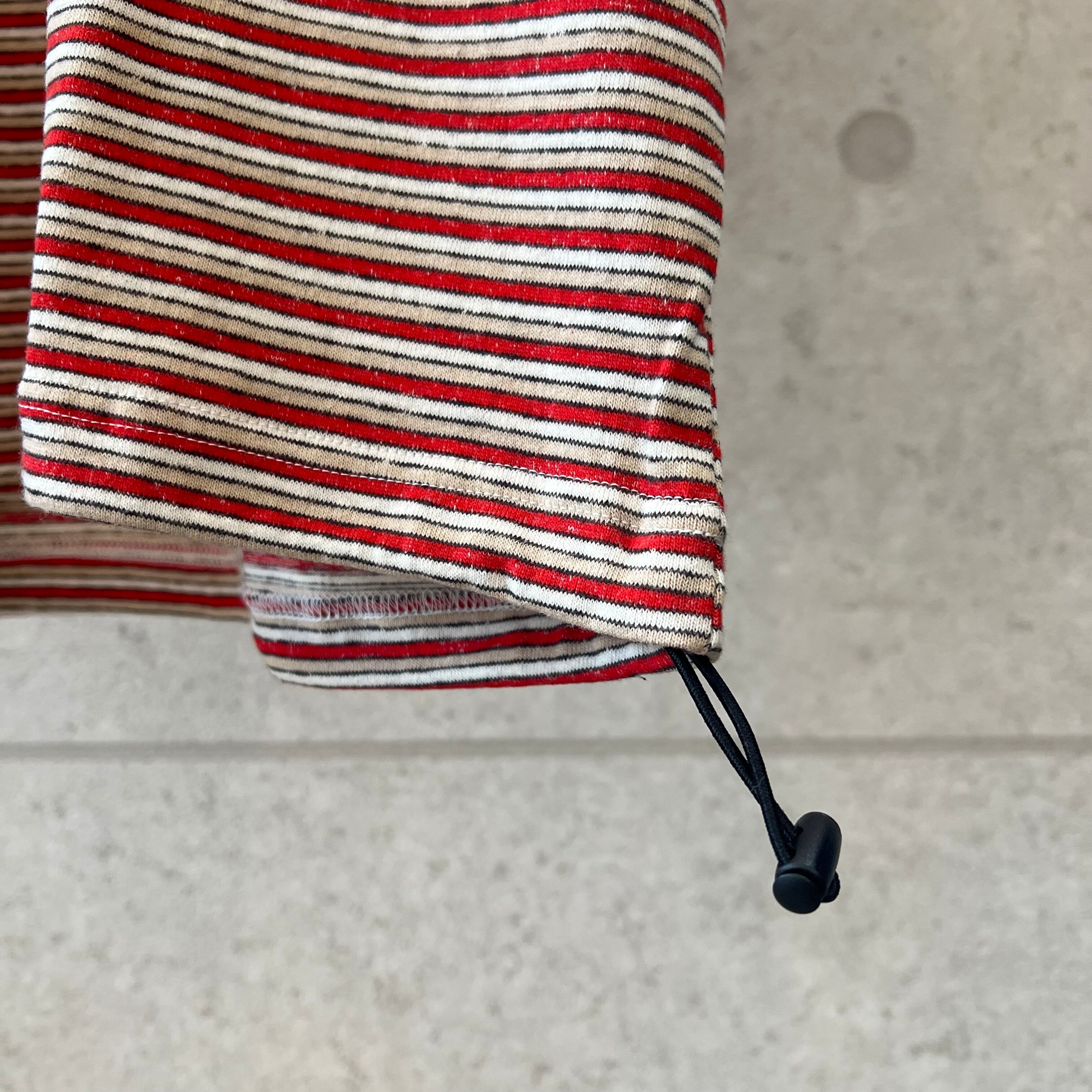 色彩鮮やかなマルチボーダー生地を採用した26・SSカットソーシリーズのオススメのアイテムです。それぞれに雰囲気の異なるボーダーカラーに加えてネオンカラーのリブを、襟と袖口に配した仕上がりとなります。スソ内にスピンドル&ストッパーを搭載し、着丈やシルエットコントロールが可能です。ポップな色合いながらコーディネートしやすく、薄着になる春にアクセントとしてしっかり活用出来るTシャツです。