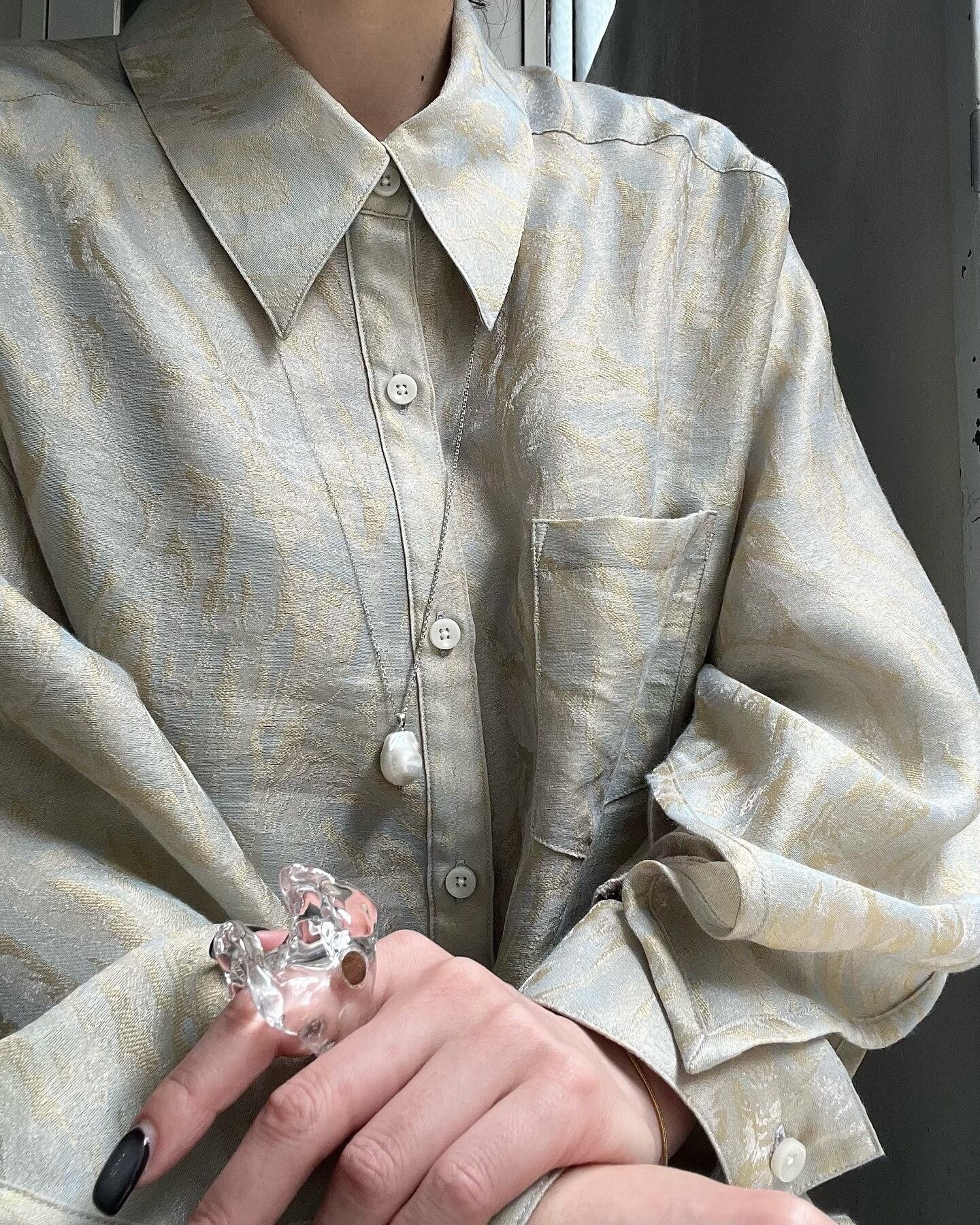 長さを持たせたロングネックレスは左右異なるアンバランスなチェーンです。