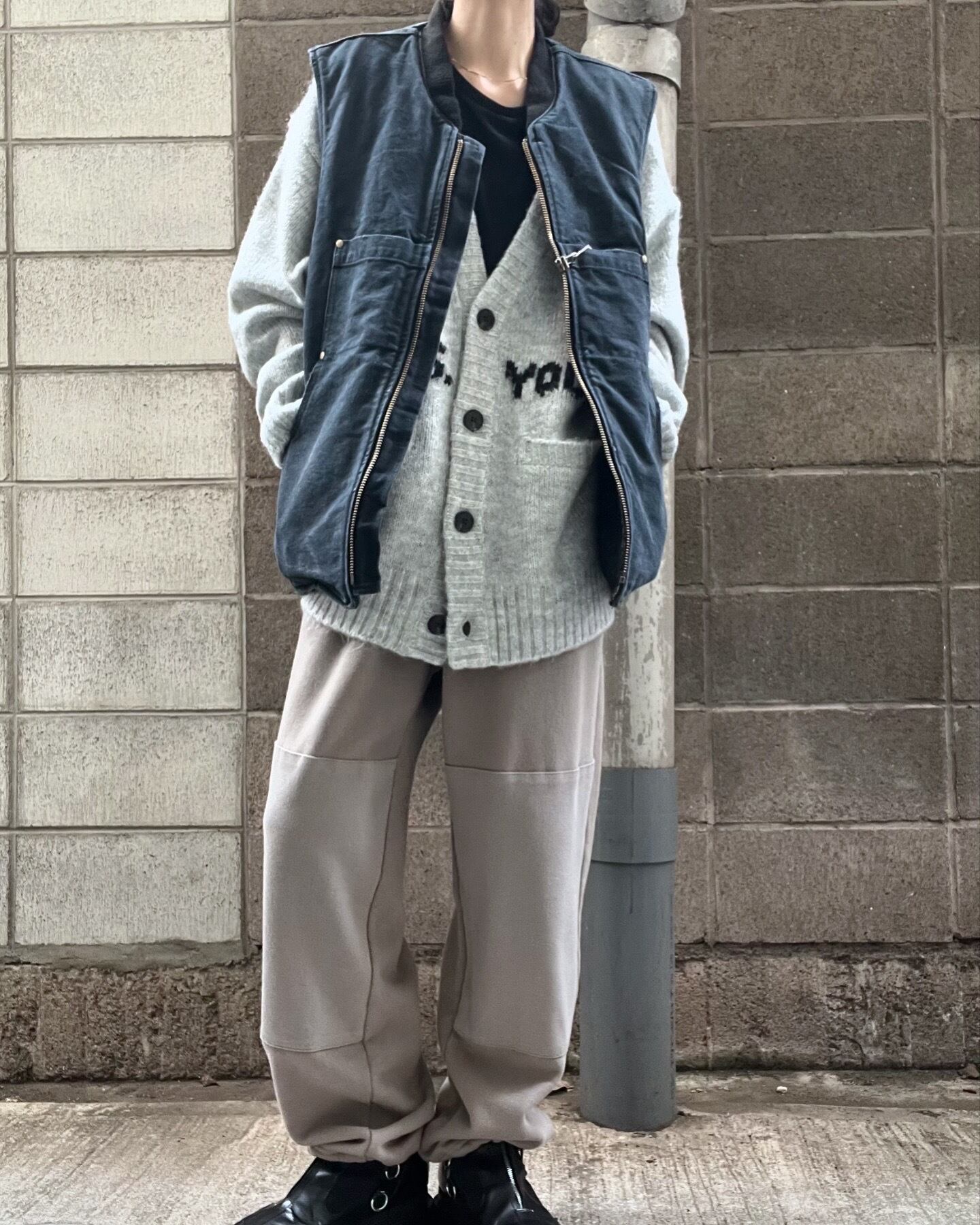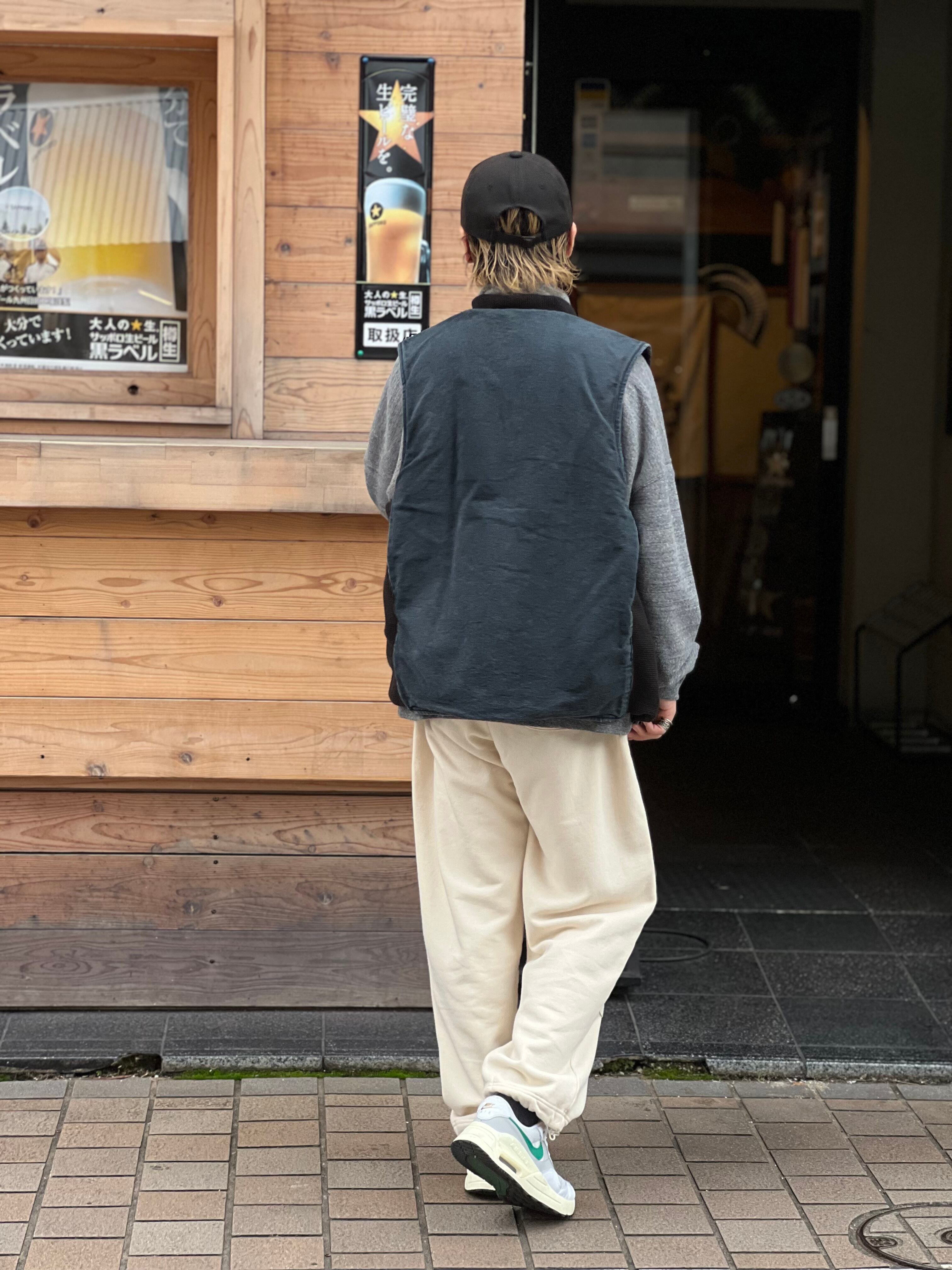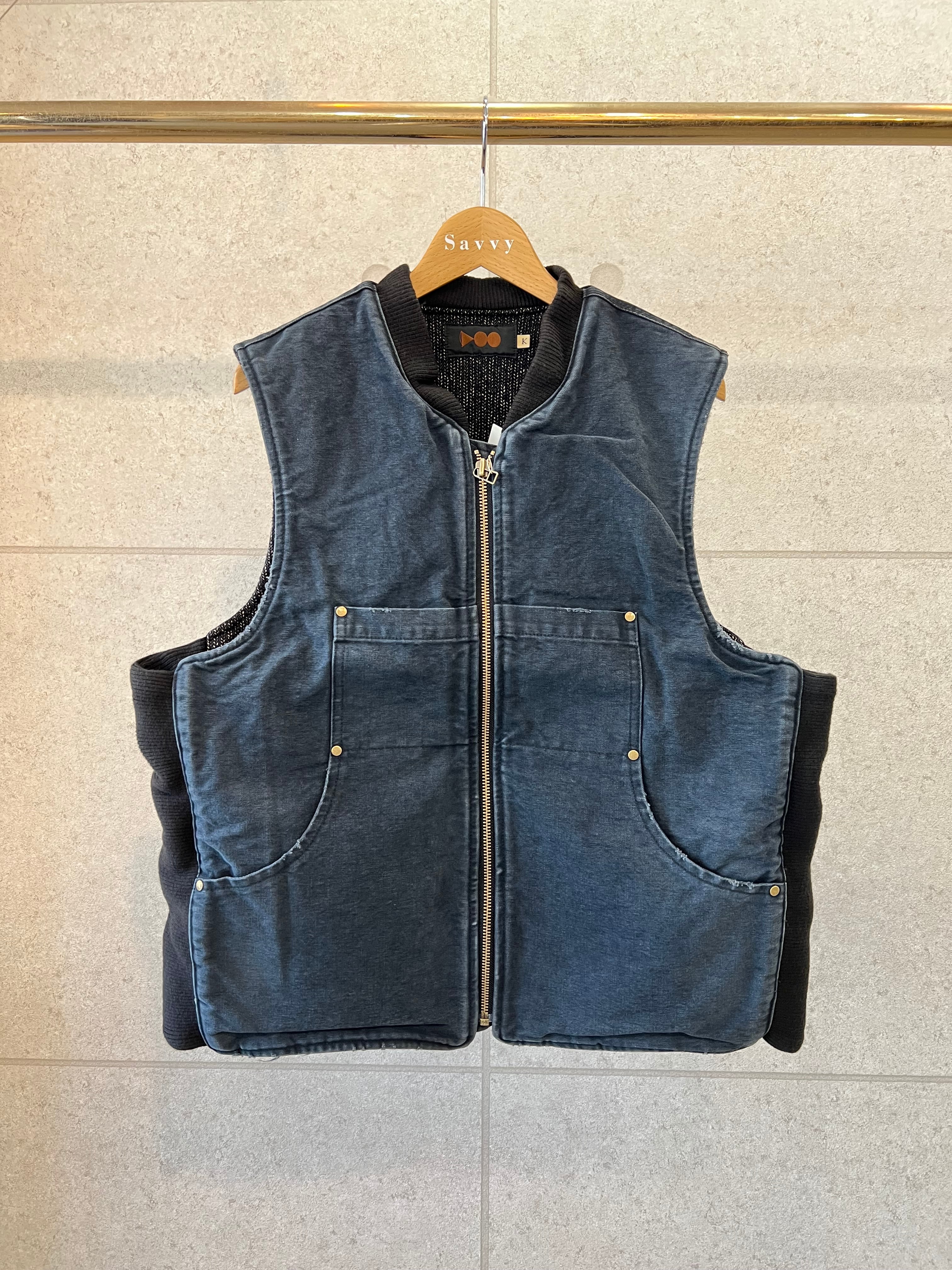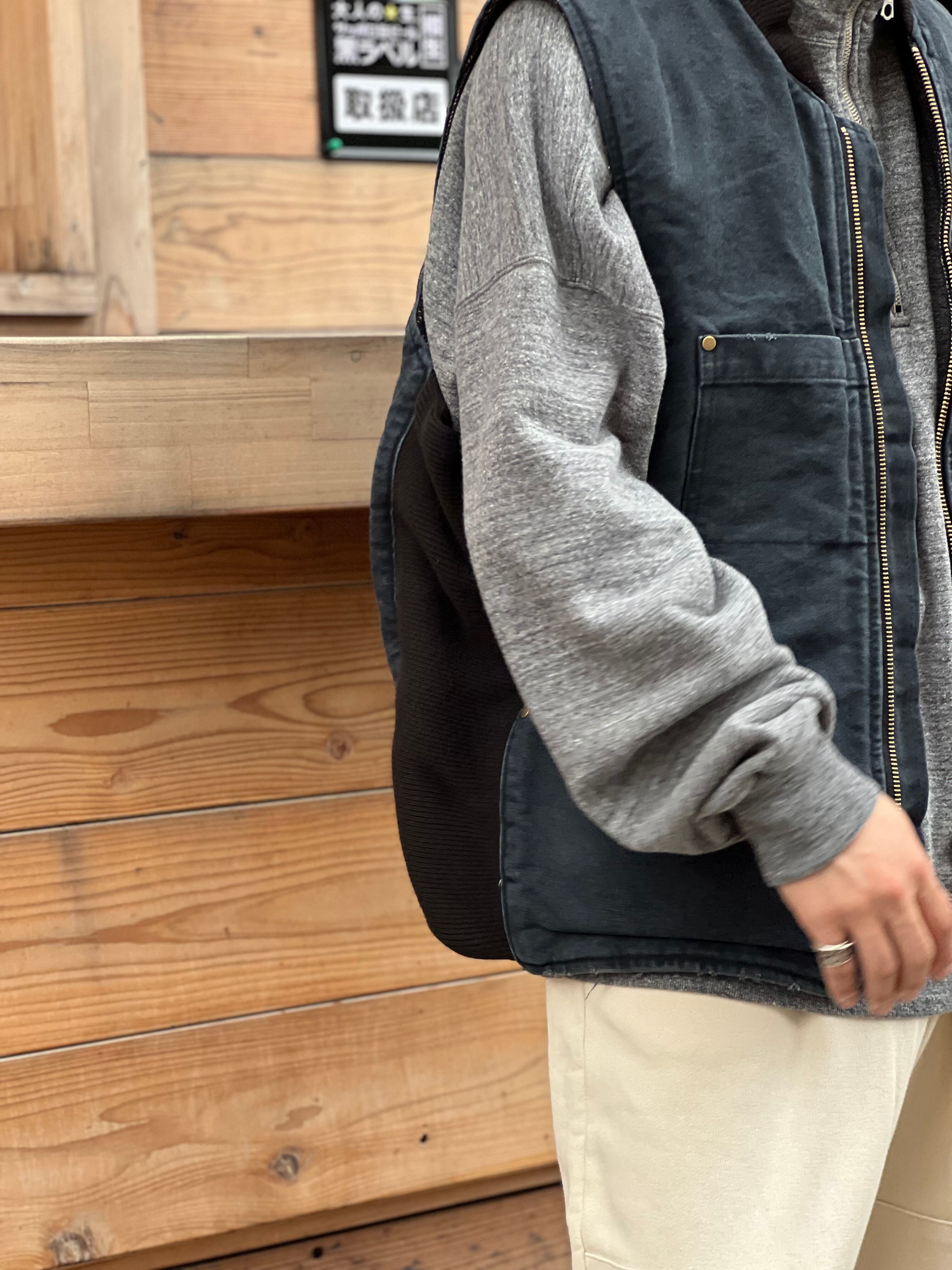 ベースとなるキャメルカラーのダック生地をブリーチ加工し限りなくホワイトに近づけたのち、硫化染めを施しブラックに仕上げた幾重にも染めと抜きの手間を繰り返したアイテムです。端破れダメージや特殊ブリーチ、ブラスト加工を駆使して全体に時代感と奥行きを表現した逸品となります。